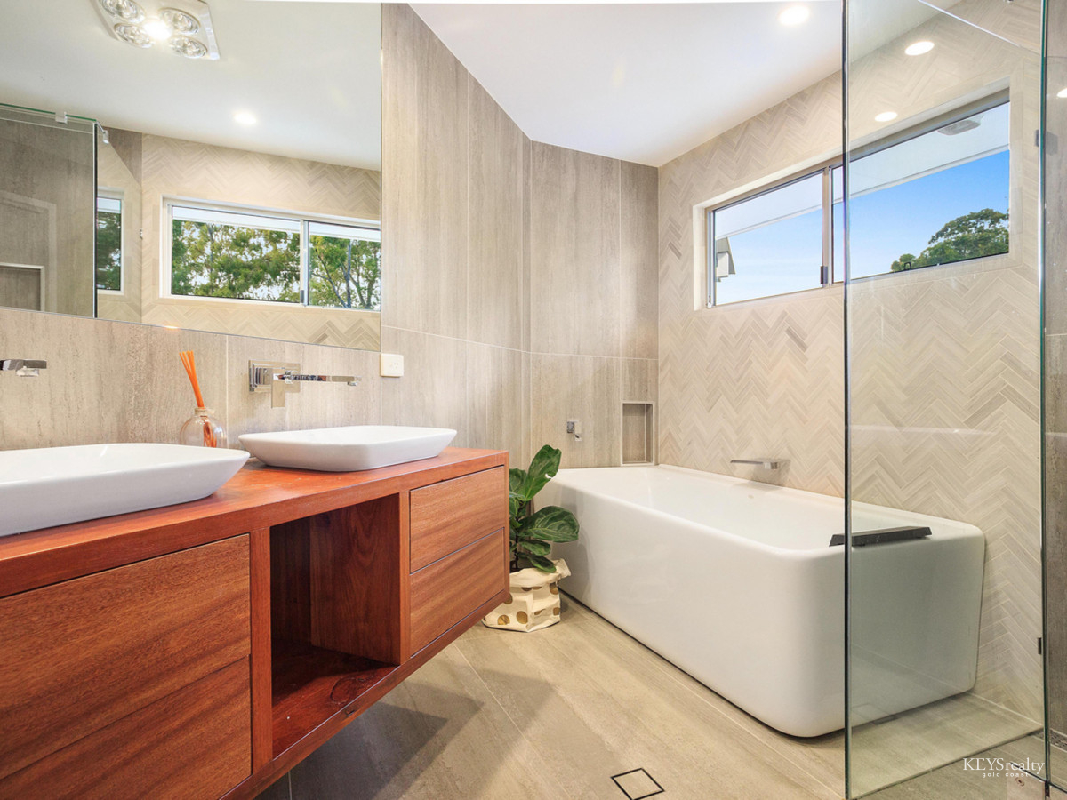 • Exquisite bathrooms all beautifully tiled with large windows, solid timber vanities, and a large bath