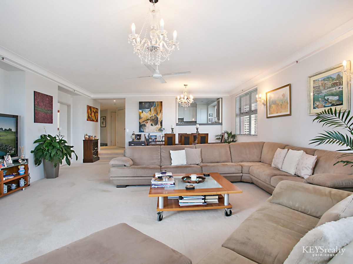 Situated on the 8th level, this stunning apartment features fabulous sweeping views of the river, skyline, ocean & Hinterland that are spectacular both day and night!
