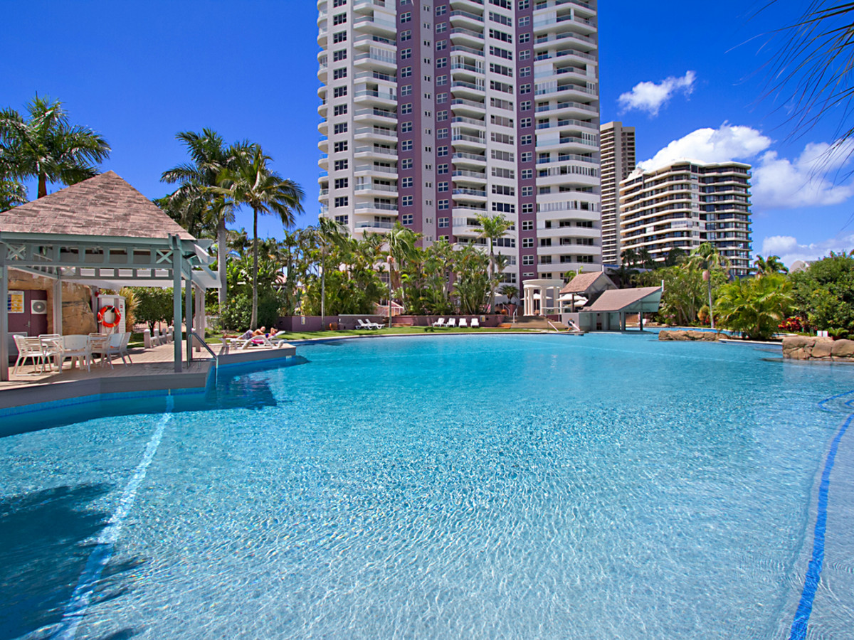 Grand Mariner is ideally located on an enormous 17,190-square-metre waterfront site (over 4 acres), just minutes' walk from the patrolled surf beach, Main Beach cafes, and light rail. Unrivalled facilities include manned security, a 34-berth marina, an indoor pool, a 2000-square-metre outdoor swimming lagoon, 2 tennis courts, a fully equipped gym, sauna, spas, steam room, billiard room, 2 function rooms, and much more.