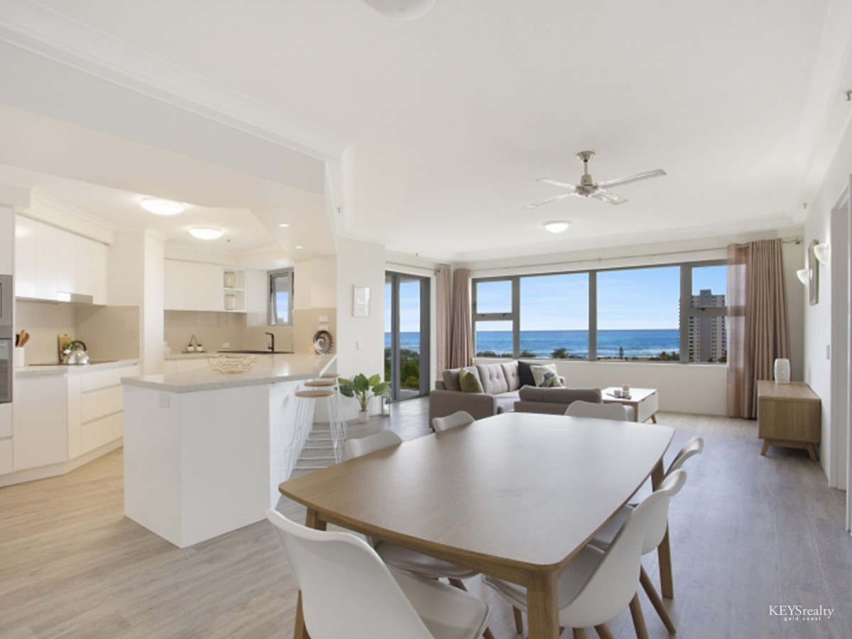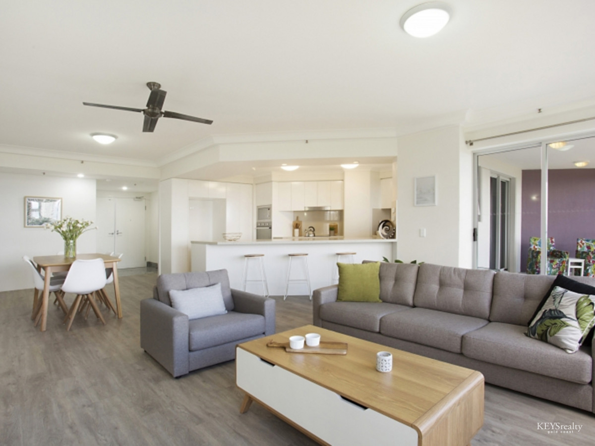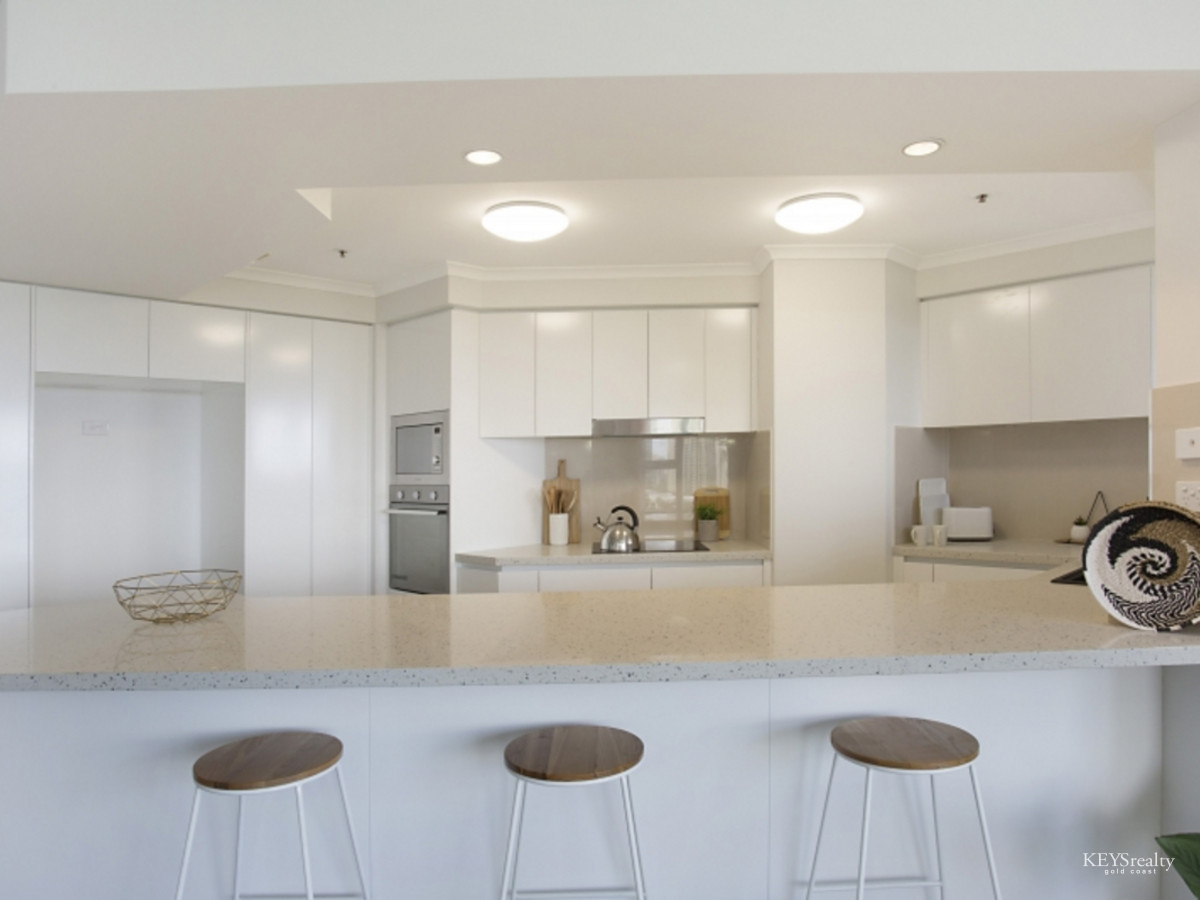Featuring sweeping ocean and Macintosh Park views from the 9th level combined with a premium quality renovation that was completed around 4 years ago, this is Paradise Waters best value 2 bedroom apartment. With a great floor plan that features 2 oversized and well separated bedrooms that both have spacious walk-in robes, master with a huge and beautifully appointed ensuite plus a stunning completely reconfigured open plan kitchen and quality hybrid flooring throughout the living areas