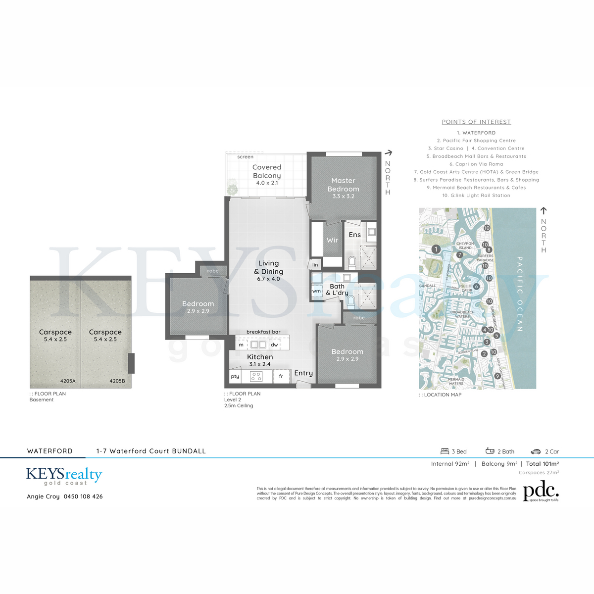 Waterford is a secure residential complex that has the benefits of resort style facilities with tropical outdoor pool, large gym, BBQ areas and an onsite café. Two side by side car spaces are located in the secure basement nice and close to the lifts.