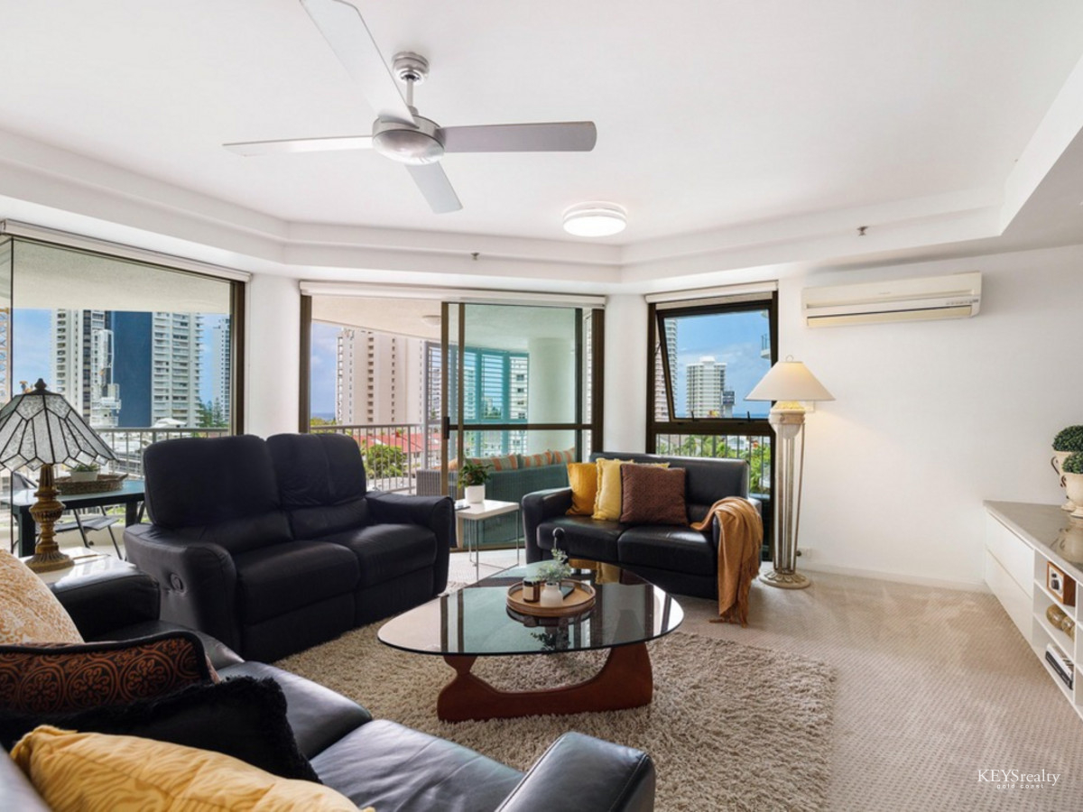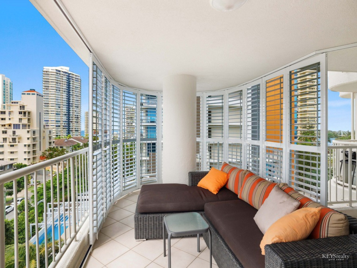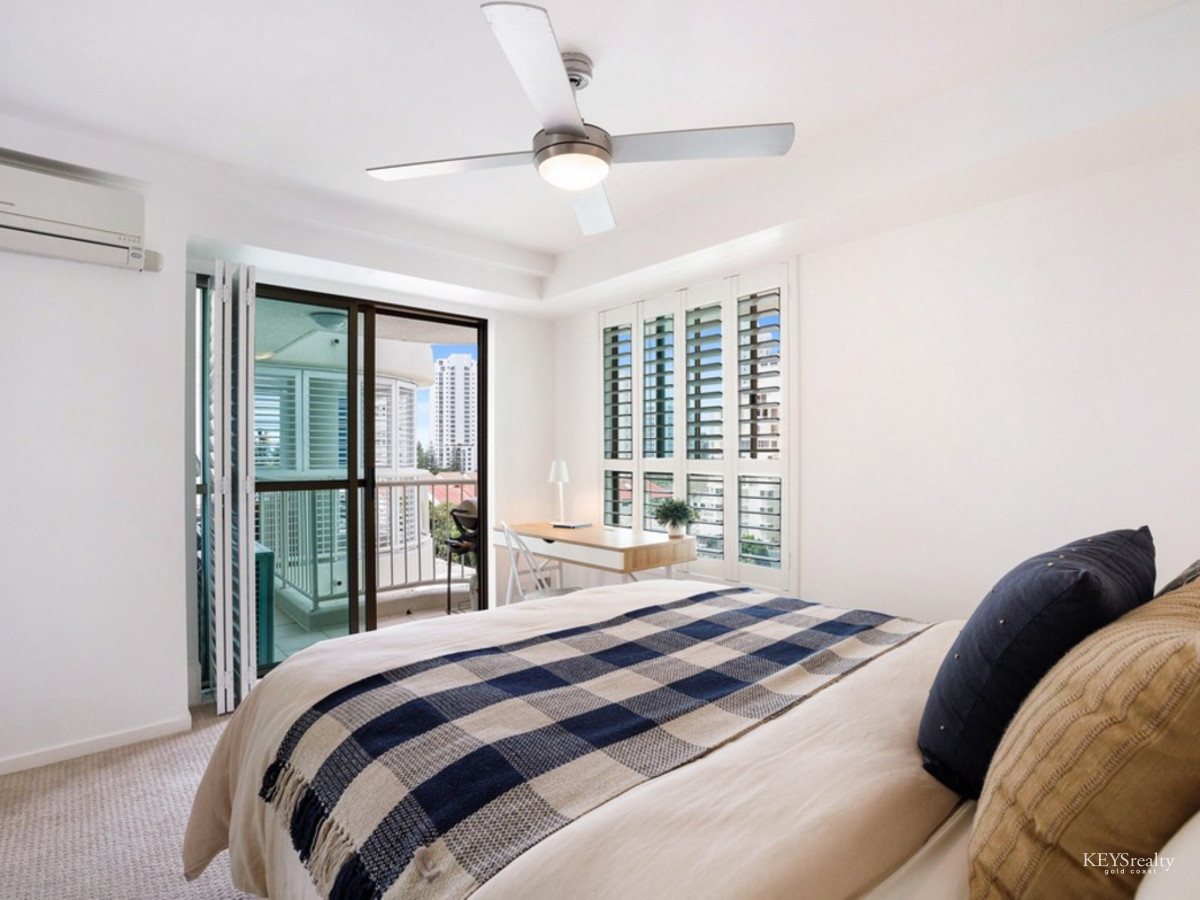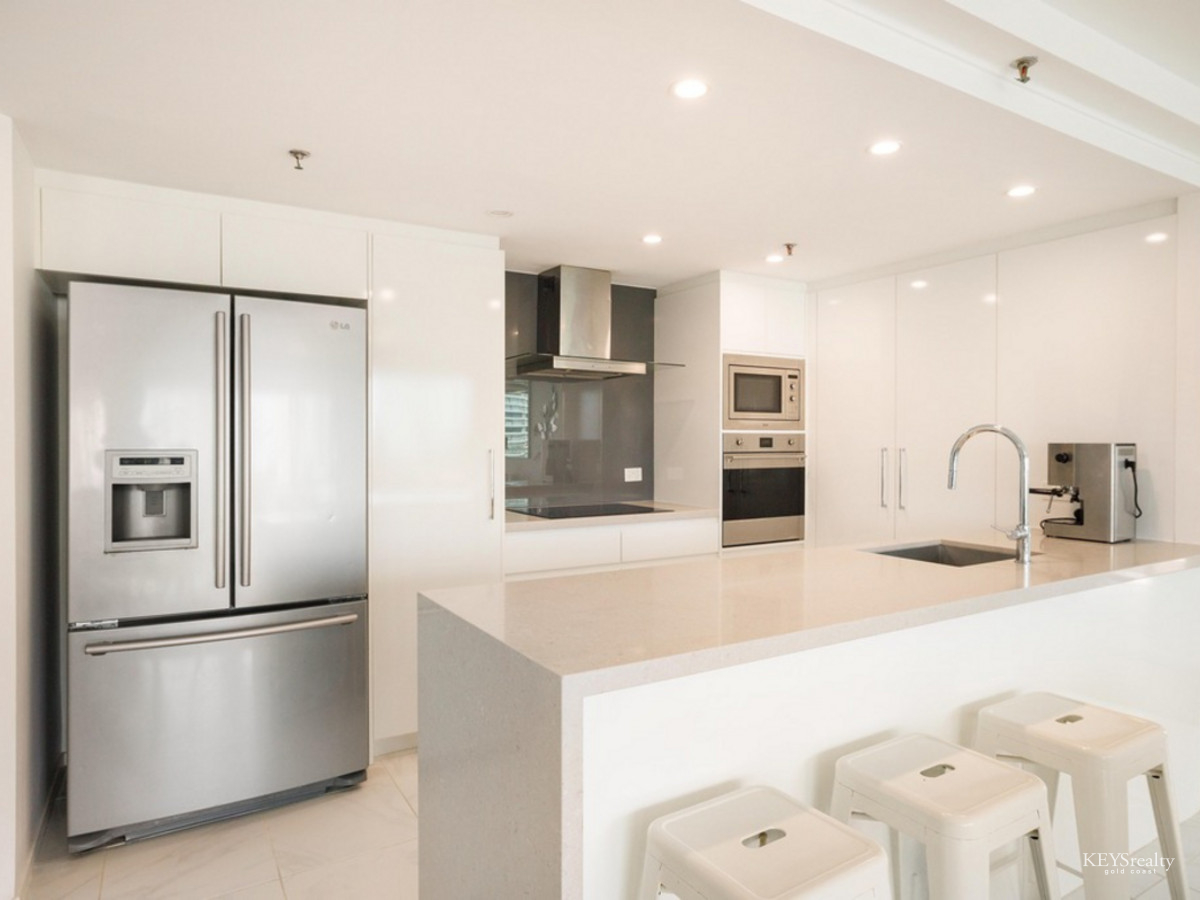With only 2 apartments per floor the 270-degree outlook emphasizes both natural light and airflow, with ceiling fans and air-conditioning also ensuring the perfect temperature all year round. Located on a mid-level this apartment enjoys both the ocean and Broadwater views whilst also being connected to the surrounding neighbourhood overlooking the beautiful pool and gardens.