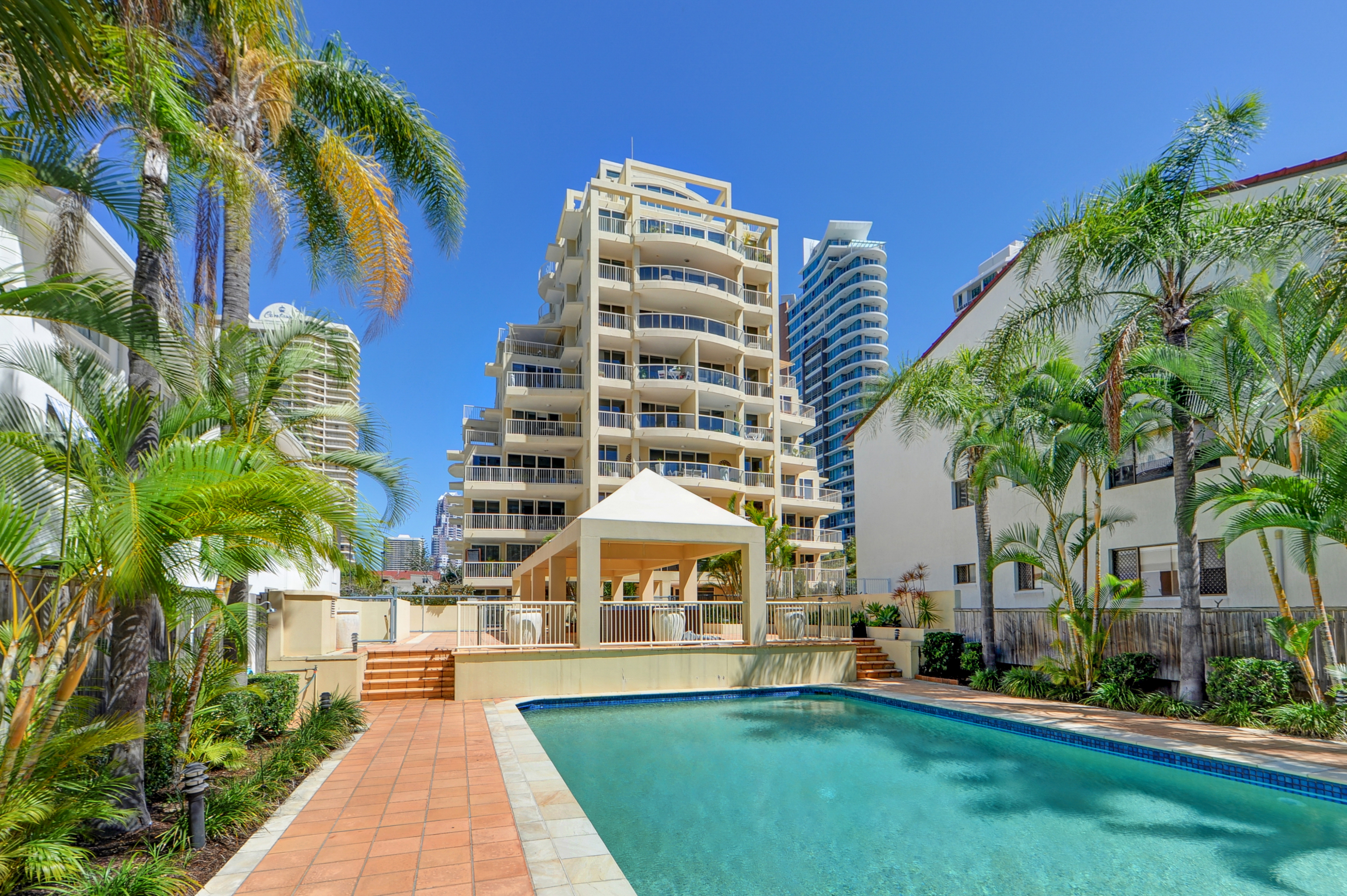 With a sunny northerly aspect overlooking the tropical gardens and pool, this spacious apartment is perfectly positioned in the heart of Main Beach, just minutes walk from the beach, Tedder Avenue cafes & the light rail.