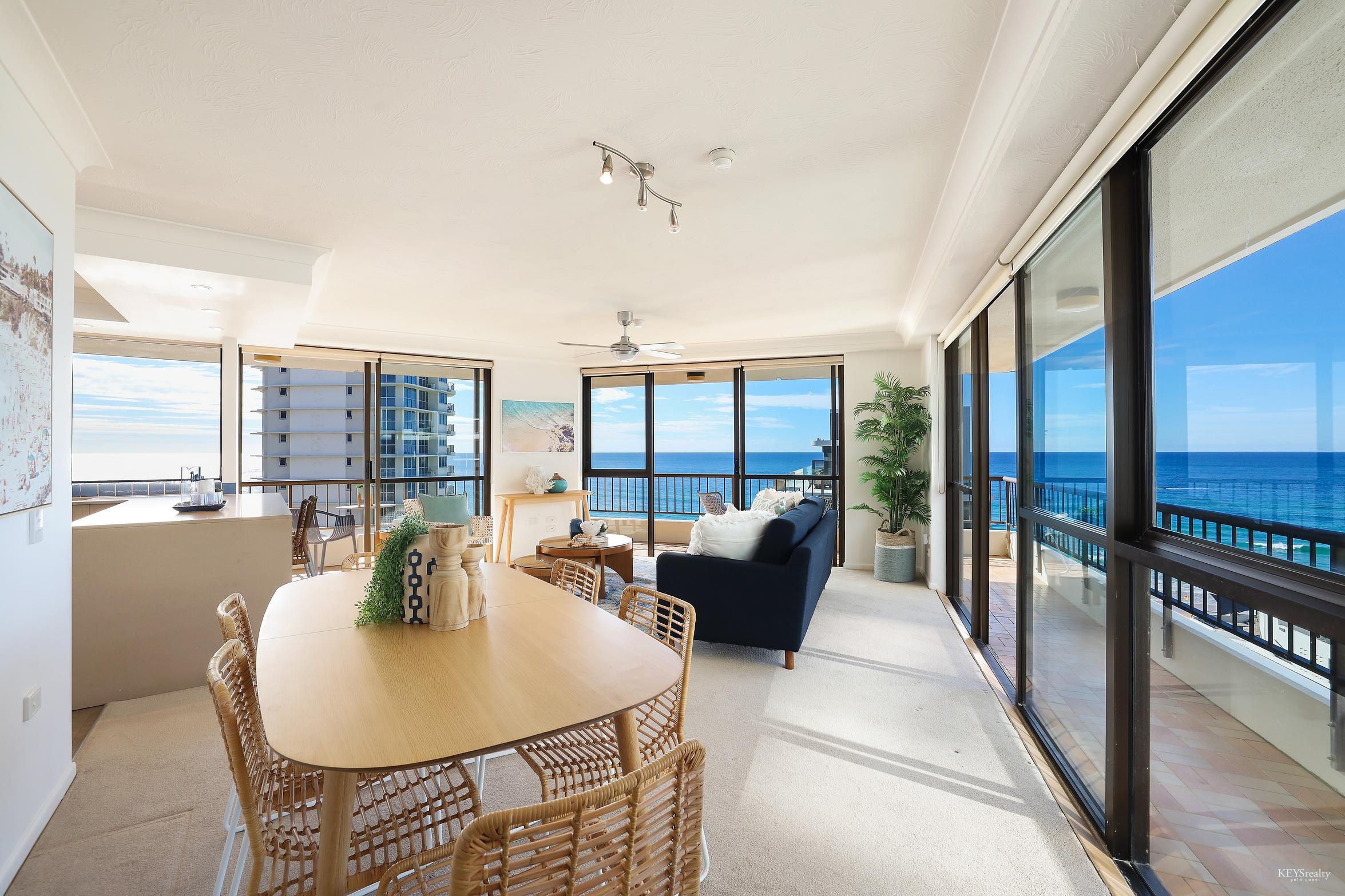 This beautifully presented and timeless apartment is located opposite the golden sands of Main Beach and enjoys spectacular views of the ocean from every single room! Positioned on a high floor with the favoured north-east aspect, this apartment is the beachside home people dream of!