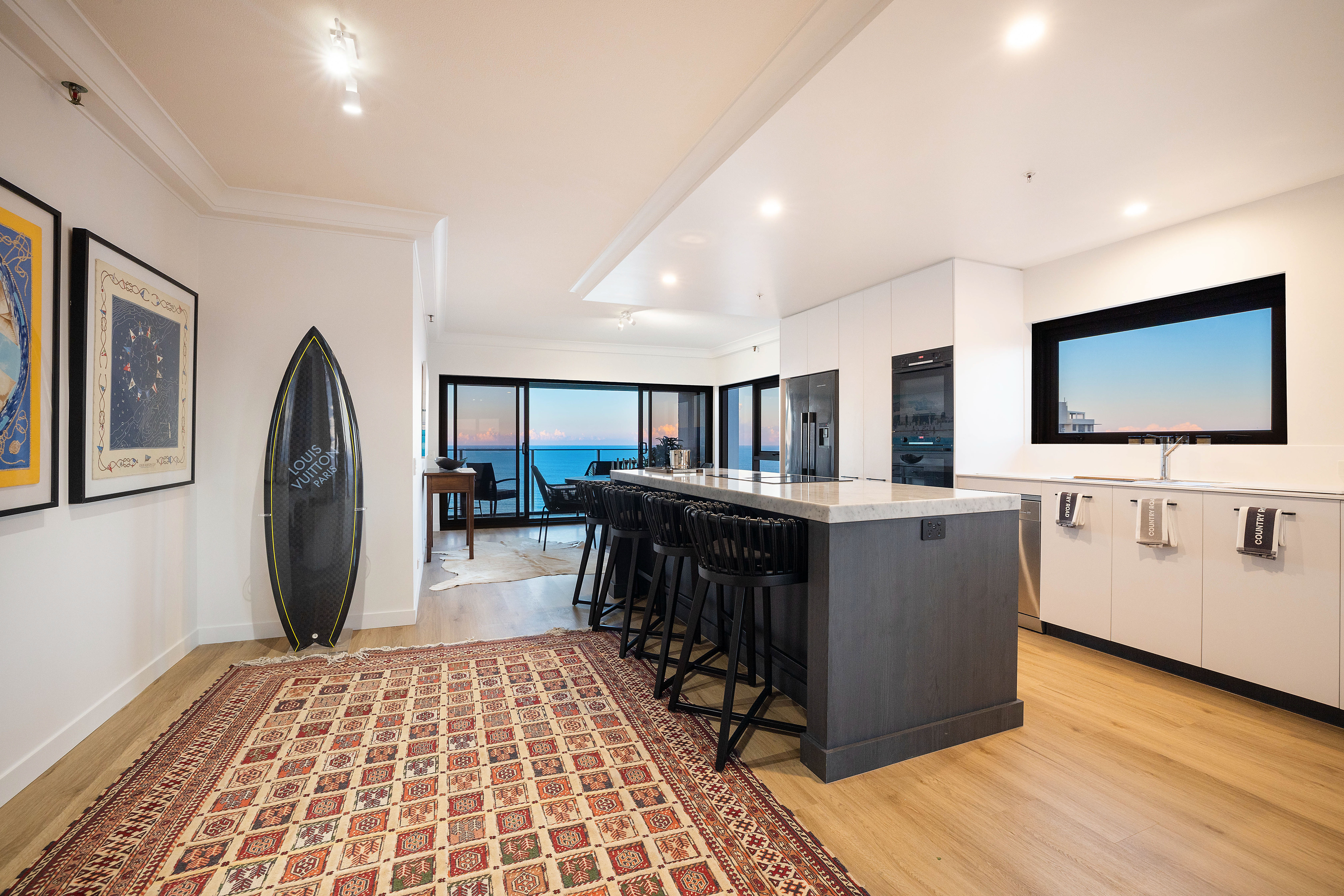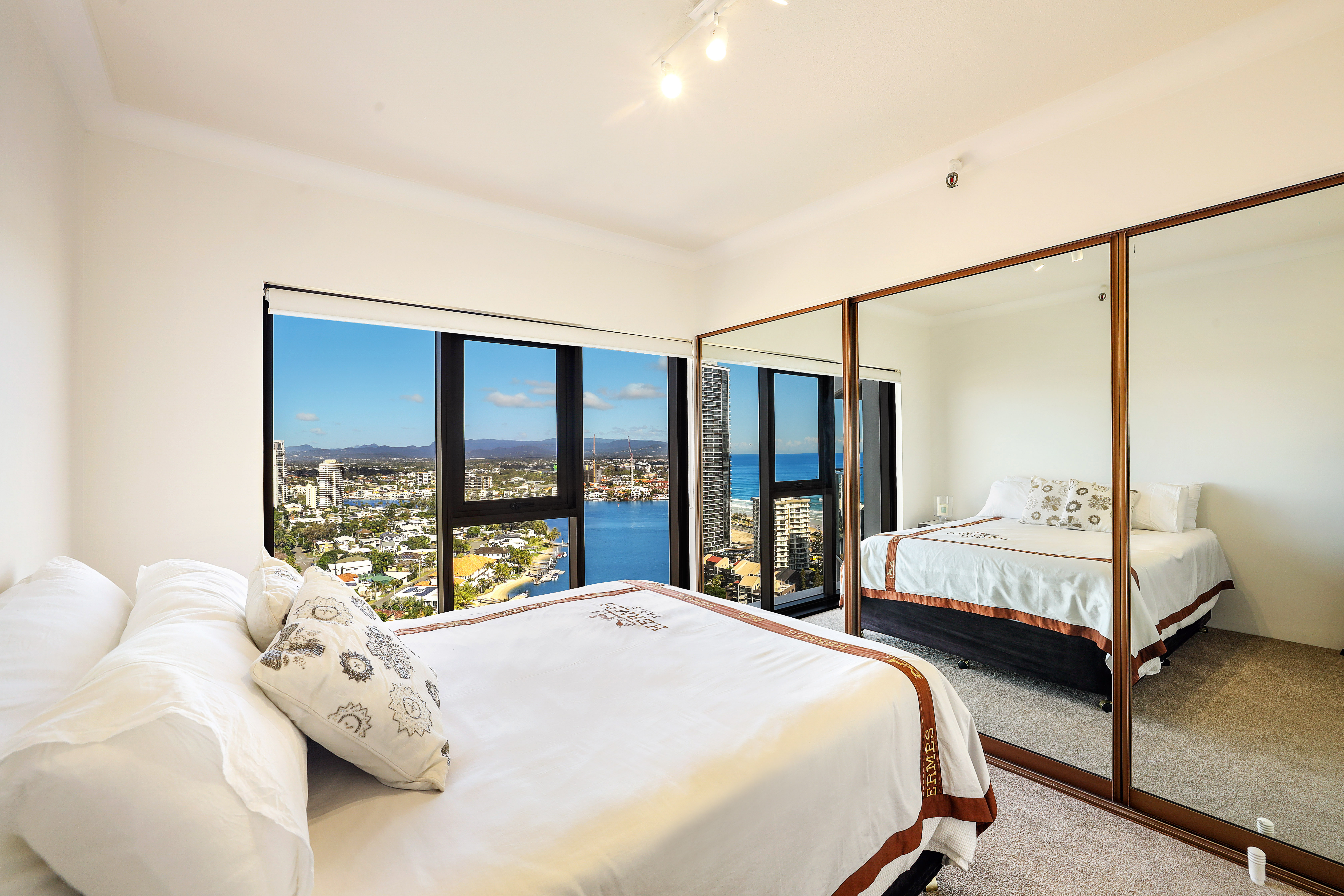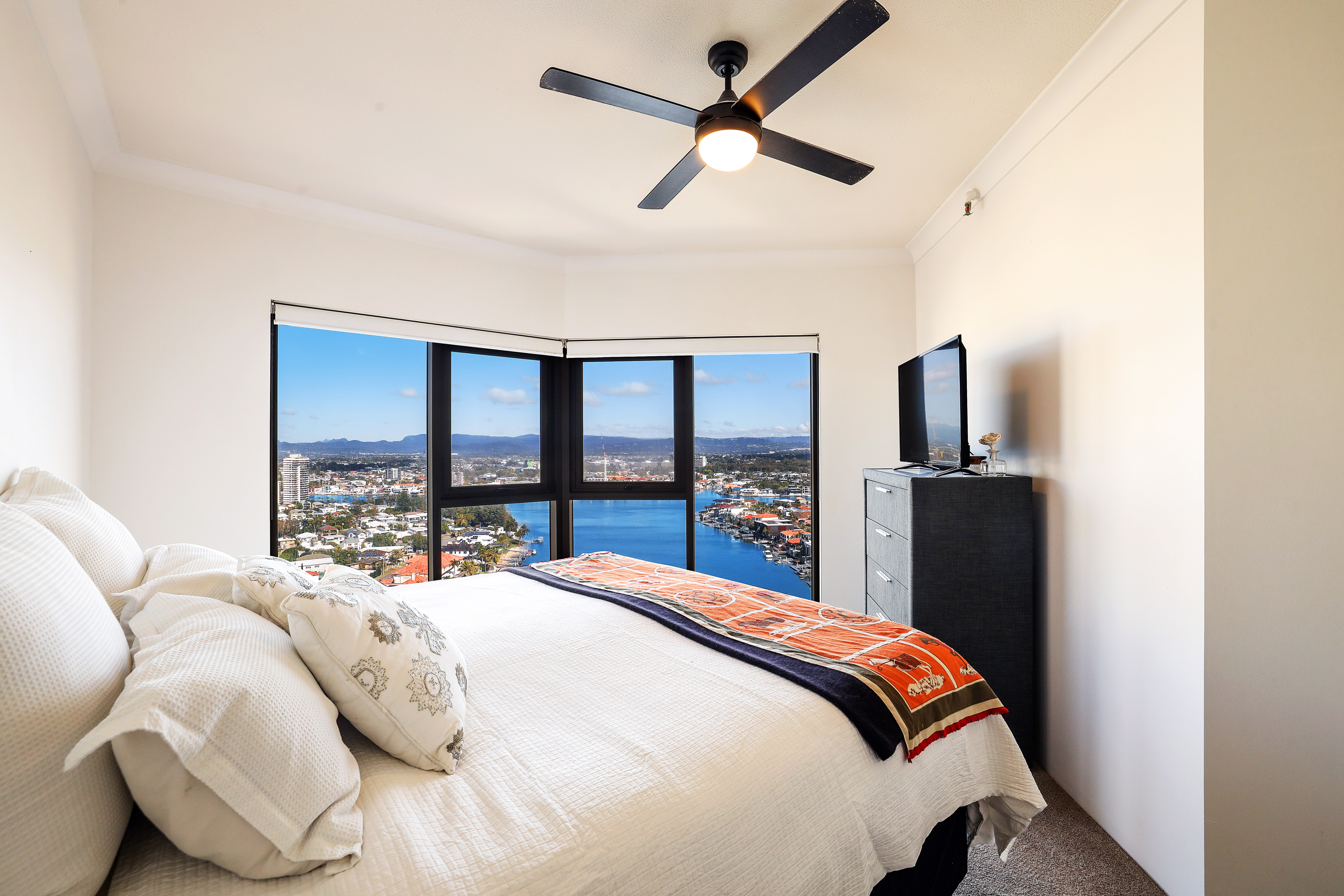 balcony is wide with stunning river, skyline and hinterland views.