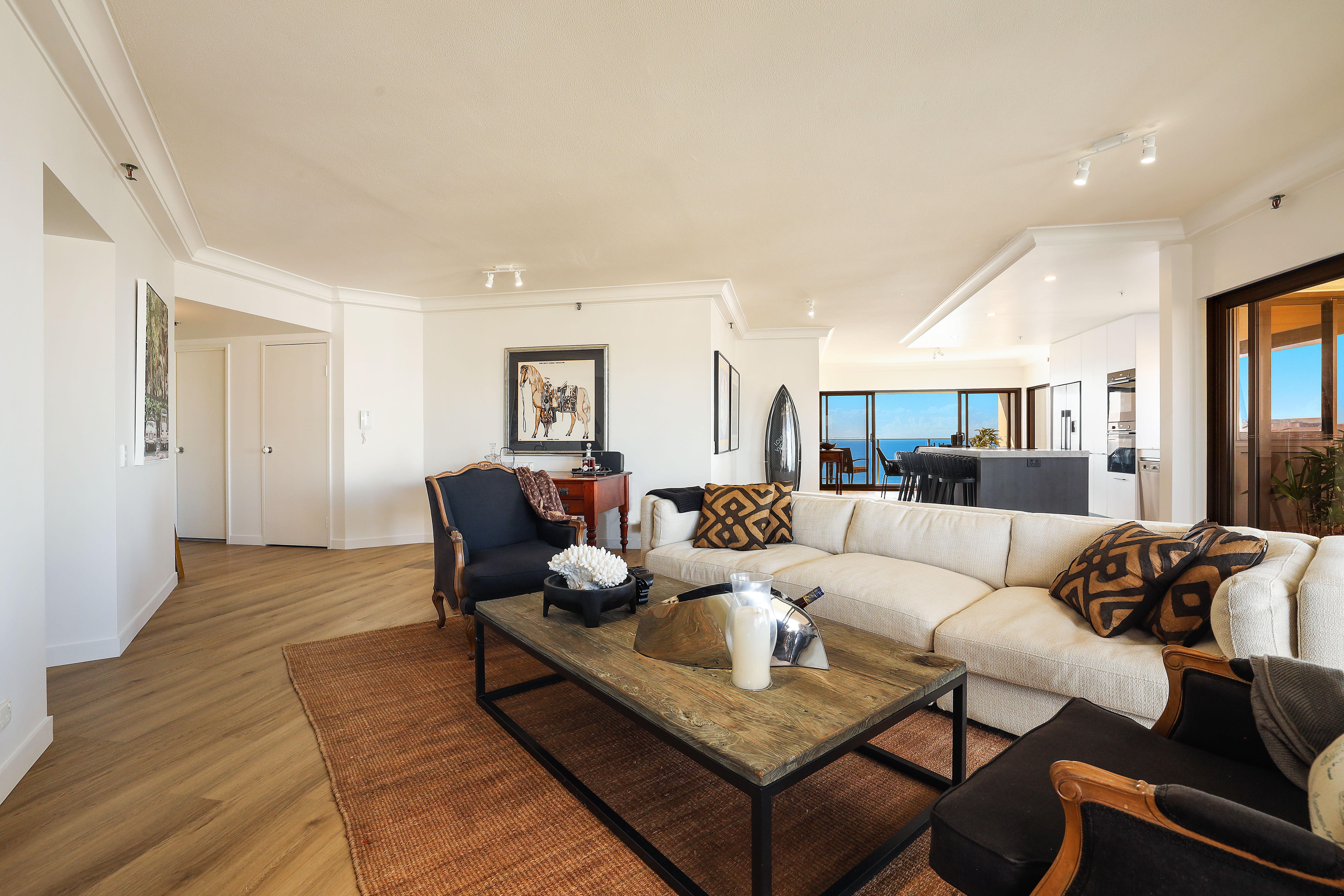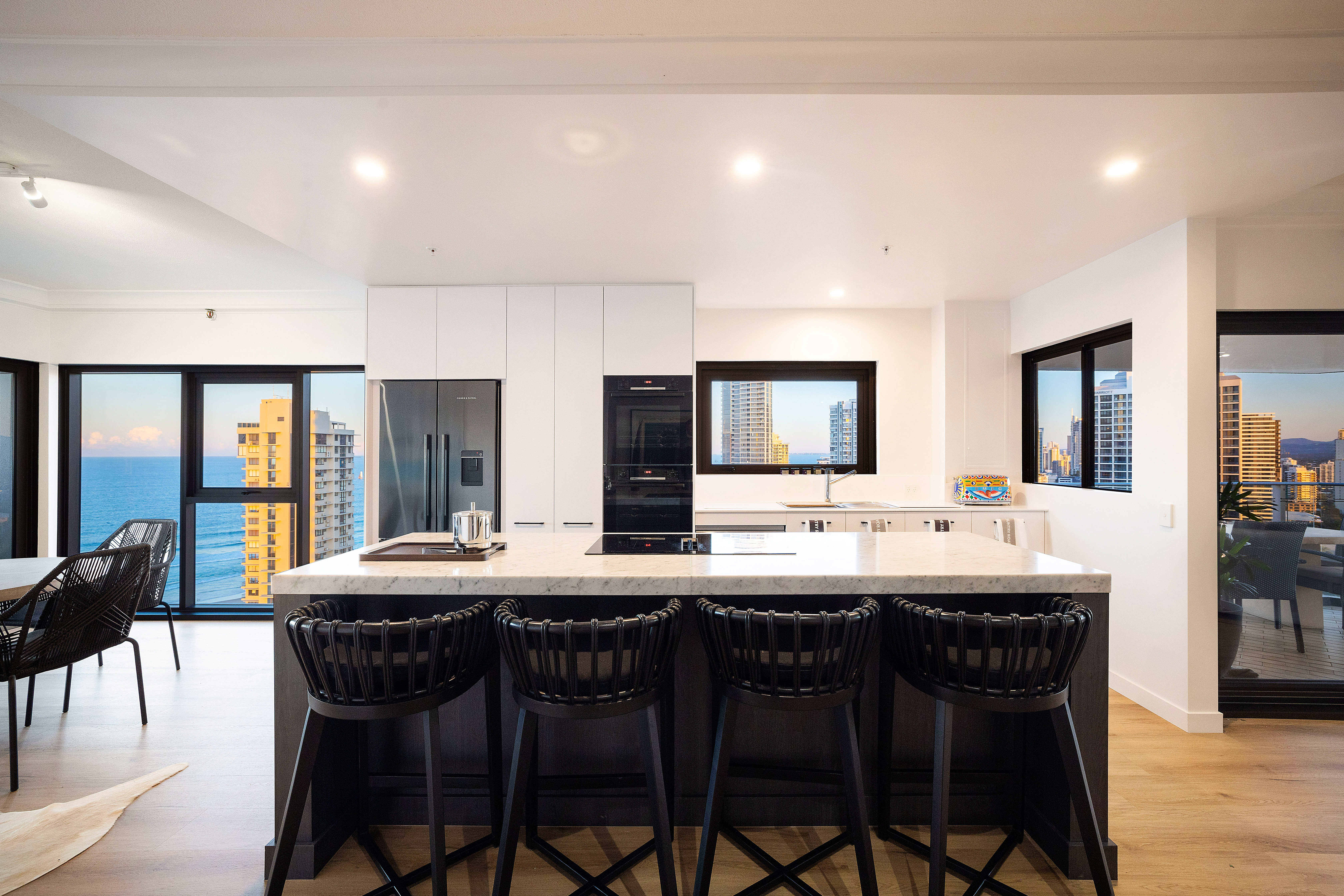 Our seller has purchased elsewhere and is now keen to sell this breath-taking oversized corner apartment. Recently extensively renovated to the highest standards it is one of the best Paradise Waters units that we have seen. Situated on a high floor with fabulous 270 degree views that are spectacular by day or night and can never be built out. With all new windows and balcony sliding doors, this stylish high floor unit is ready for a new owner to move straight in.