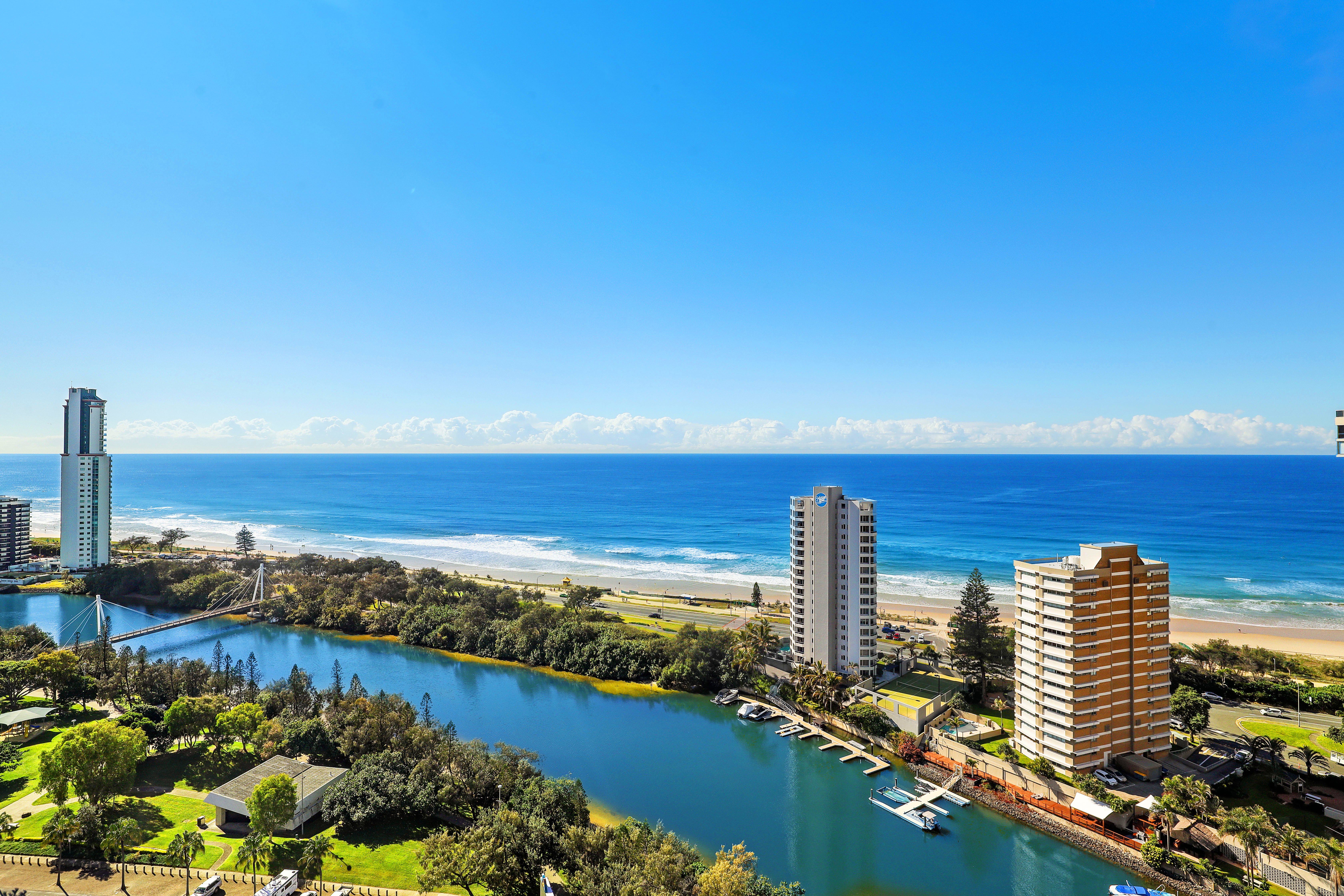 Atlantis East is a premium residential building situated on an enormous 28,000 square metre riverfront site (shared with Atlantis West) ideally located a short walk from the light rail station, Tedder Ave cafes and patrolled surf beach. The buildings facilities include manned security, indoor and outdoor pools, 3 tennis courts, gym, large marina and spa, sauna, steam room plus much more.