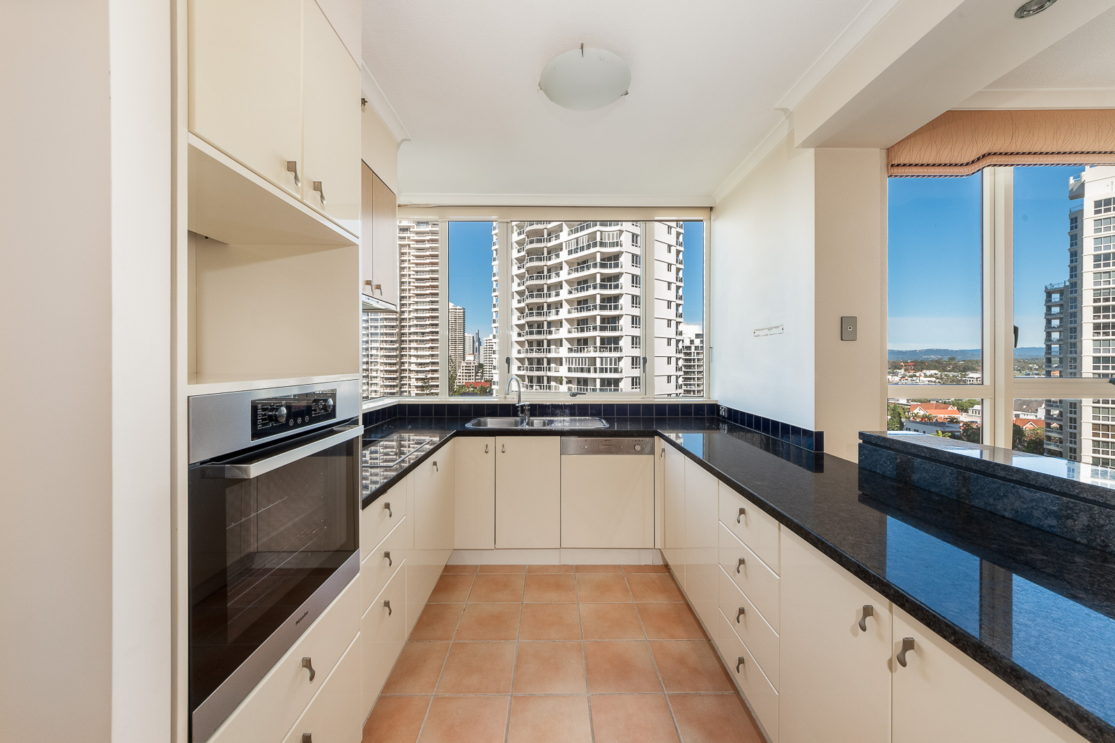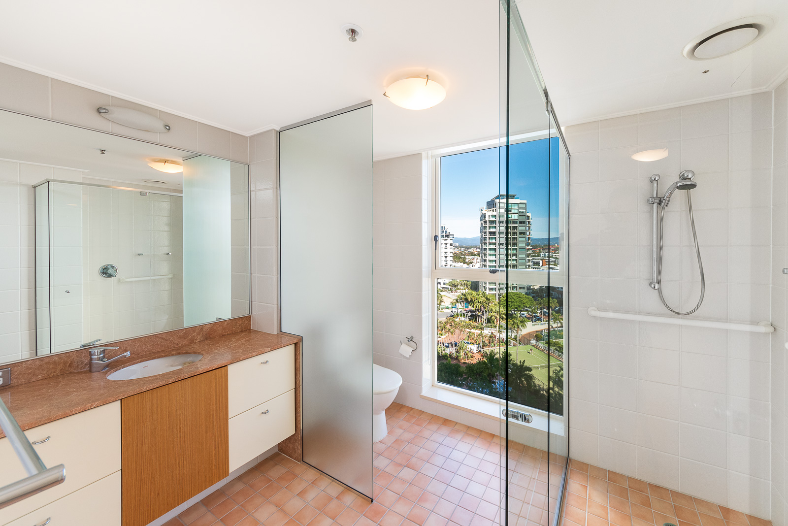 An opportunity presents itself to home occupiers, and more particularly the astute renovators to own a spacious apartment in its absolute original condition. An extremely private and quiet position in the Liberty Pacific Tower, this ninth level abode is height compatible to the majority of those seeking a seaside change... offering unobstructed views of the ocean one way and the mountain ranges and river the other way, in one of the City's most prestigious beachside suburbs. Above all, a strong community features in ''Liberty's' tightly held and iconic Main Beach 24-hour manned security only residential resort in the heart of Main Beach.