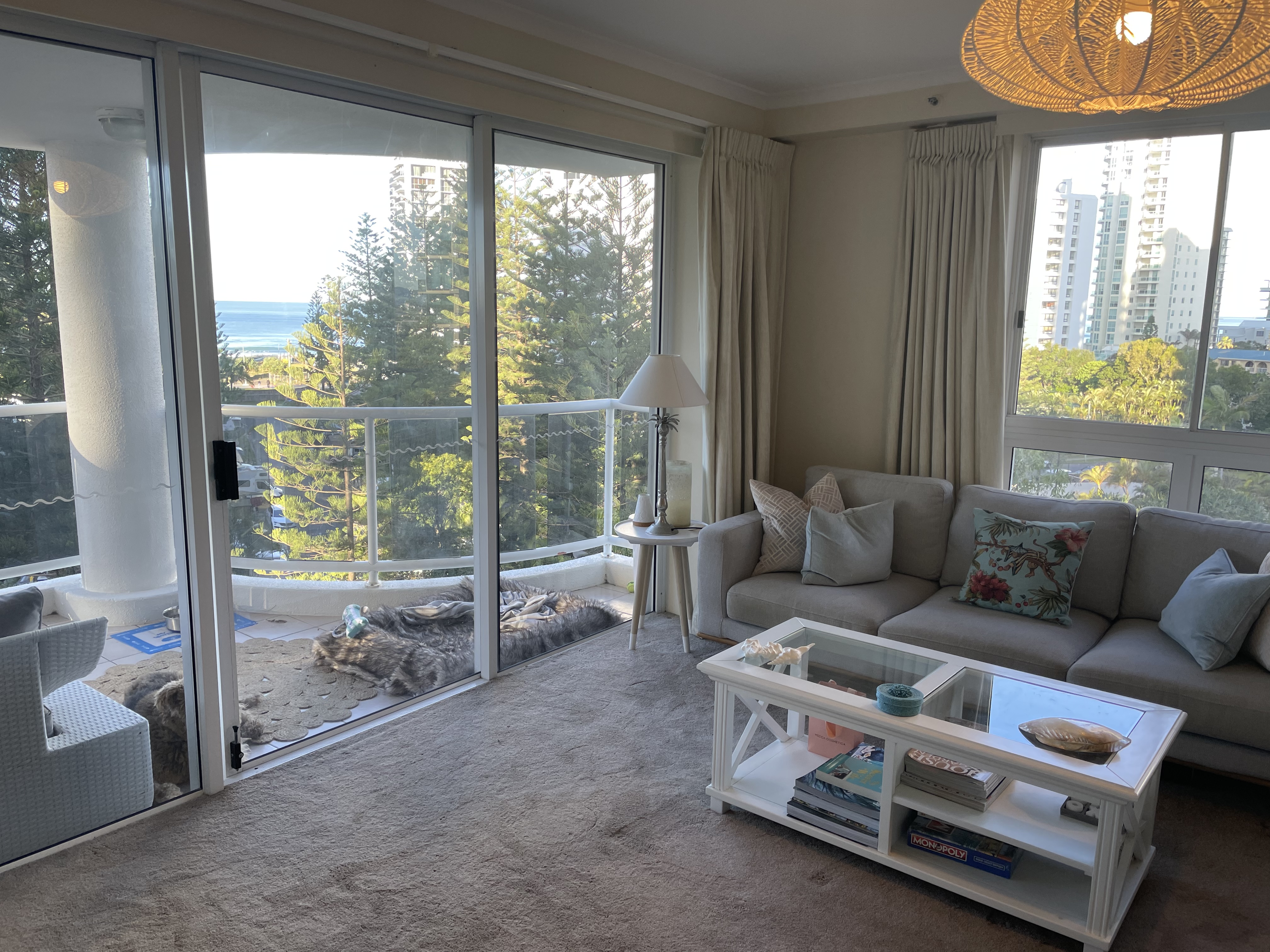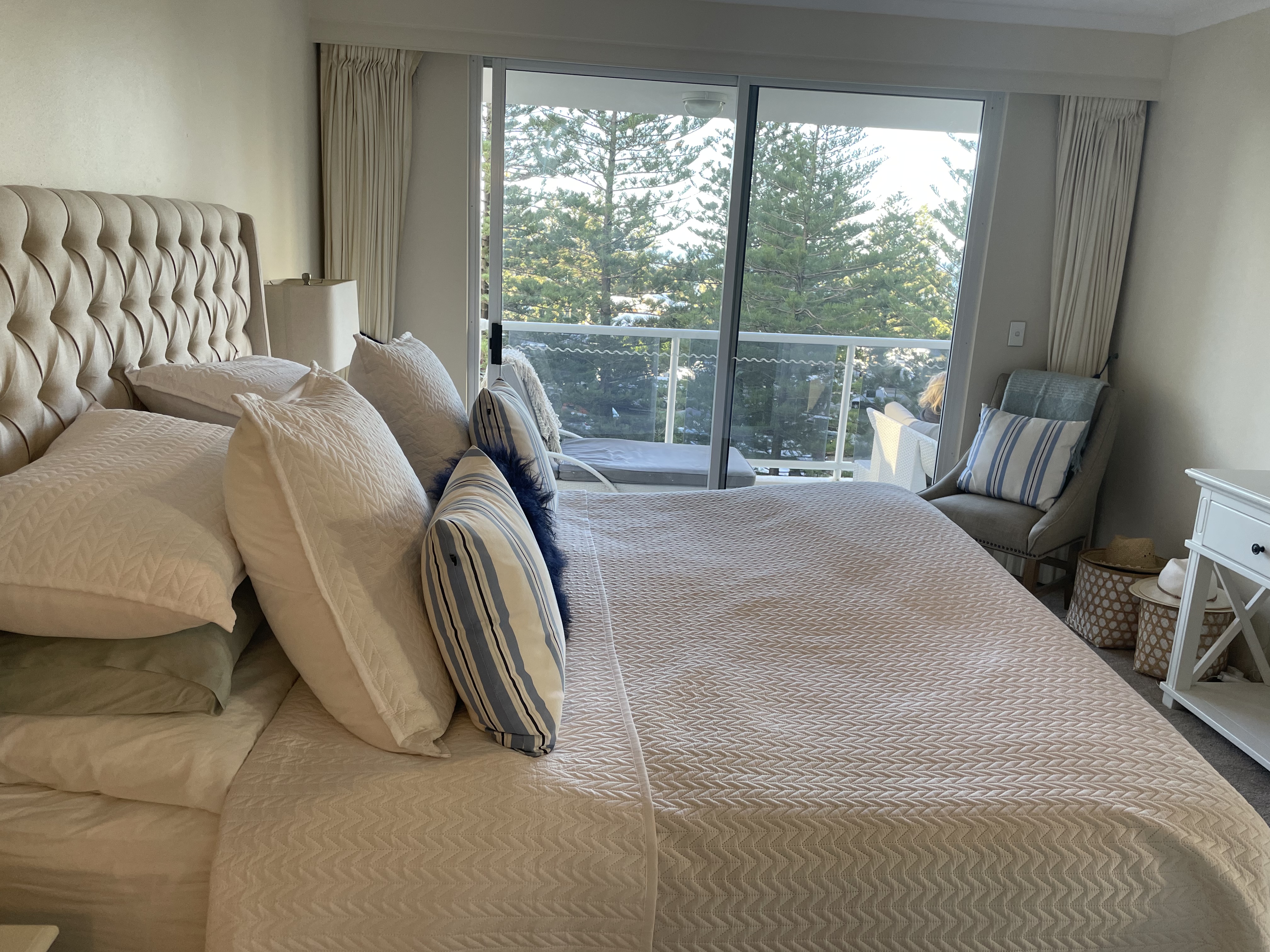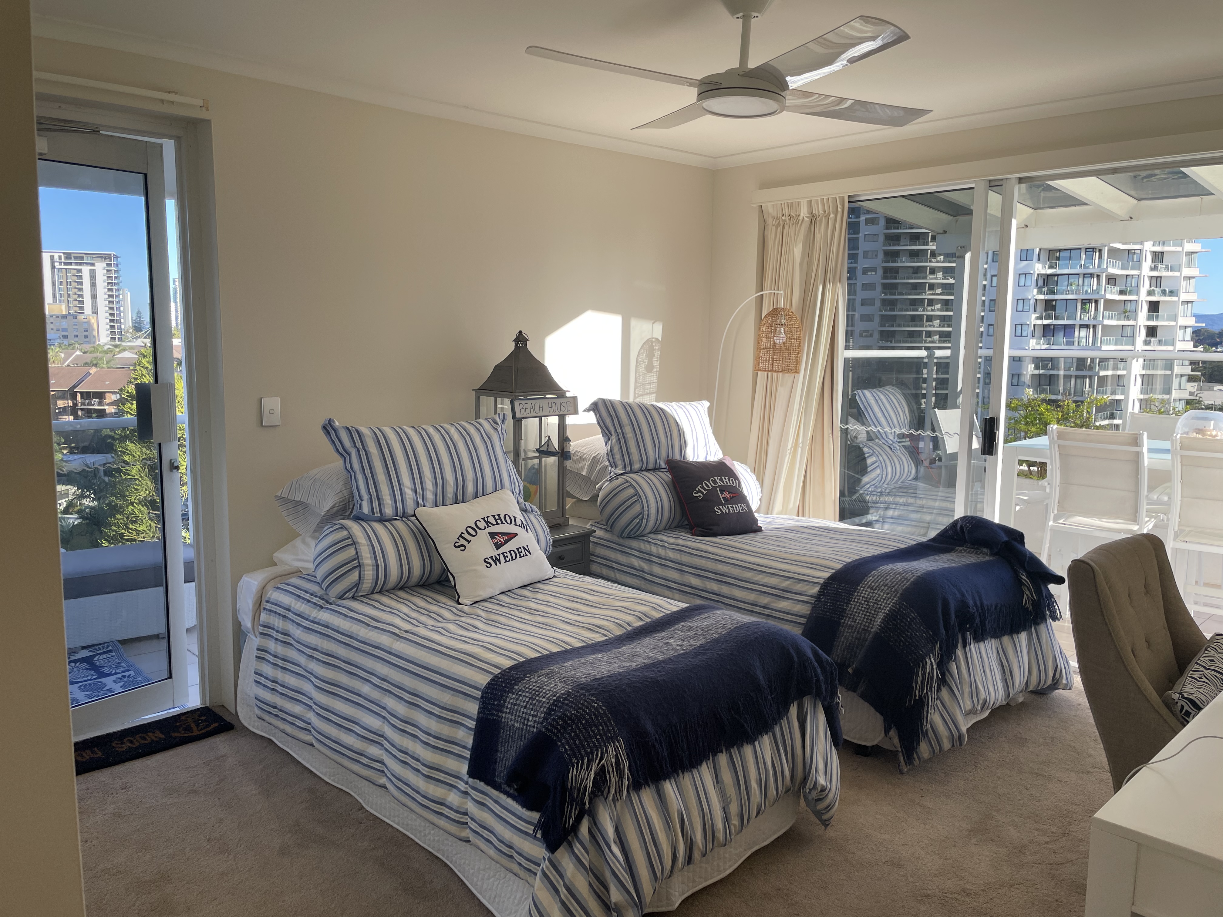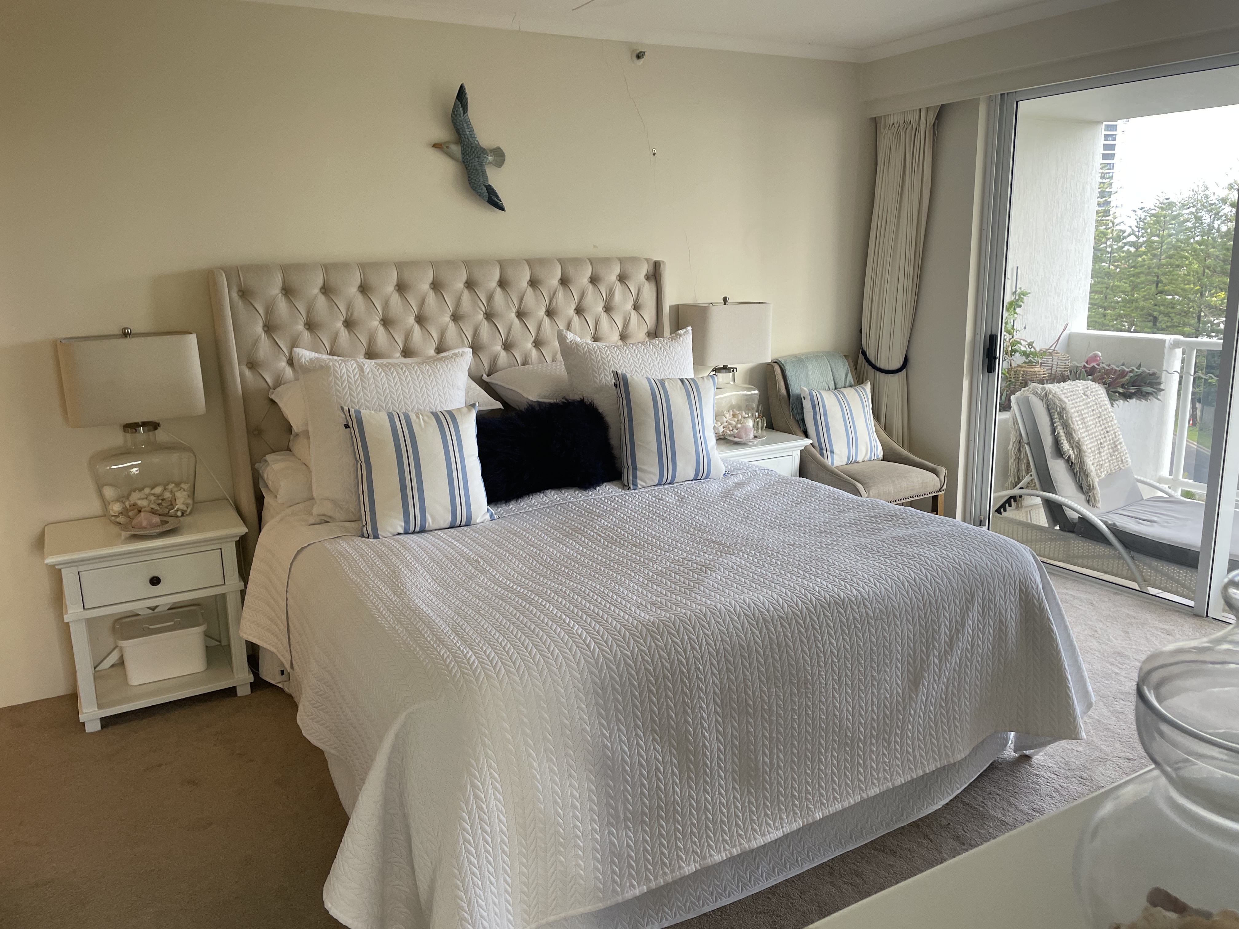 This stylish well-presented two bedroom apartment is a great size at 185m2 only one of two unique layouts in the building. It offers an extra large rear covered balcony that receives the afternoon sun and enjoys hinterland views and the cityscape lights by night. The eastern balcony receives morning sun most of the day and looks straight through to the ocean. Two spacious bedrooms with good separation are extra big. The master suite includes an excellent walk in robe and floor to ceiling tiled ensuite with large bath.