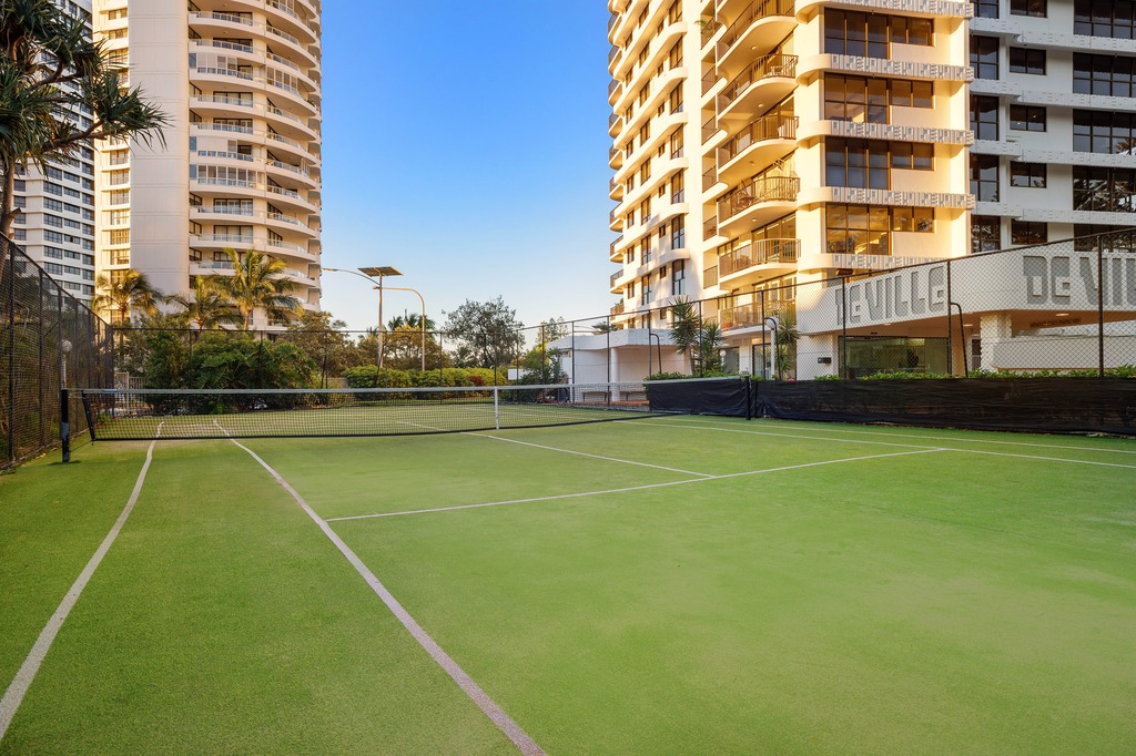 Iconic 'De Ville' occupies a prime position on the corner of Main Beach and Macarthur Parade, conveniently situated right between the Southport Surf Life Saving Club and the Southport Yacht Club. The building is located opposite the beachfront, and only moments to Tedder Avenue, a village hub that's home to a string of popular restaurants, cafes and conveniences. Boutique shopping and boating at Marina Mirage, five-star Palazzo Versace, Sheraton, and Sea World Resorts are all nearby. Resort facilities include a heated lagoon-style pool, spa, sauna, full-size tennis court, tropical gardens, barbecue and entertainment area.