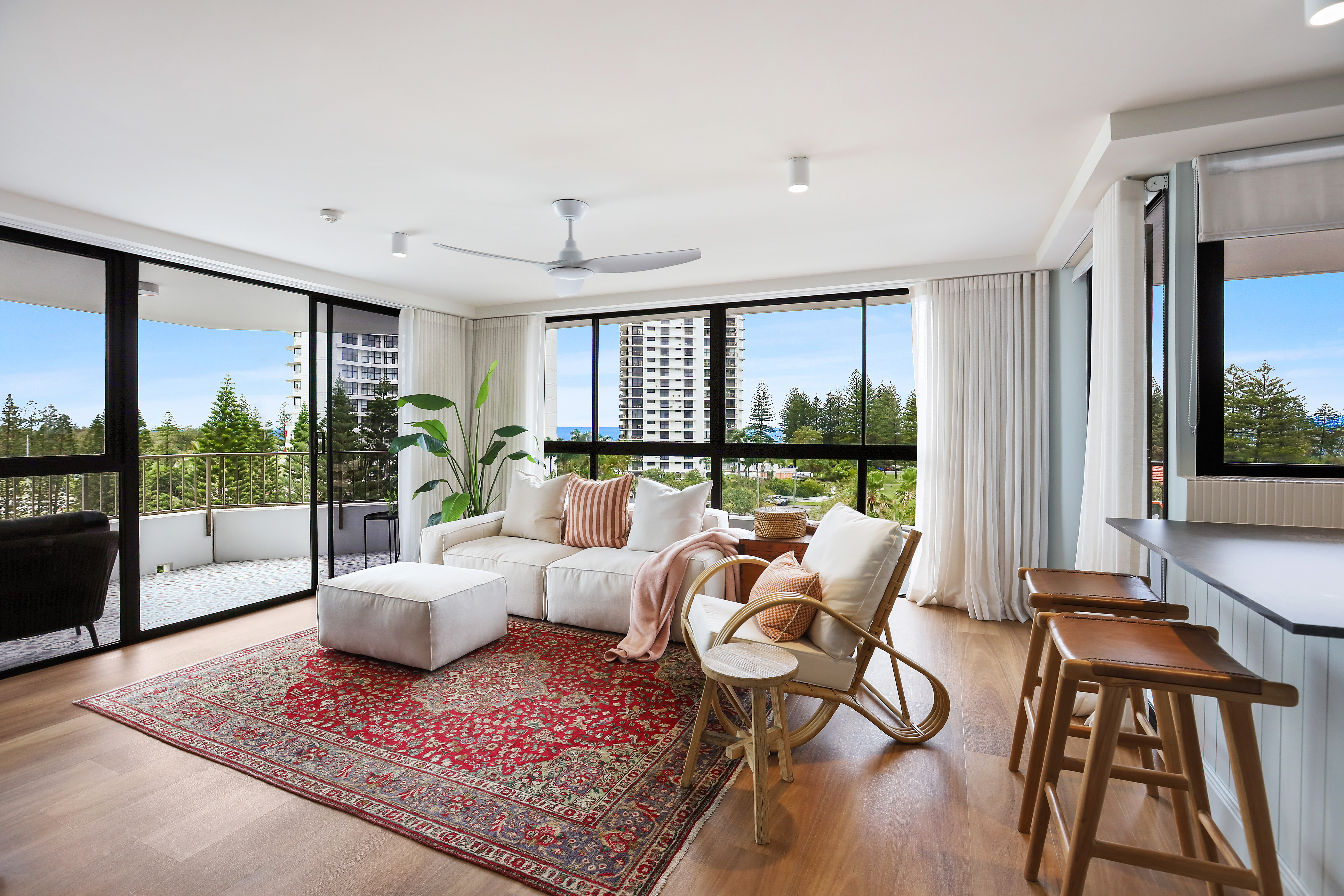 Offering you an exceptionally renovated beachside apartment where no detail has been overlooked, enjoy a full half floor in this boutique building with the favoured north-east aspect and fantastic views of the ocean, Broadwater, and marina from throughout the apartment and the large covered balconies.