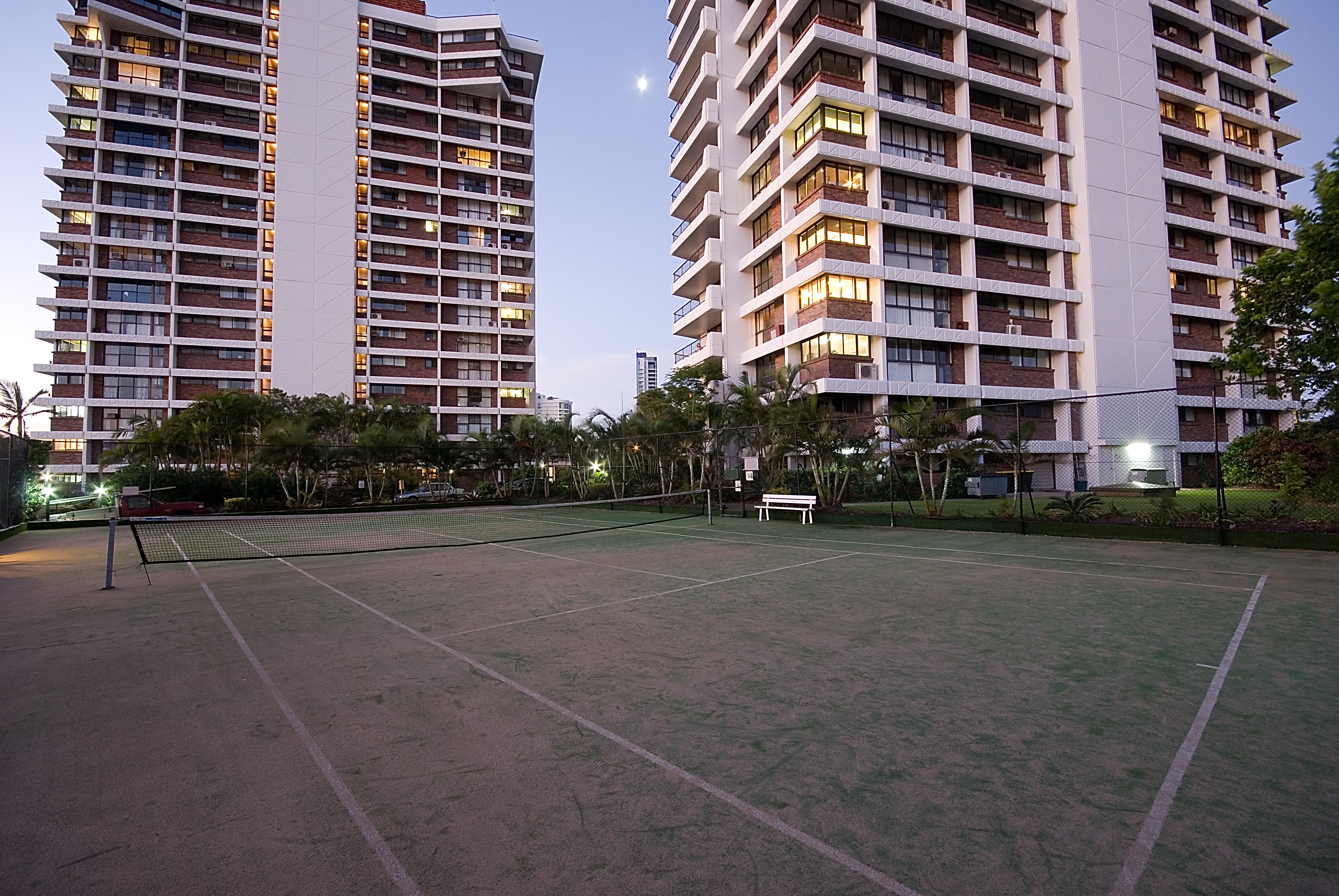 Building facilities include large outdoor pool, full size tennis court, spa, sauna, marina berths and boat ramp.