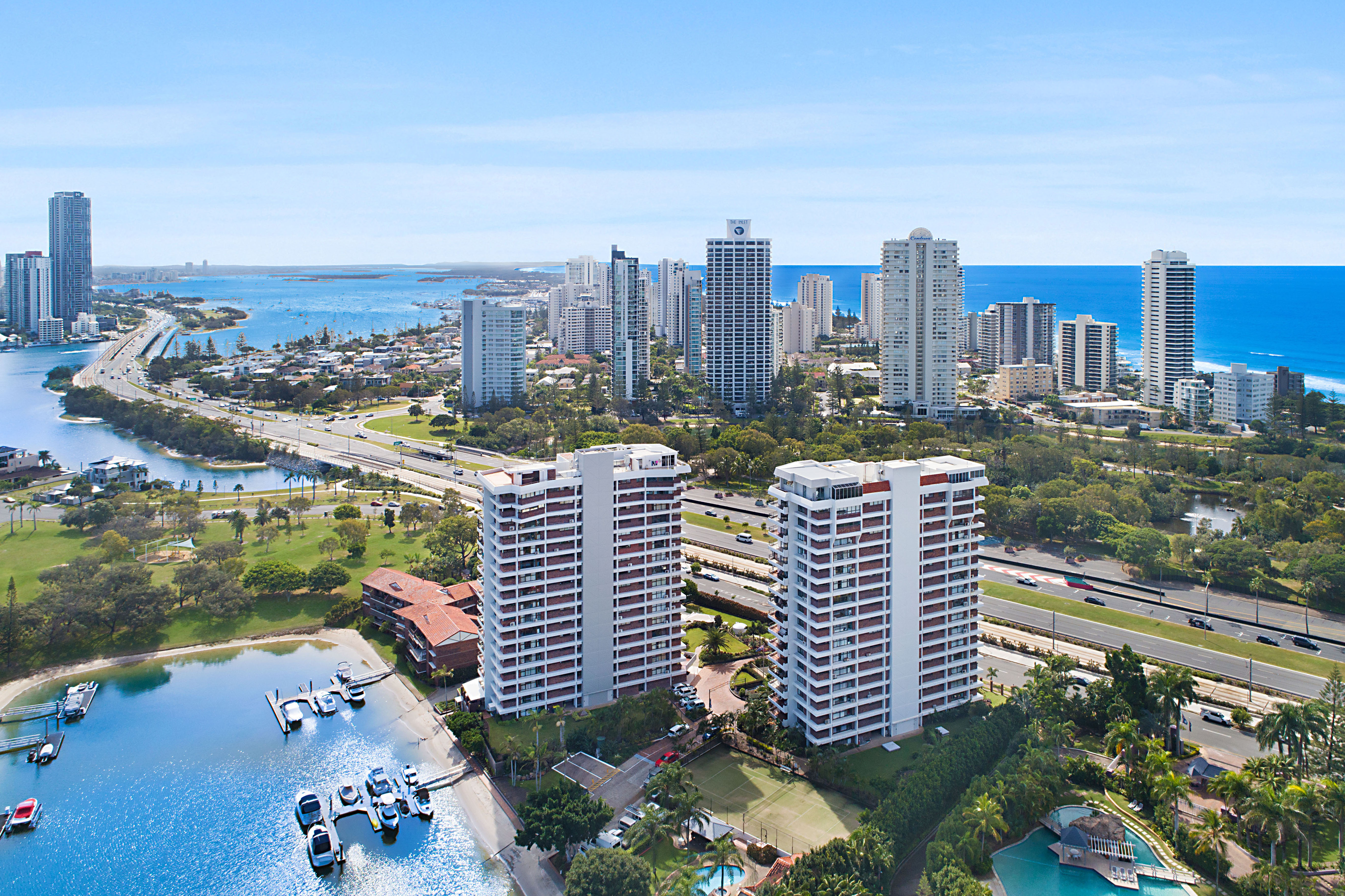 Perfectly located only a few hundred metres to the light rail station, patrolled surf beach, Tedder avenue cafes and multiple parks, Kings Row South is a high-quality residential building (no holiday rentals) situated on a large waterfront site in the Gold Coasts most exclusive waterfront suburb. The buildings great facilities include a beautiful pool, full size tennis court, sauna, spa, and BBQ area all over looking the water plus a marina and a boat ramp. With great onsite management the building and grounds are impeccably maintained plus brand new lifts are currently being installed.