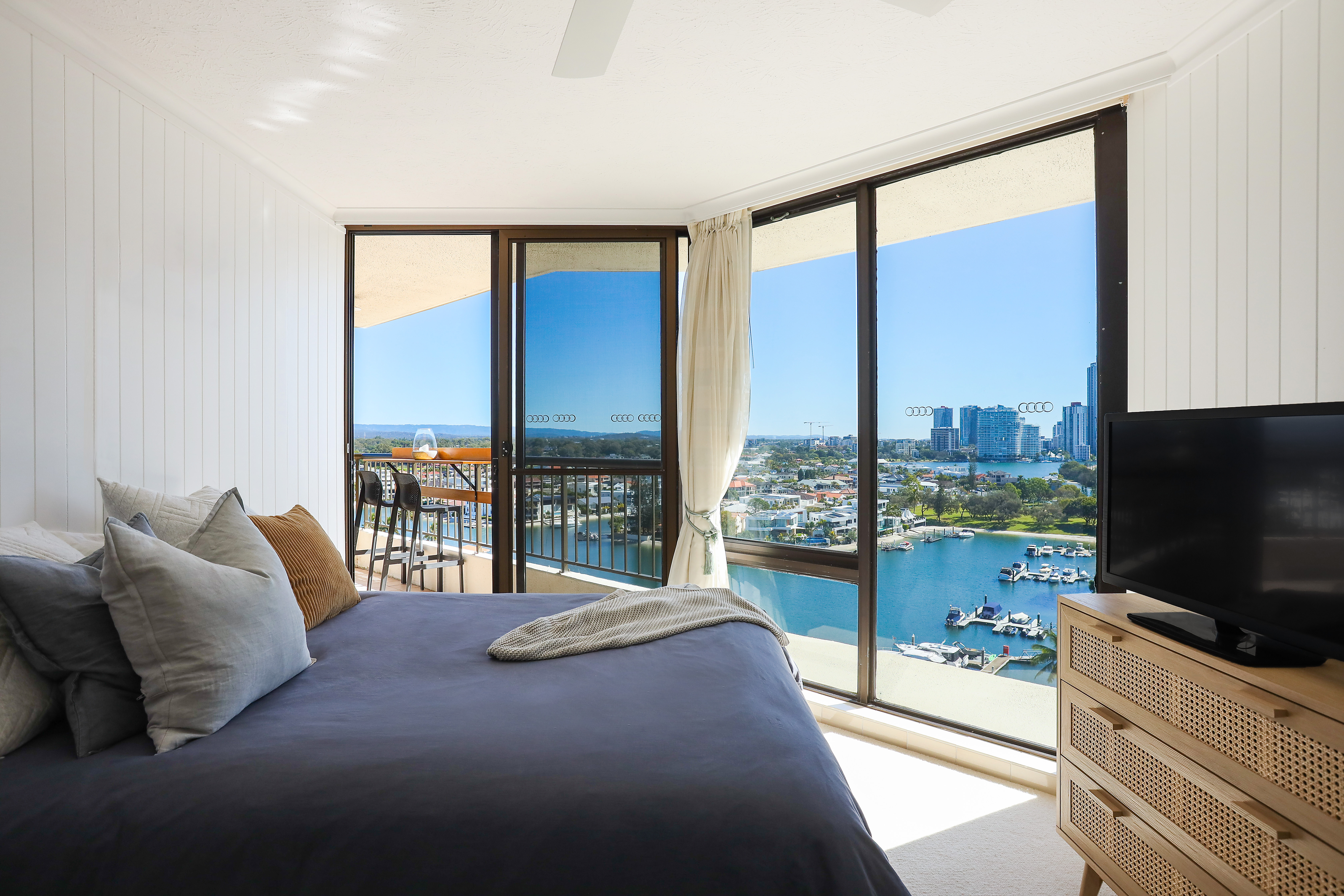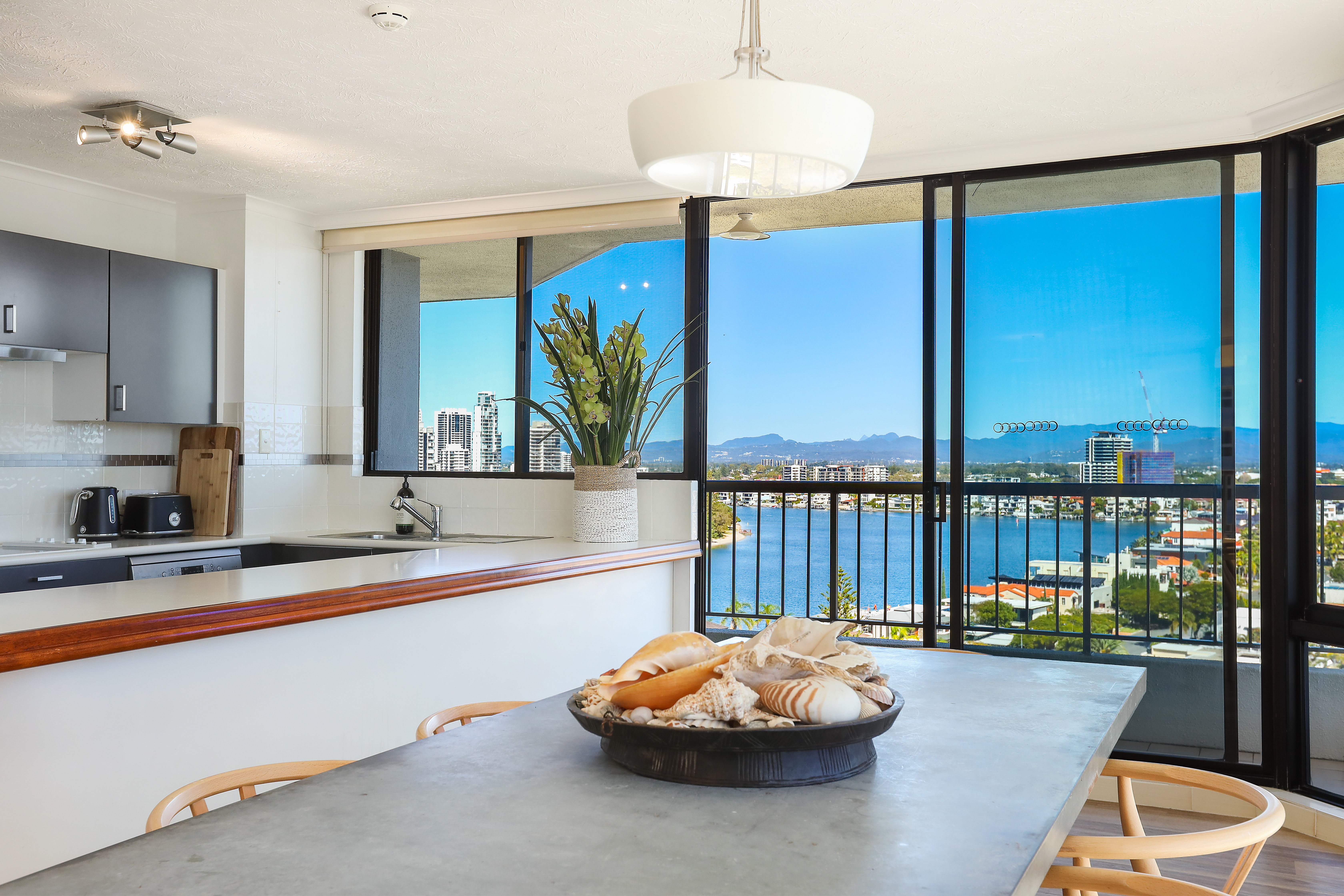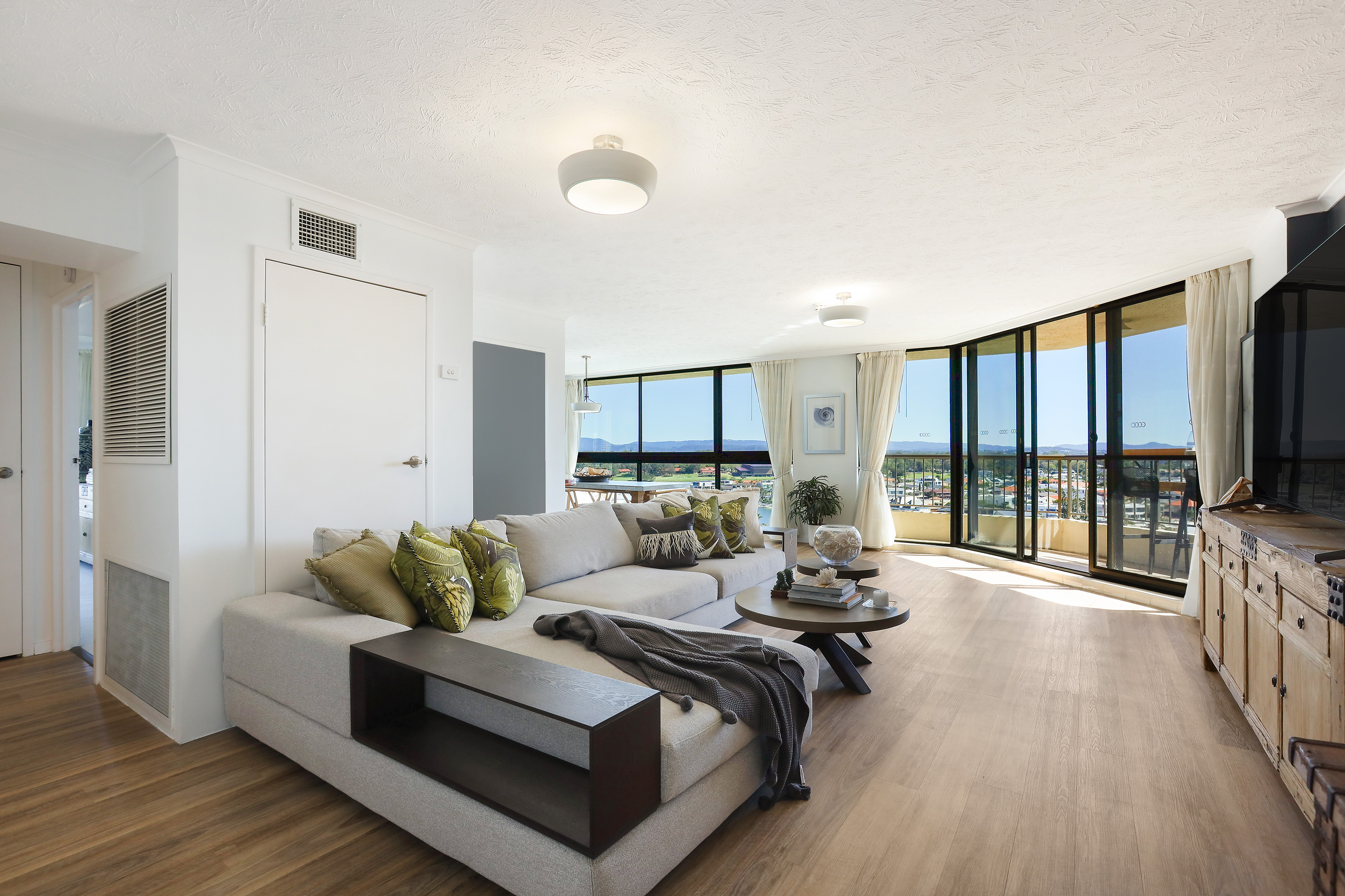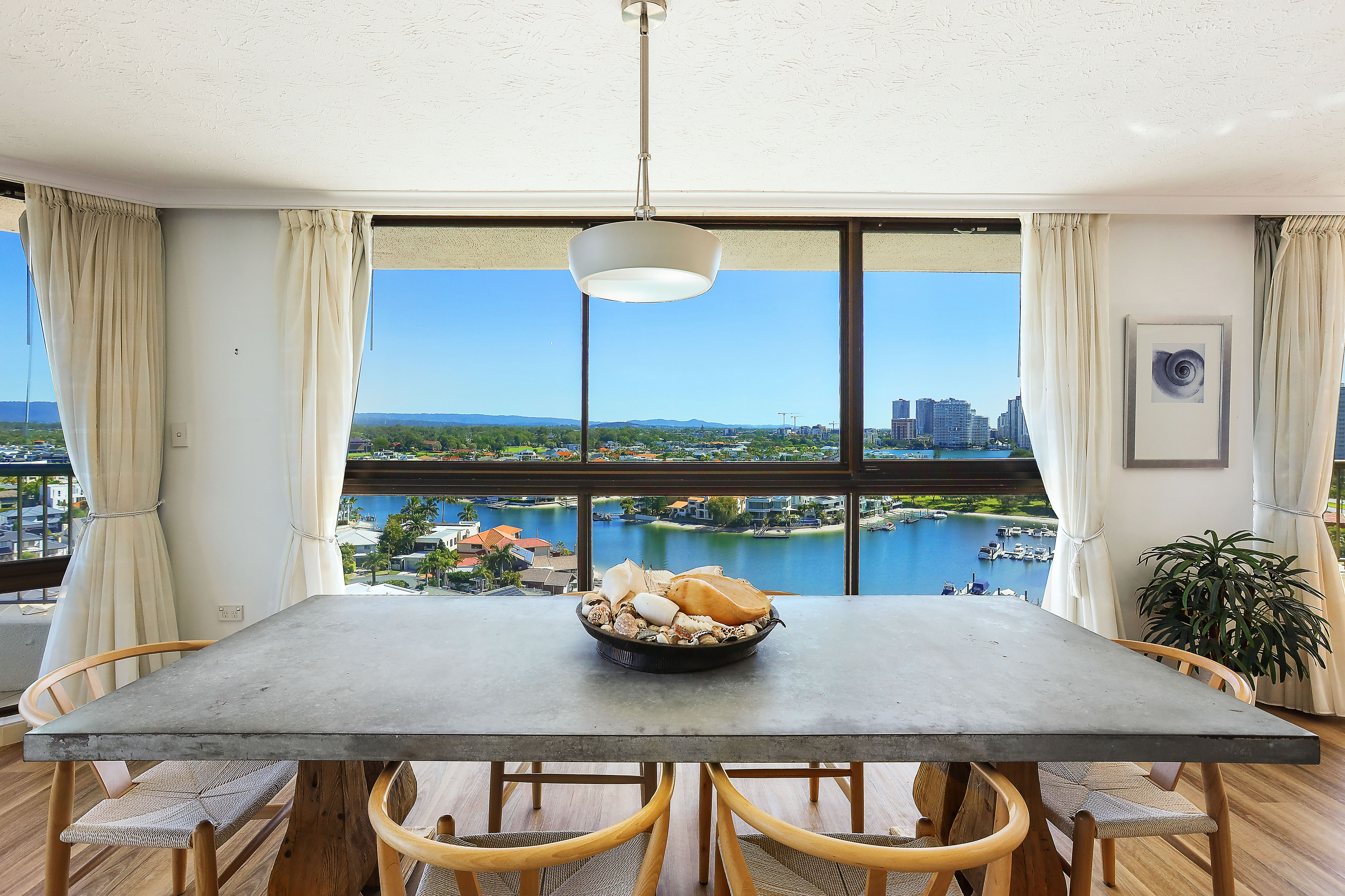 Here is a great opportunity to buy an enormous renovated residential apartment with sweeping views from every room, located in a desirable corner position that enhances the fabulous 270-degree views - sunny North aspect over the Pool and across to Narrowneck Beach; west over the Nerang (main) River and to the Hinterland; and south to the City Skyline and Budd's Beach. Great cross ventilation and well removed from any road noise. This stunning apartment will suit the most fastidious buyer.