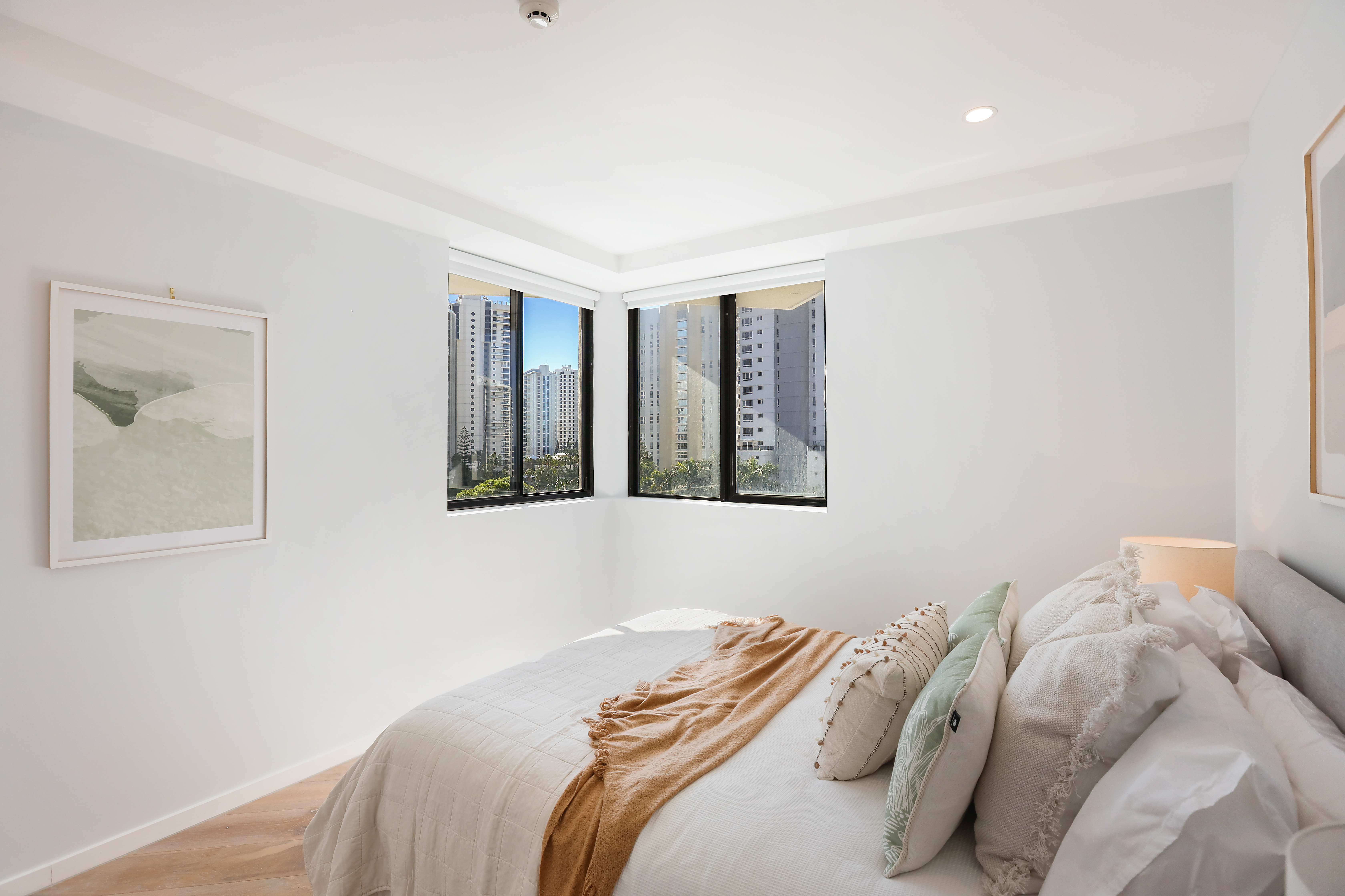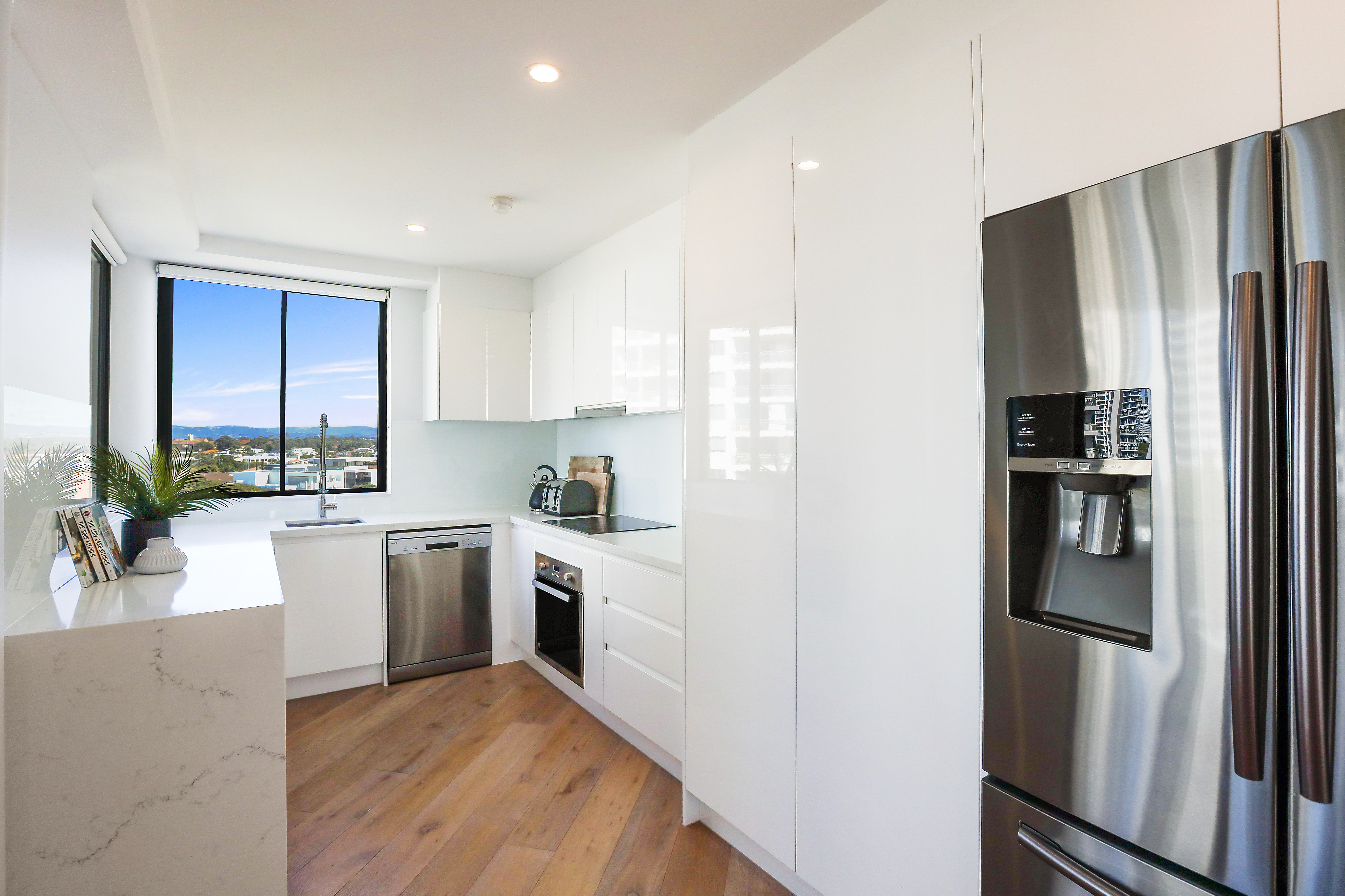 The kitchen has been designed to showcase style and convenience. A chef's dream! 40mm stone benches, designer integrated oven and electric cooktop, overlooking the mountains, make meal prep something to truly enjoy. All modern appliances including brand new dishwasher and double icemaker fridge make this the ideal kitchen. The apartment boasts 2 separate living areas, and a rear balcony facilitates spacious living at its best. This property has been renovated, is vacant and ready for you to move in and enjoy luxurious Main Beach living!