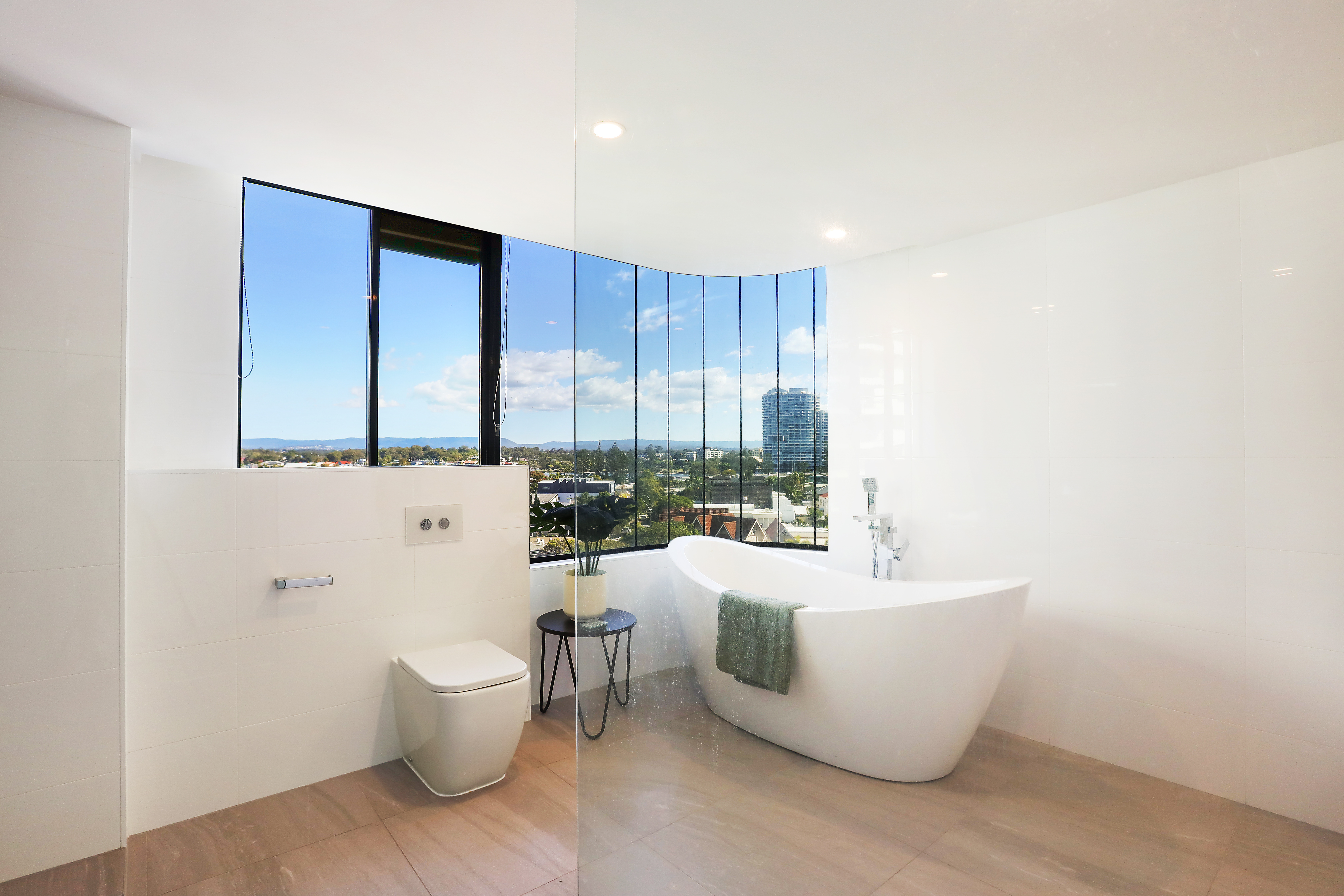 The master bedroom suite is simply stunning with its impressive picture windows framing the mountains as a backdrop, generously sized WIR and huge brand new ensuite with double sink stone benches, floating bath, concealed toilet, and oversized rainwater shower. The other 2 bedrooms and bathroom are positioned at the opposite end of the apartment to maximise privacy and enjoy those eastern ocean views and breezes. Fully ducted reverse cycling air-conditioning throughout the property ensures year-round comfort.