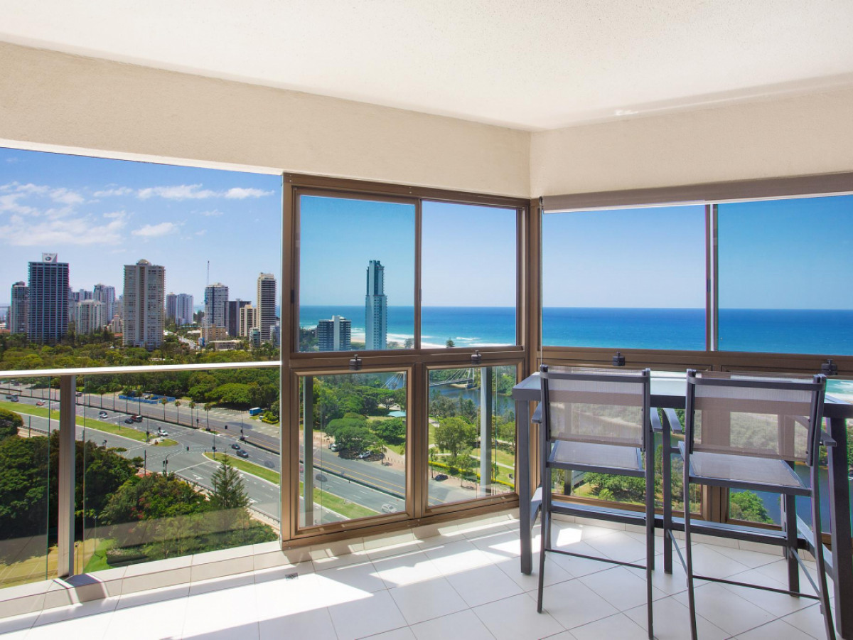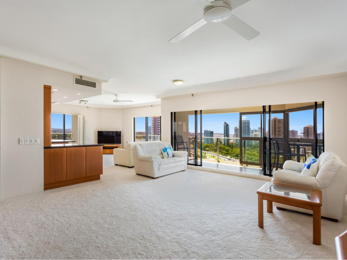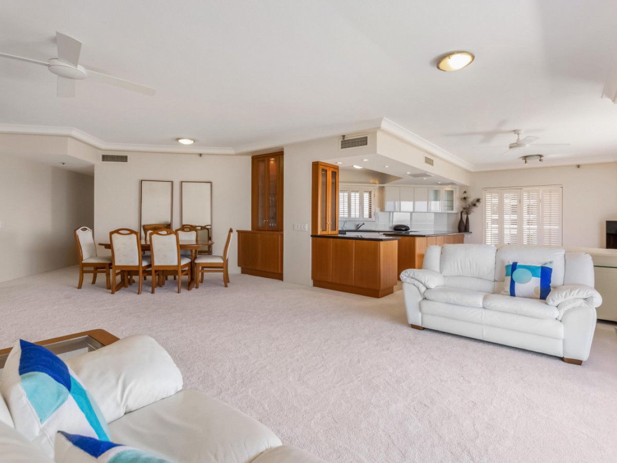 Featuring an enormous living area and a beautifully appointed open plan kitchen, this stunning 18th level apartment has spectacular northern views of the beach, broadwater and hinterland that can never be built out.