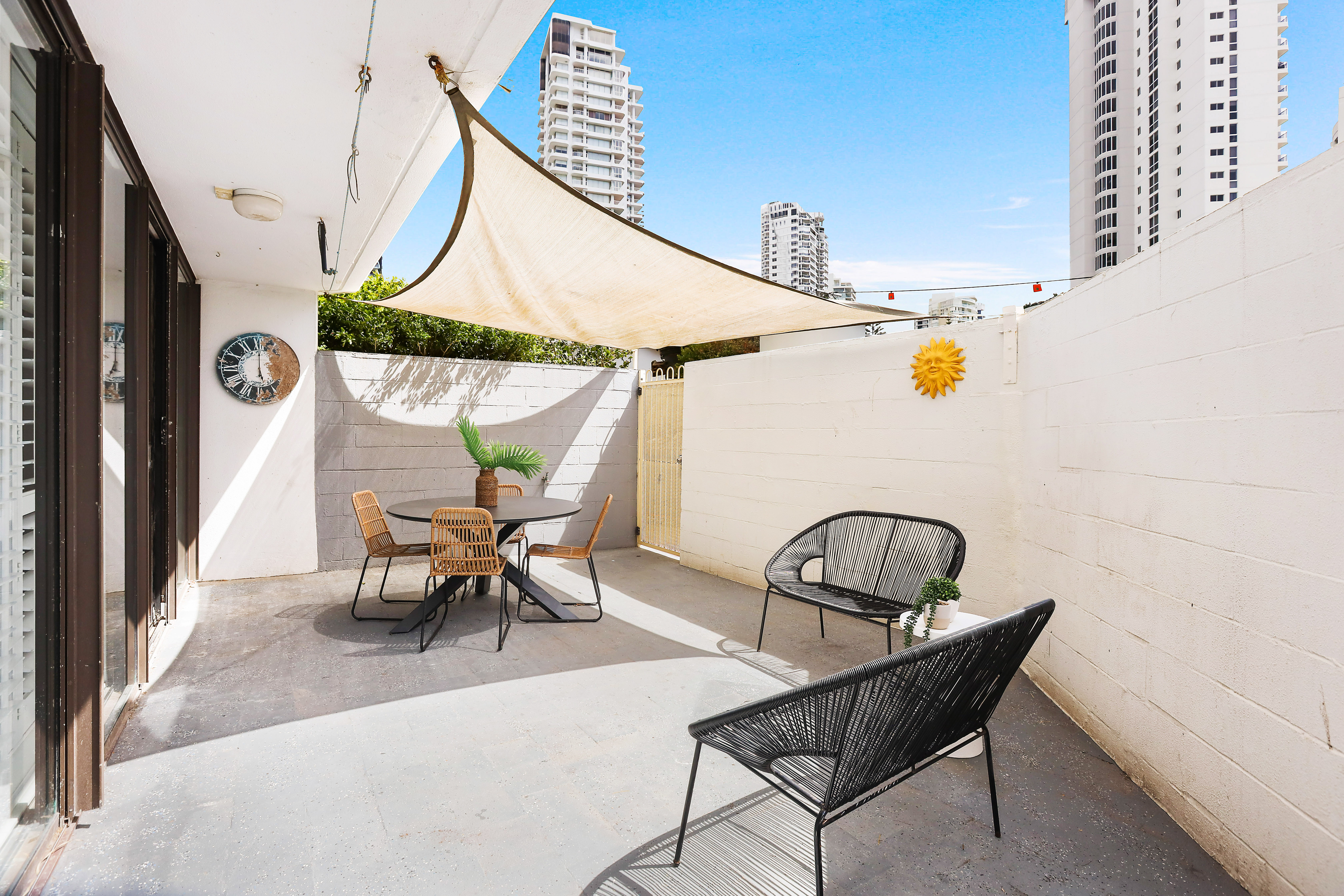 Unlock the full potential of this ground floor, 2-bedroom, 1-bathroom apartment with extra large courtyard in Carrington Court – a rare find for those with a vision for transformation. Nestled in the heart of Main Beach, this unrenovated gem offers a blank canvas for savvy renovators, with the exciting possibility of converting the existing layout into a 2-bathroom configuration. Whether you're seeking a coastal lifestyle upgrade or a lucrative investment, this apartment is brimming with potential.