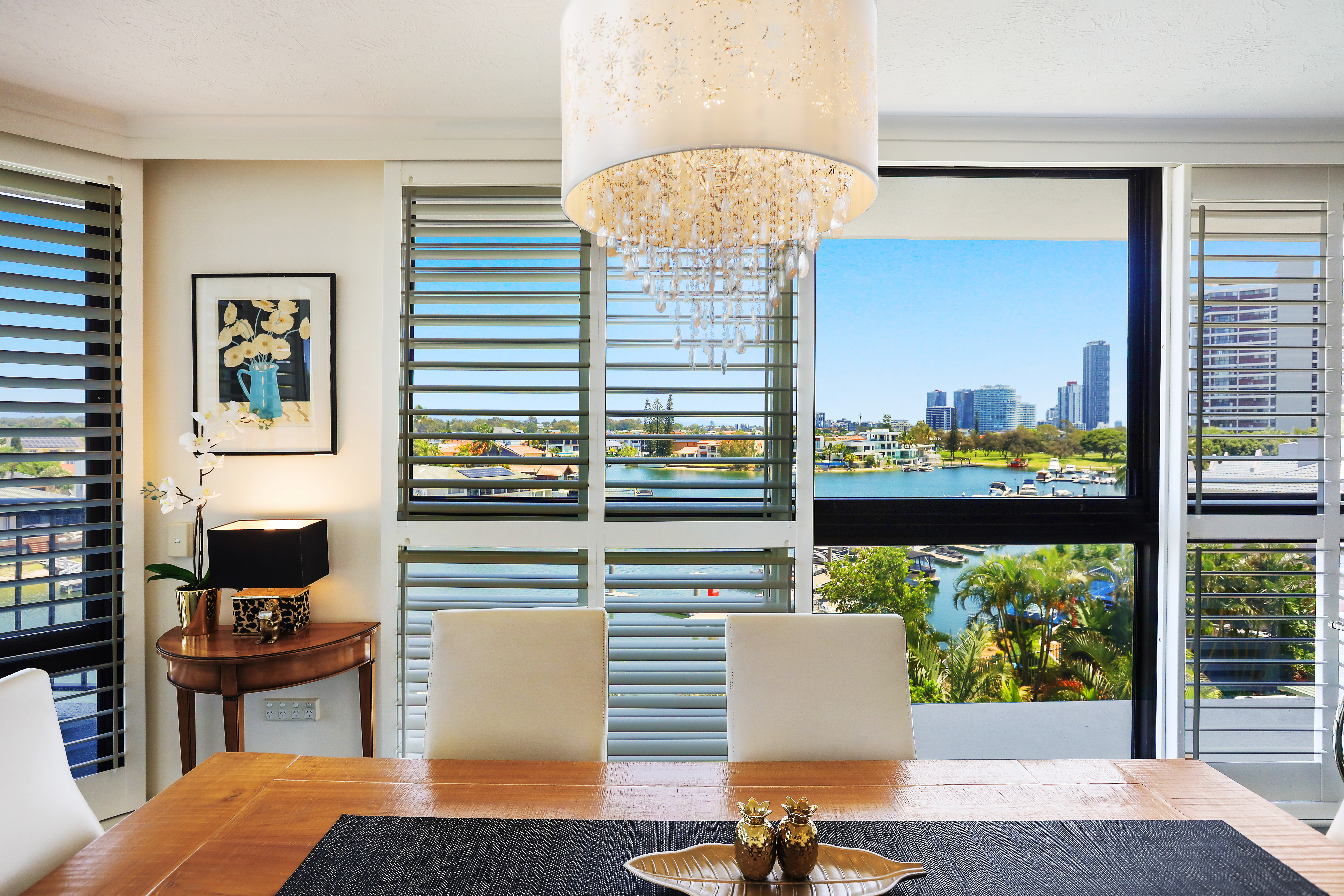 The breathtaking views from this apartment are simply stunning, with panoramic views across the marina and river, and finished with a backdrop of the beautiful Gold Coast . hinterland