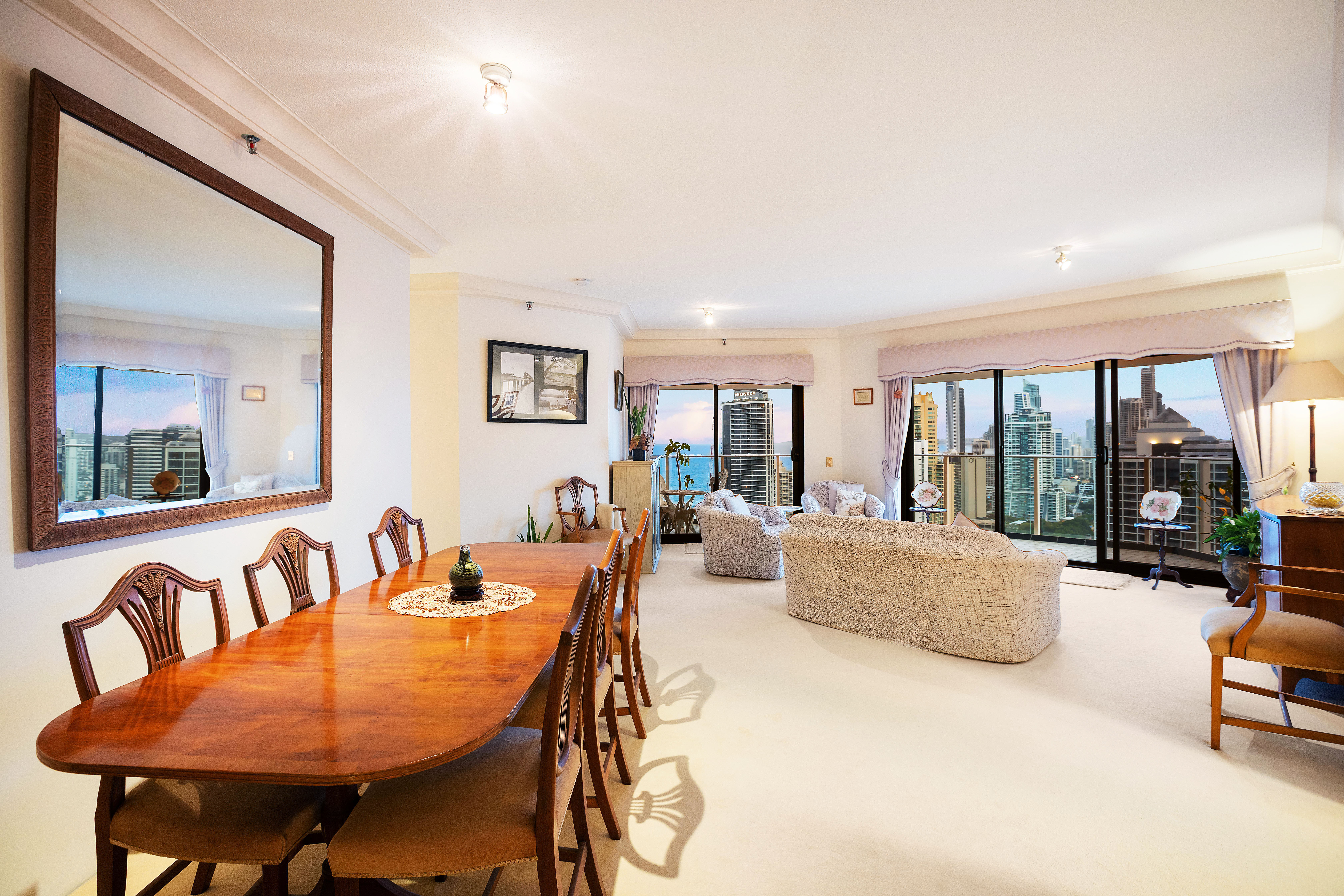 * Encompassing the entire East side of the building with aspect to the North, East and South and well above the surrounding buildings with amazing views of the beach, broadwater, hinterland, river plus Main Beach and Surfers Paradise skyline
