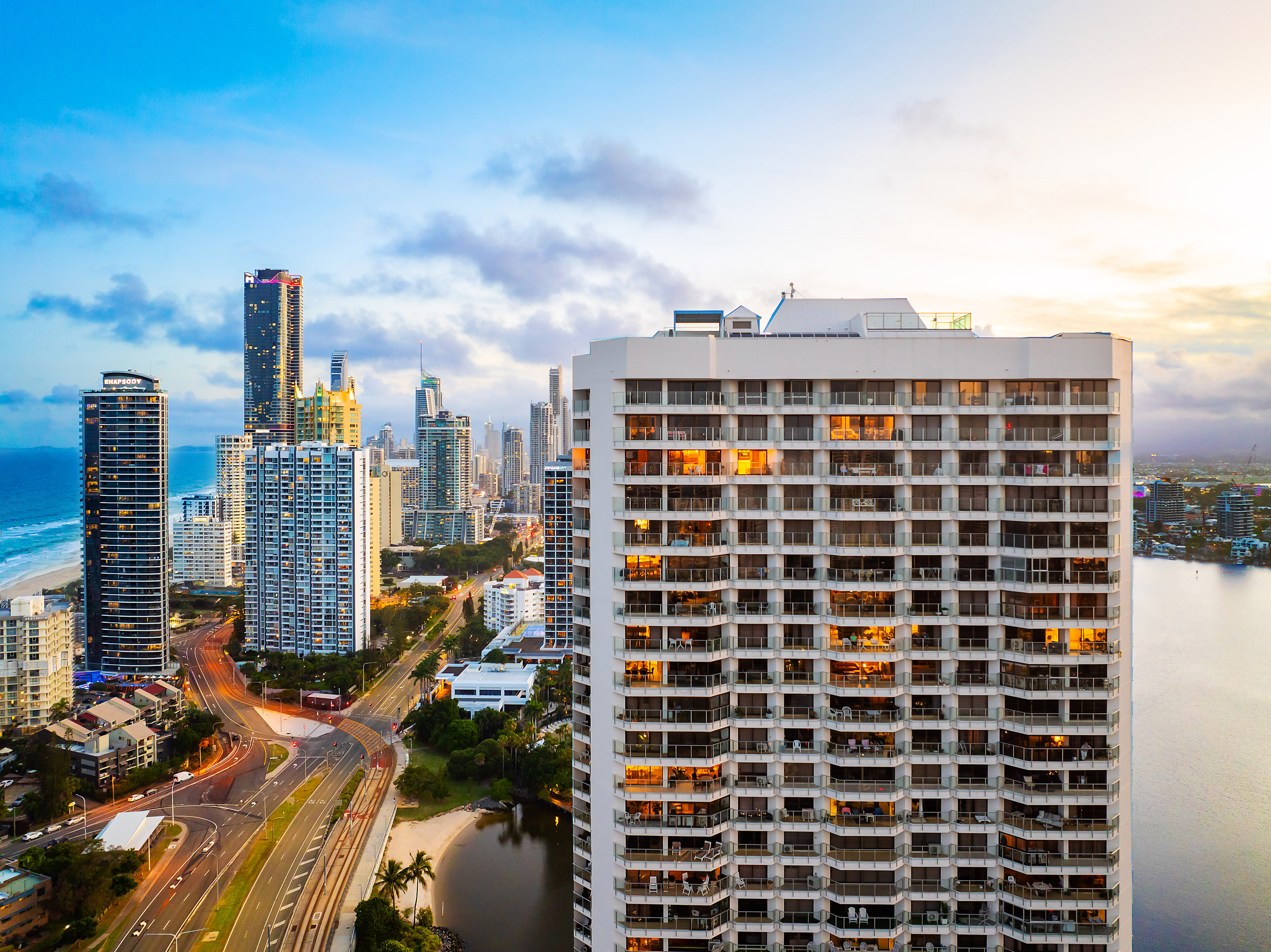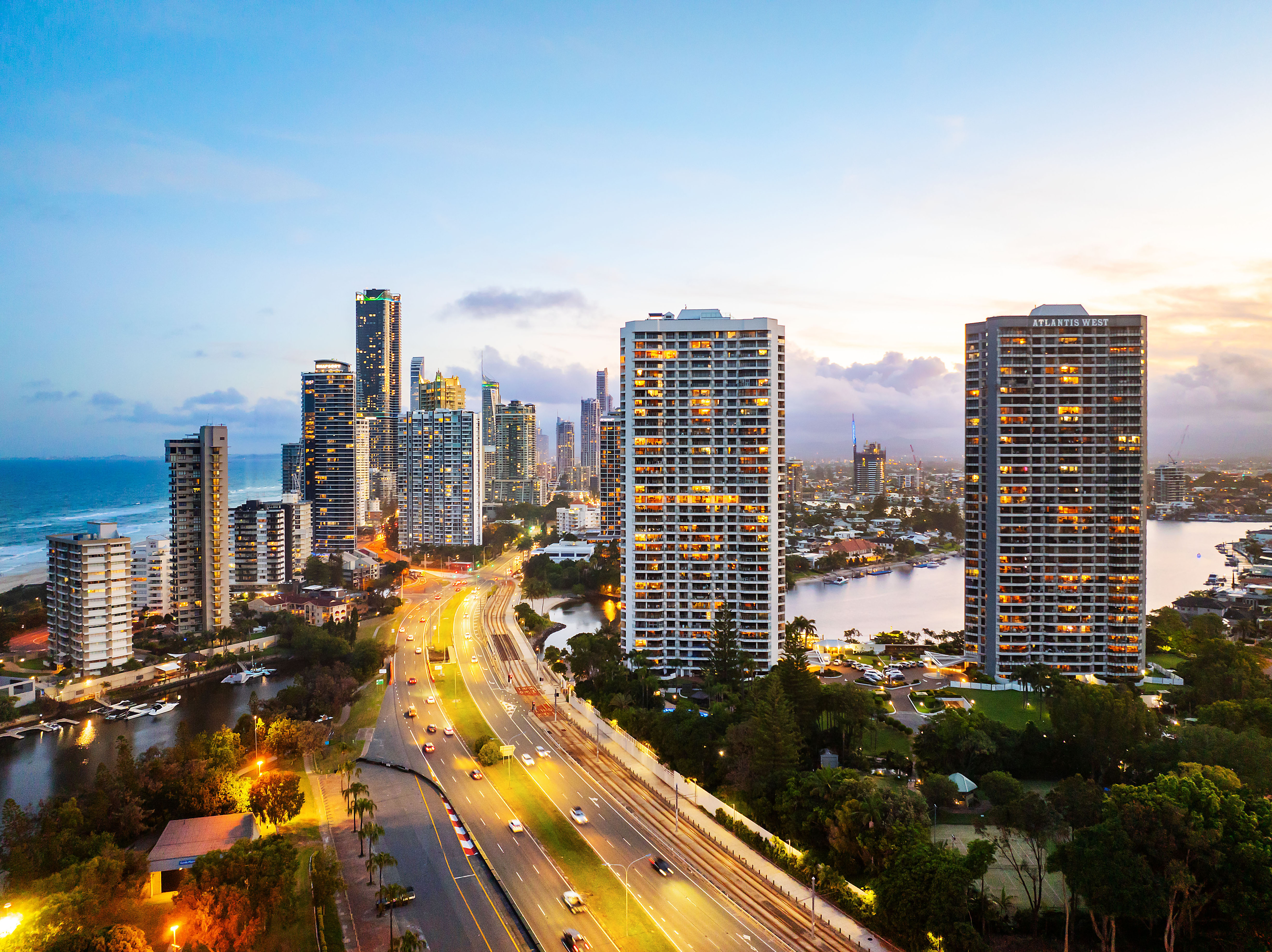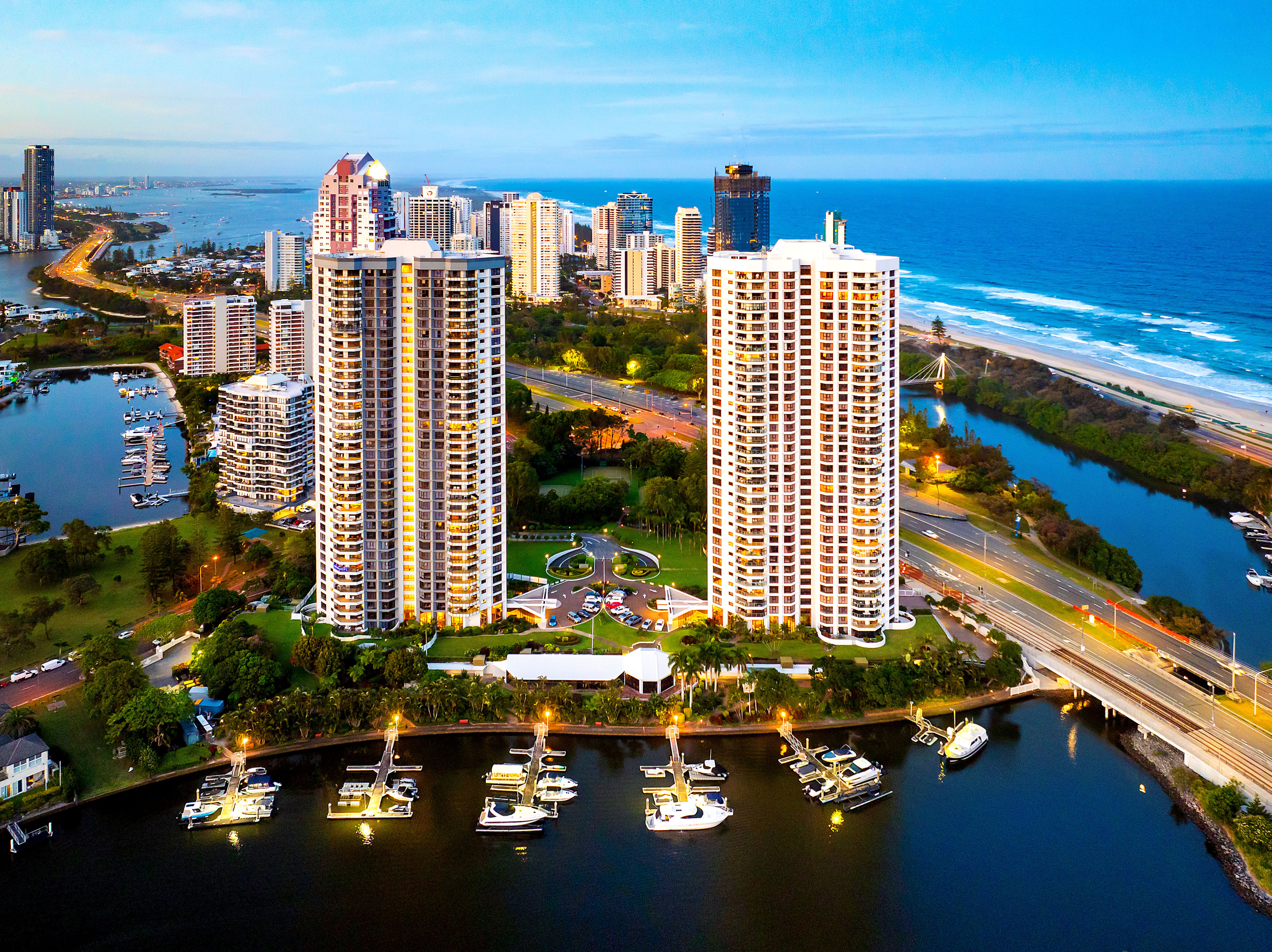 Atlantis East is a premium residential building situated on an amazing 28,000 square metres (shared with Atlantis West) of prime riverfront land. The building is located just minutes walk from the light rail, Tedder Avenue, multiple parks and patrolled surf beach. The buildings extensive facilities include manned security at night and weekends, large outdoor pool, indoor lap pool, sauna, spa, steam room, gym, large marina, library, meeting rooms and 3 full-size tennis courts.