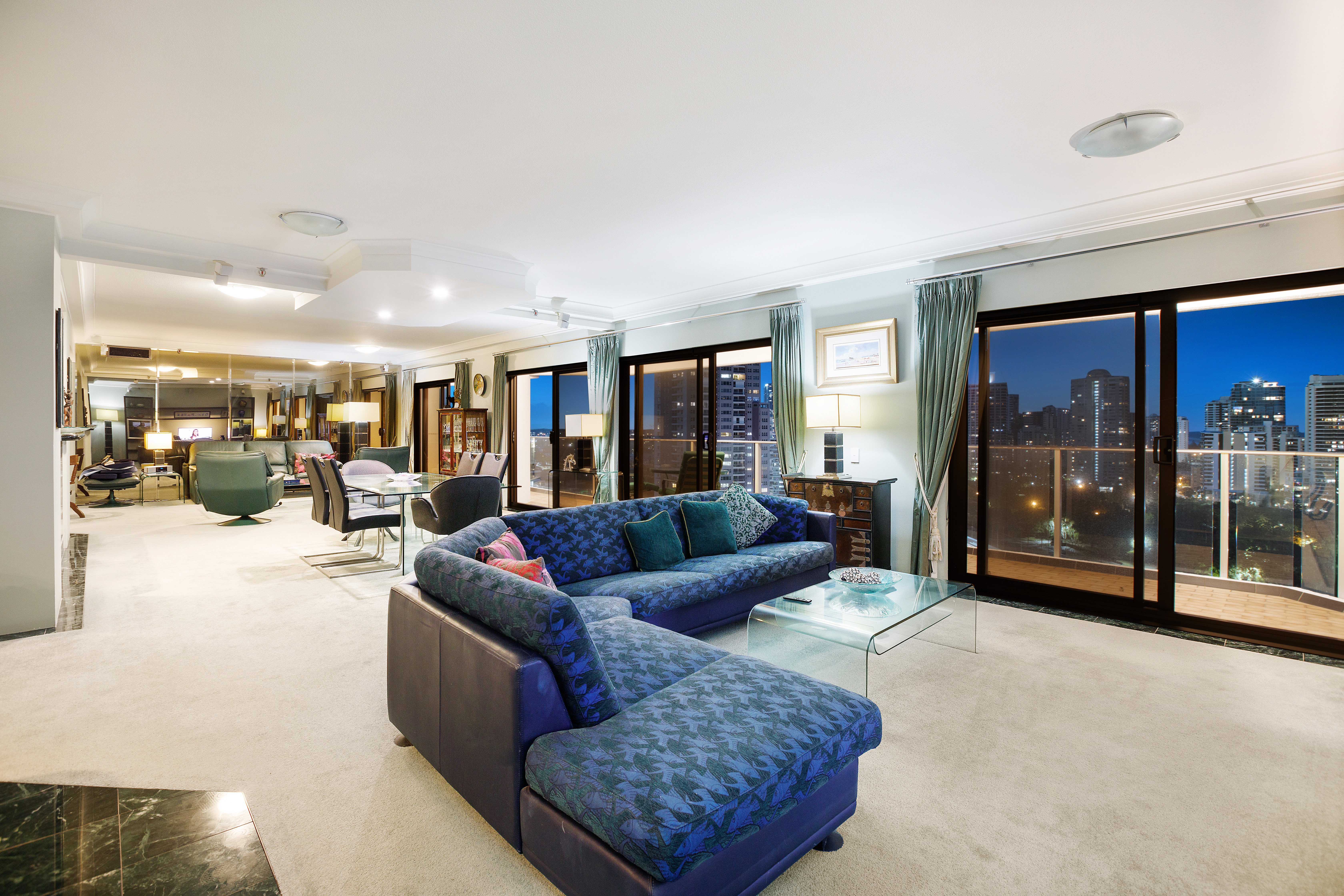 Situated on the 18th level this unique 346 sq metre apartment is larger than most Sub Penthouses. Originally 3 apartments, 2 were converted to a single property off the plan and a second N/E aspect 2 bed 2 bath unit was added at a later date. Perfect for extended family or a live in carer with a separate connected apartment, alternatively rent or sell as it remains on a separate title.