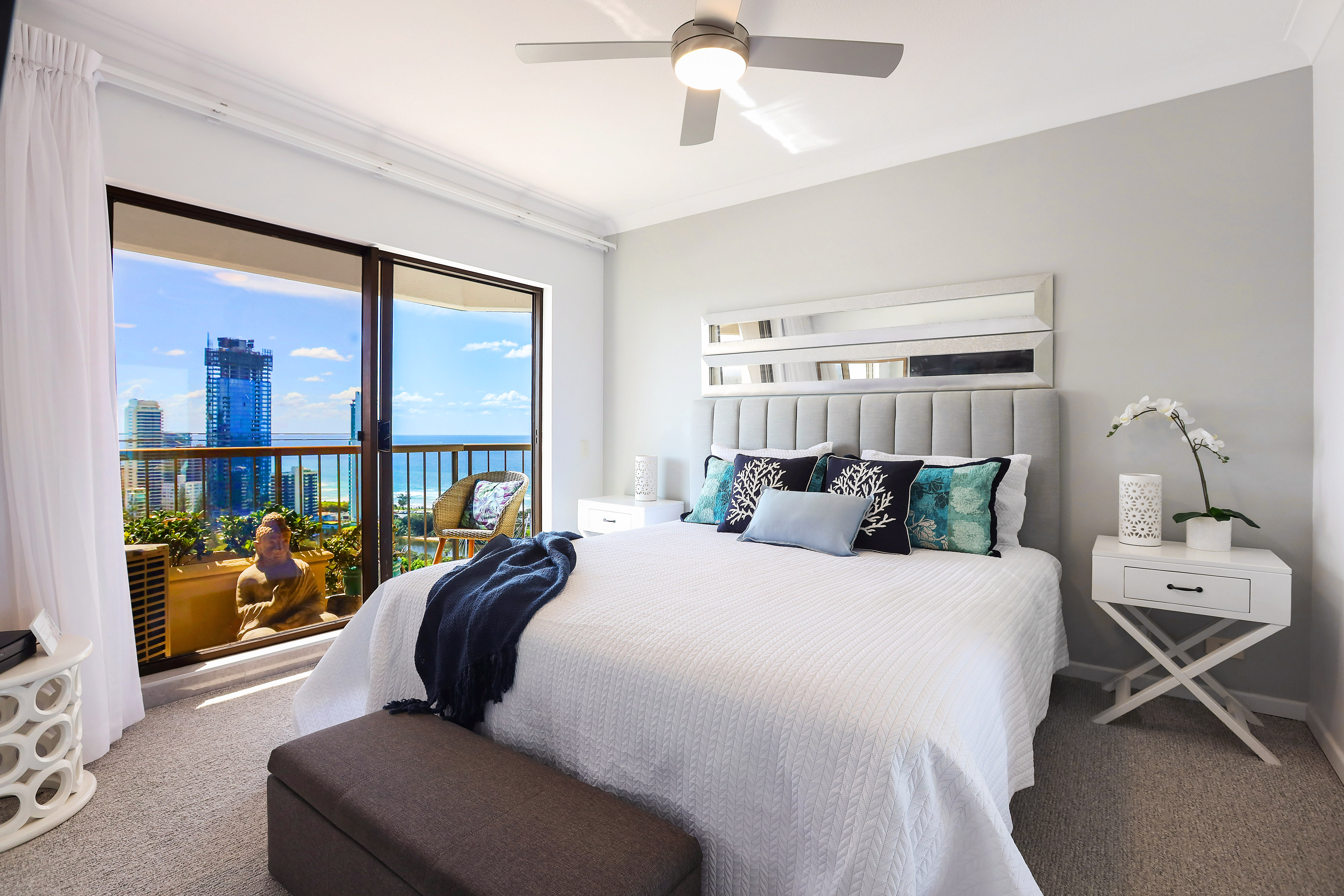Perched up high on the 23rd level, this stunning oversized apartment features spectacular northern views of the beach, broadwater, Main Beach skyline and hinterland that are spectacular both day and night and can never be built out.