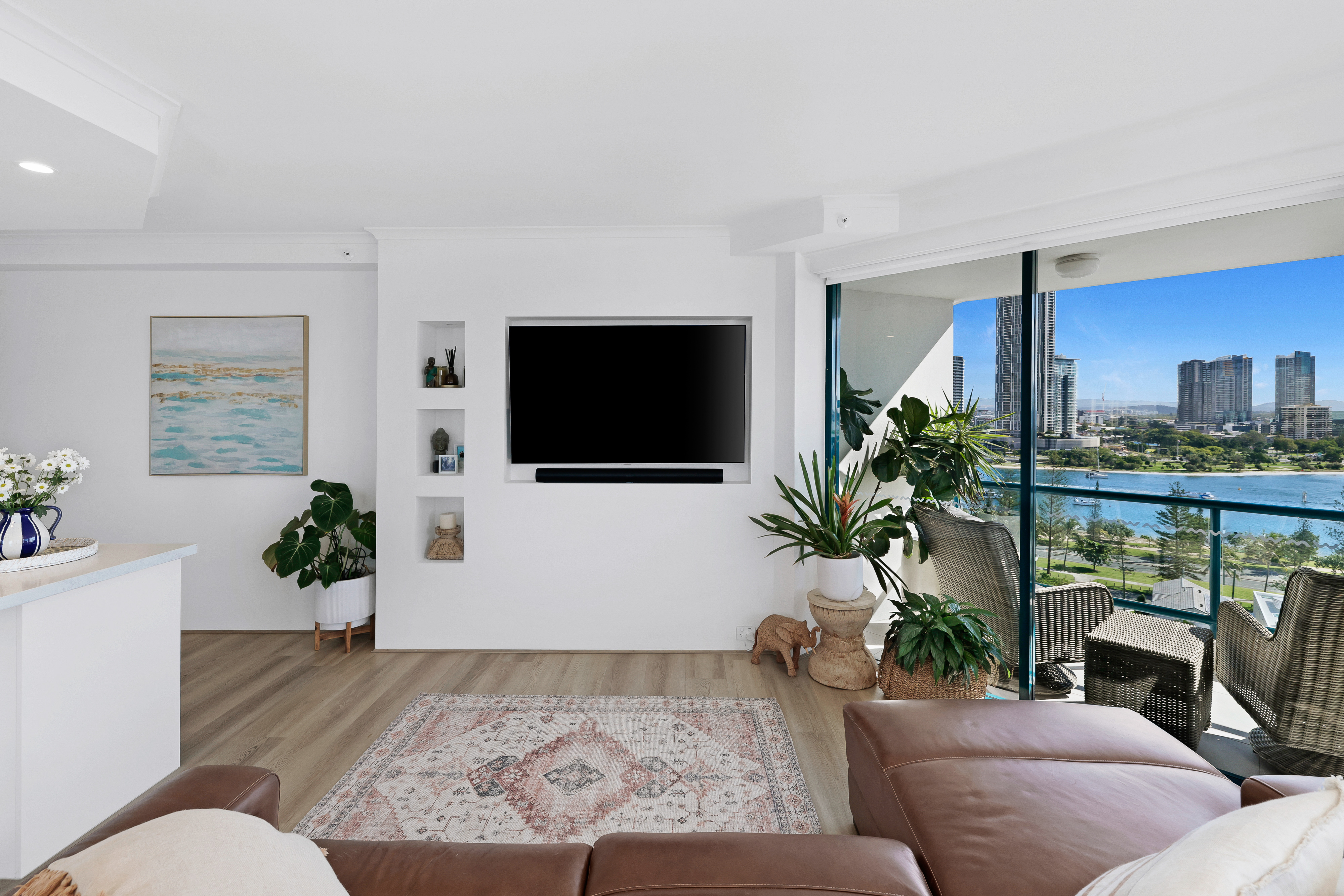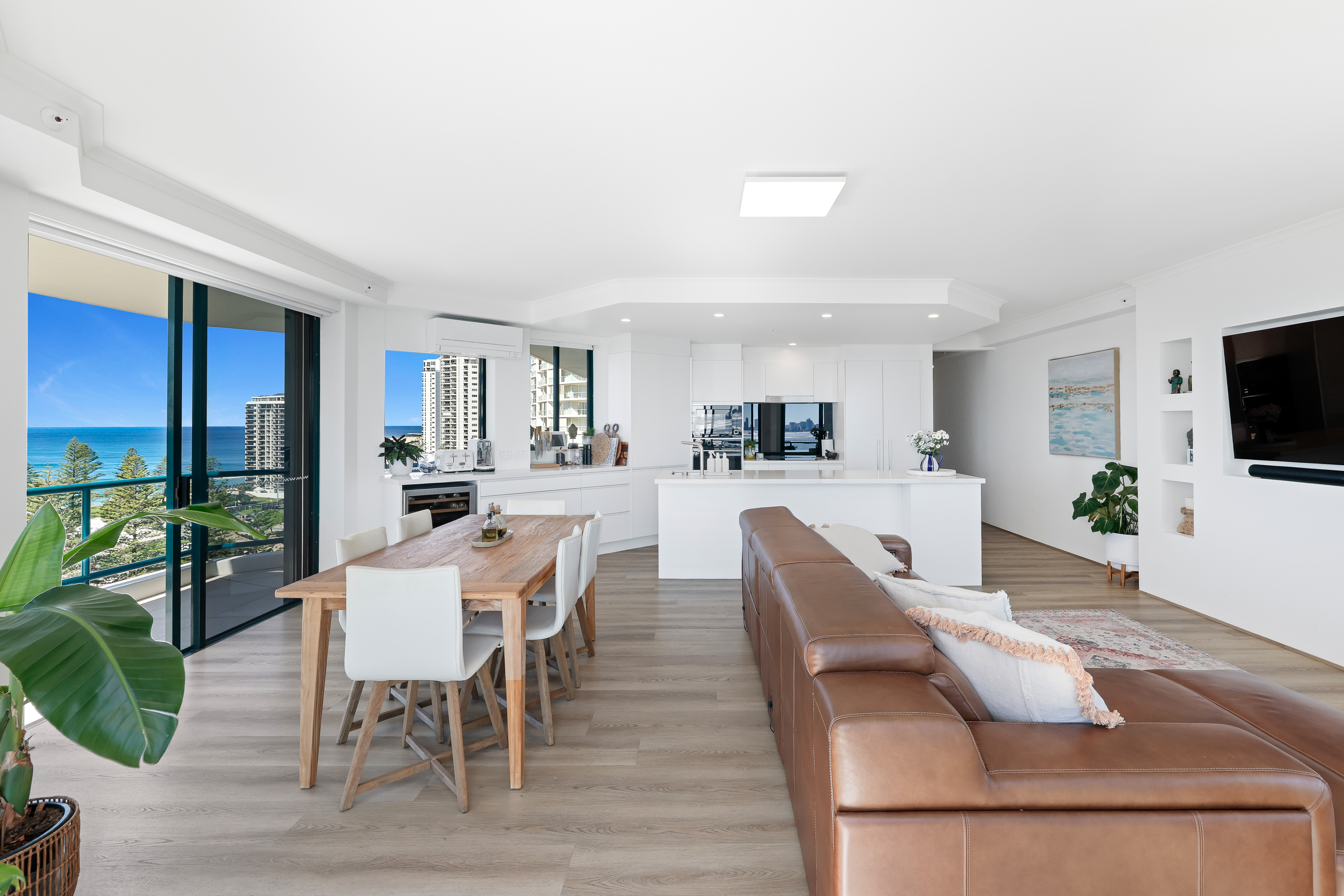 The apartment has been meticulously renovated throughout to a premium standard, featuring the highest-grade hybrid flooring, gourmet kitchen with integrated appliances and bar area, Italian tiled bathrooms with concealed toilets, rain showers, custom cabinetry with integrated power and nighttime bathroom sensors – no expense has been spared.