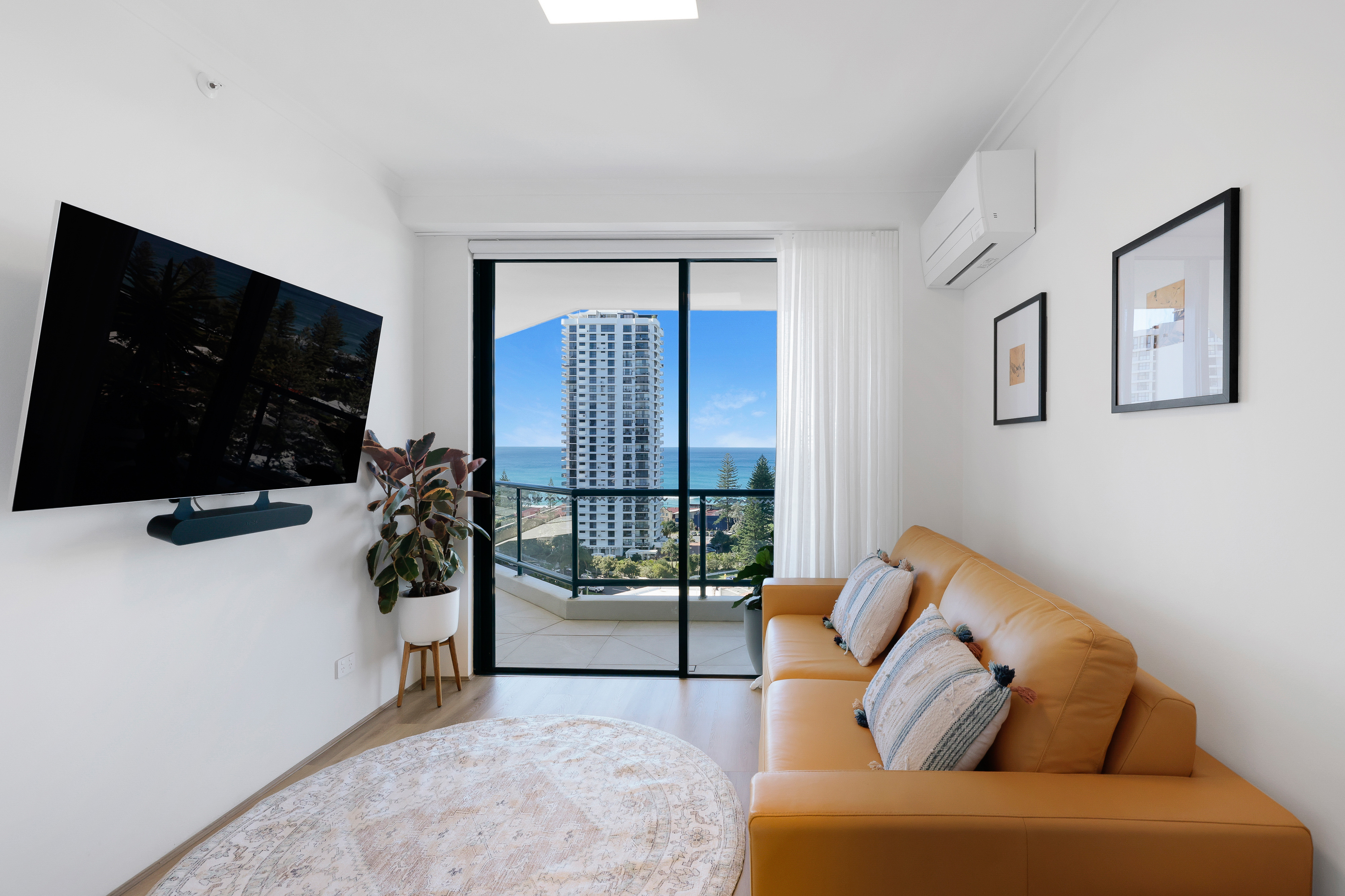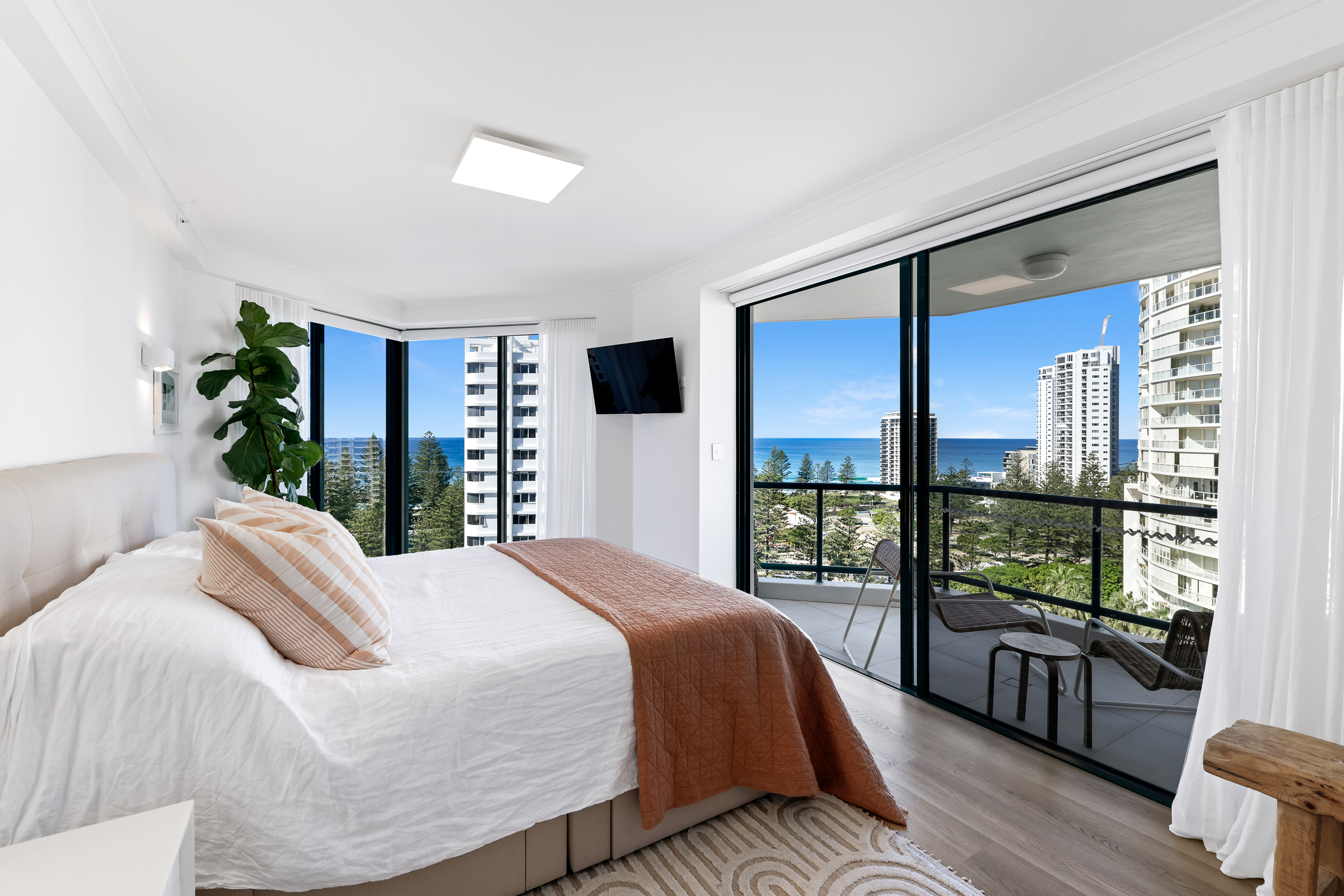 Fully air-conditioned throughout, every fixture in this apartment is new including stylish brushed gunmetal tapware, solid core doors throughout, luxe lighting, sprinklers, and Bluetooth smoke detectors, inside and out. With rechargeable electric block out and shade blinds, and designer sheer curtains in the bedrooms, living in this apartment is easy comfort.