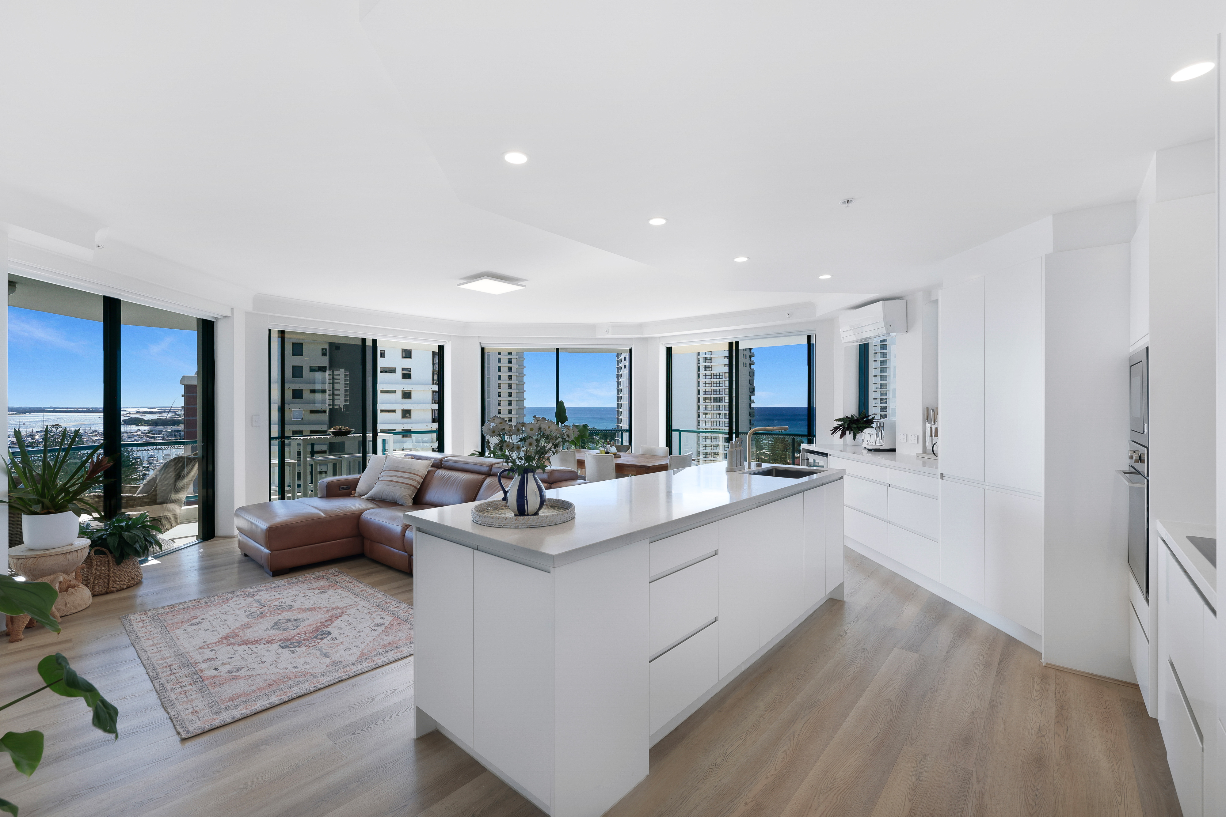 This luxurious and large 186m2 apartment is located on the north-eastern end of the building with sweeping 270-degree views of the ocean and Broadwater from every single room. With freshly tiled wrap-around balconies these views can be enjoyed with various outdoor living options, no matter where the sun is shining or the direction of breezes.