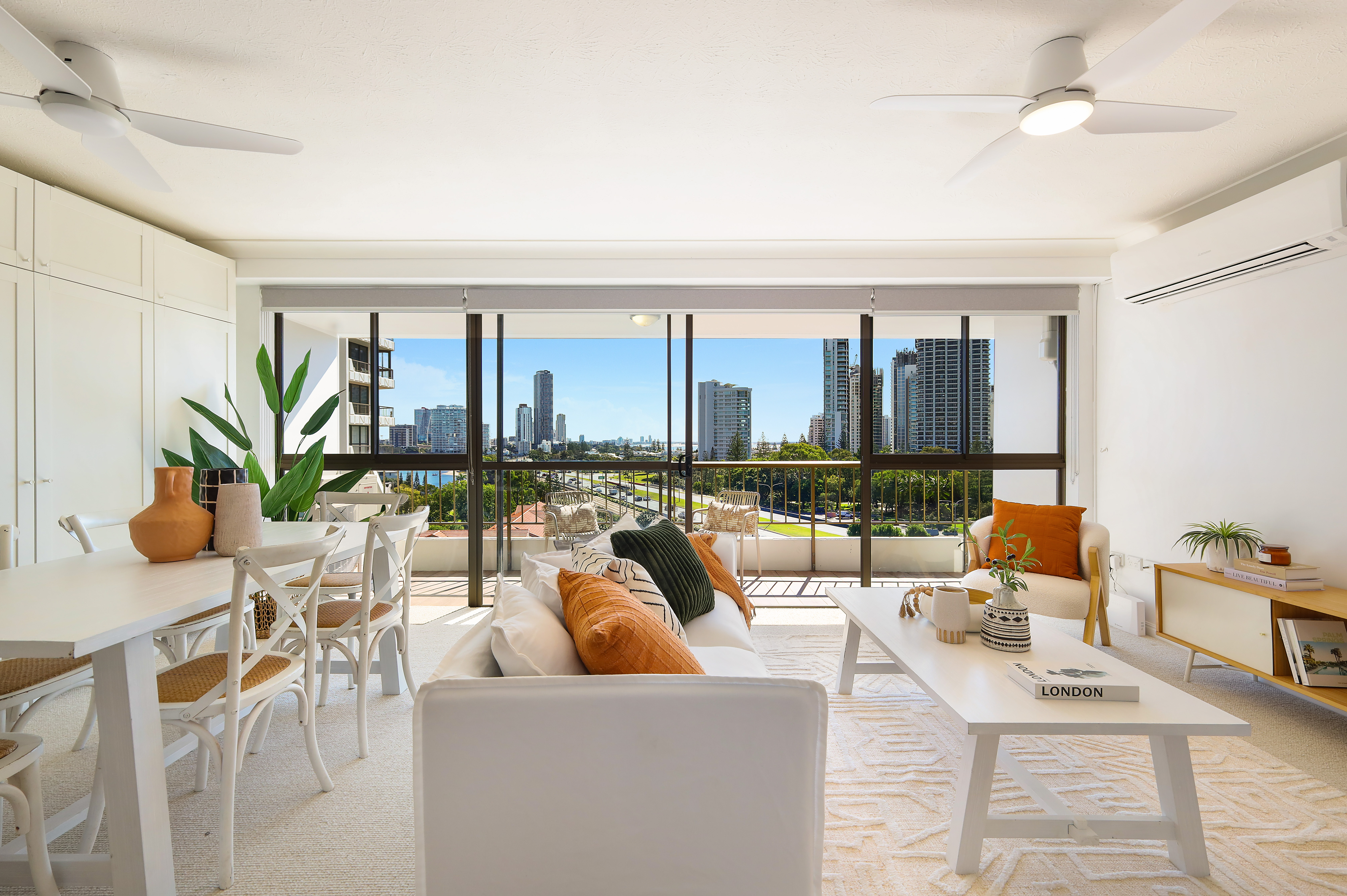 Situated on the 8th level this oversized one bedroom unit features stunning northern views of the ocean, broadwater, river, hinterland and Main Beach skyline that cannot be built out. Completely renovated this beautiful apartment is now vacant and ready for a new owner to move straight in.