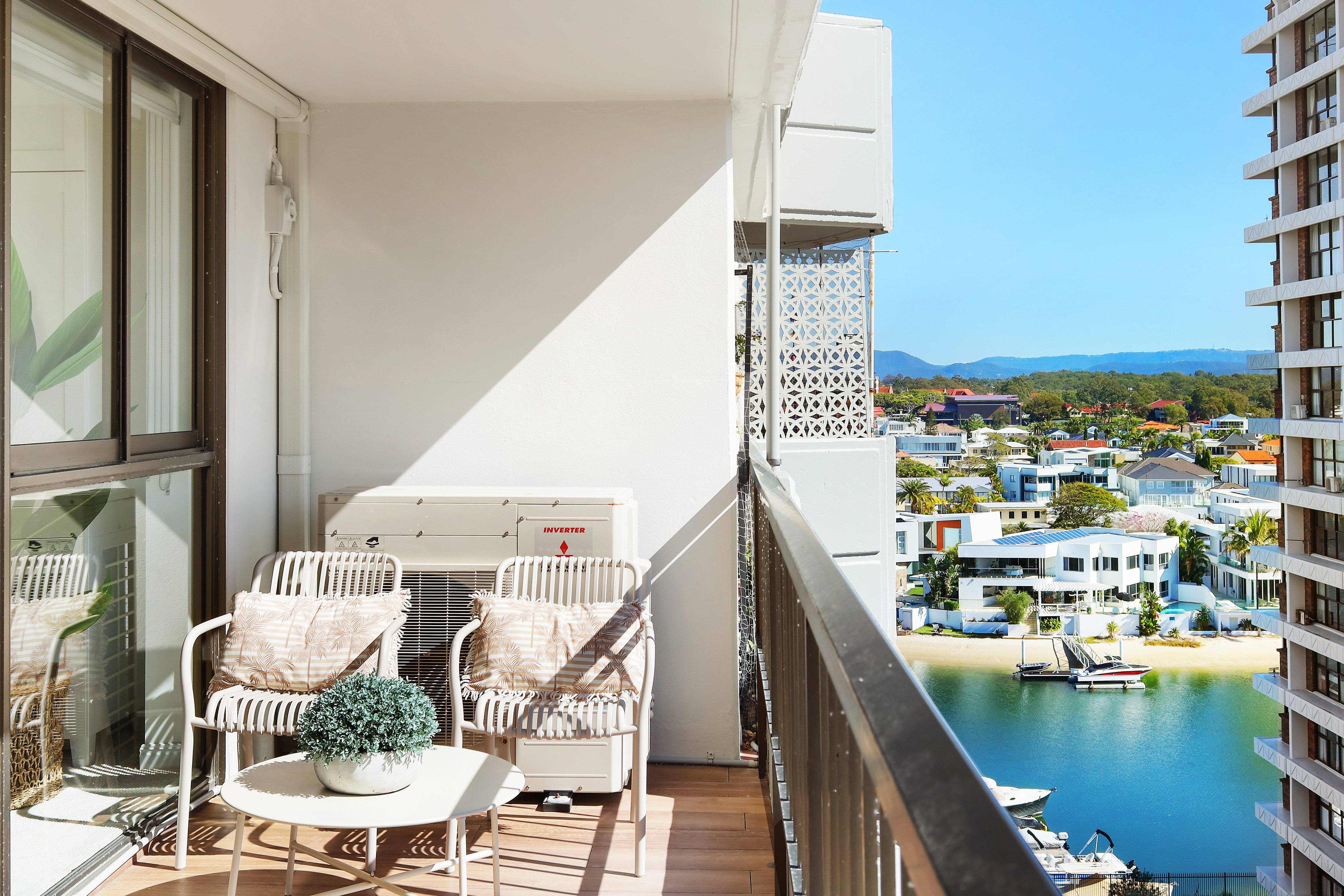 Perfectly located only a few hundred metres to the light rail station, patrolled surf beach, Tedder avenue cafes and multiple parks, Kings Row South is a high-quality residential building (no holiday rentals) situated on a large waterfront site in the Gold Coasts most exclusive waterfront suburb. The buildings great facilities include a beautiful pool, full size tennis court, sauna, spa, and BBQ area all over looking the water plus a marina and a boat ramp. With great onsite management the building and grounds are impeccably maintained The building has undergone substantial recent upgrades including new elevators, building has been painted and new intercoms.