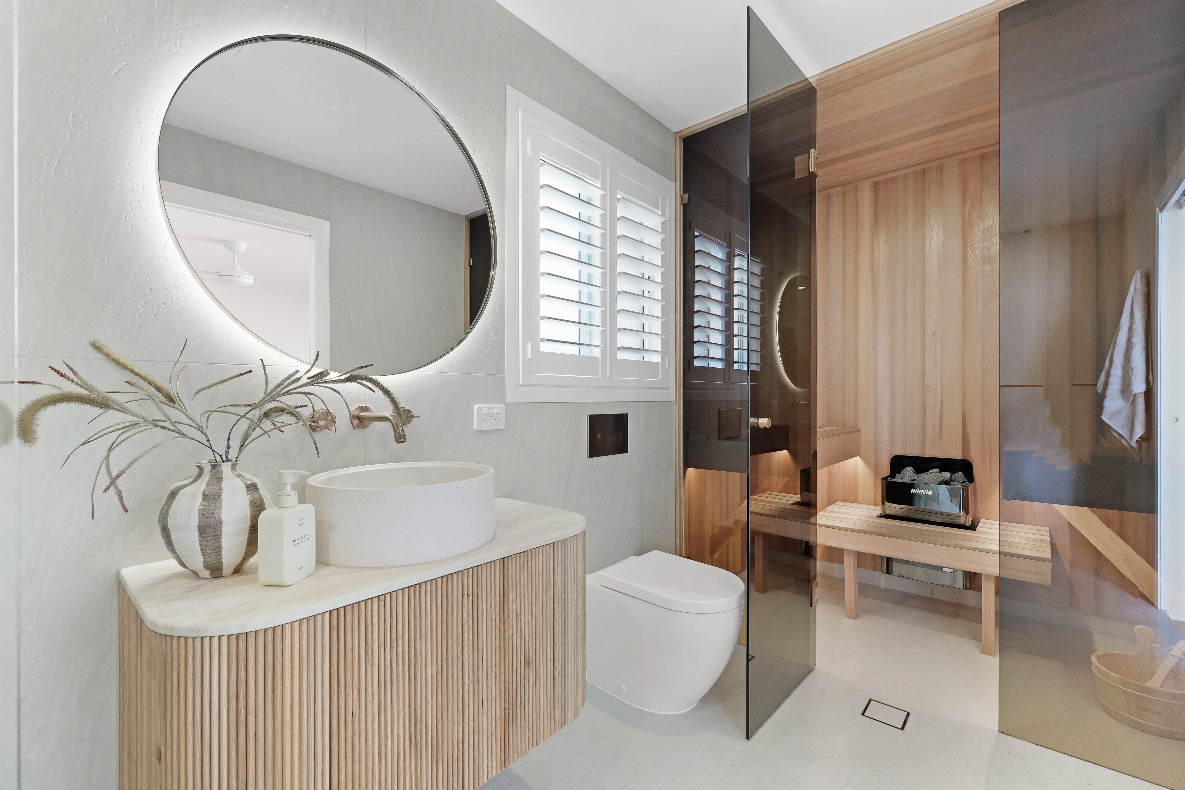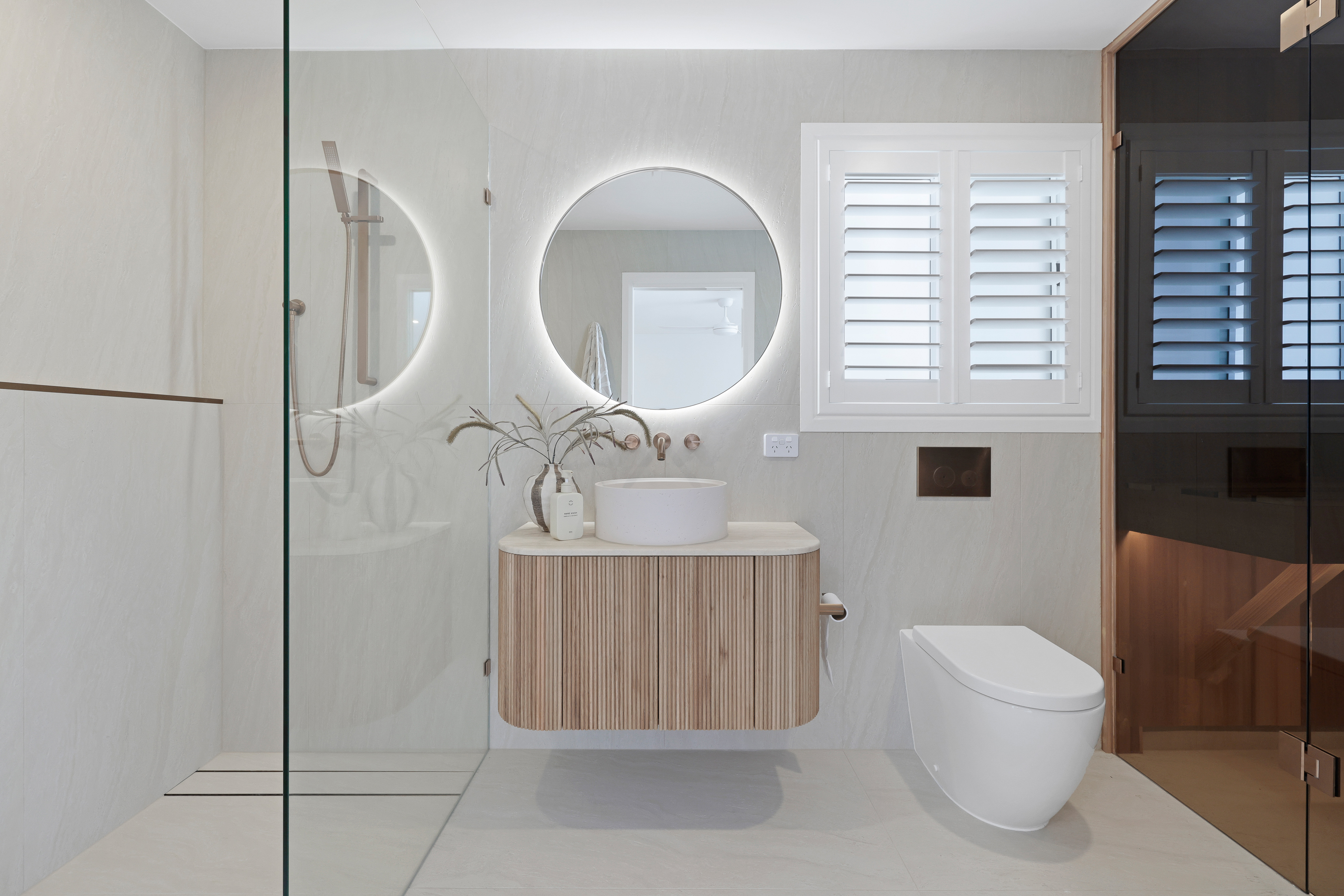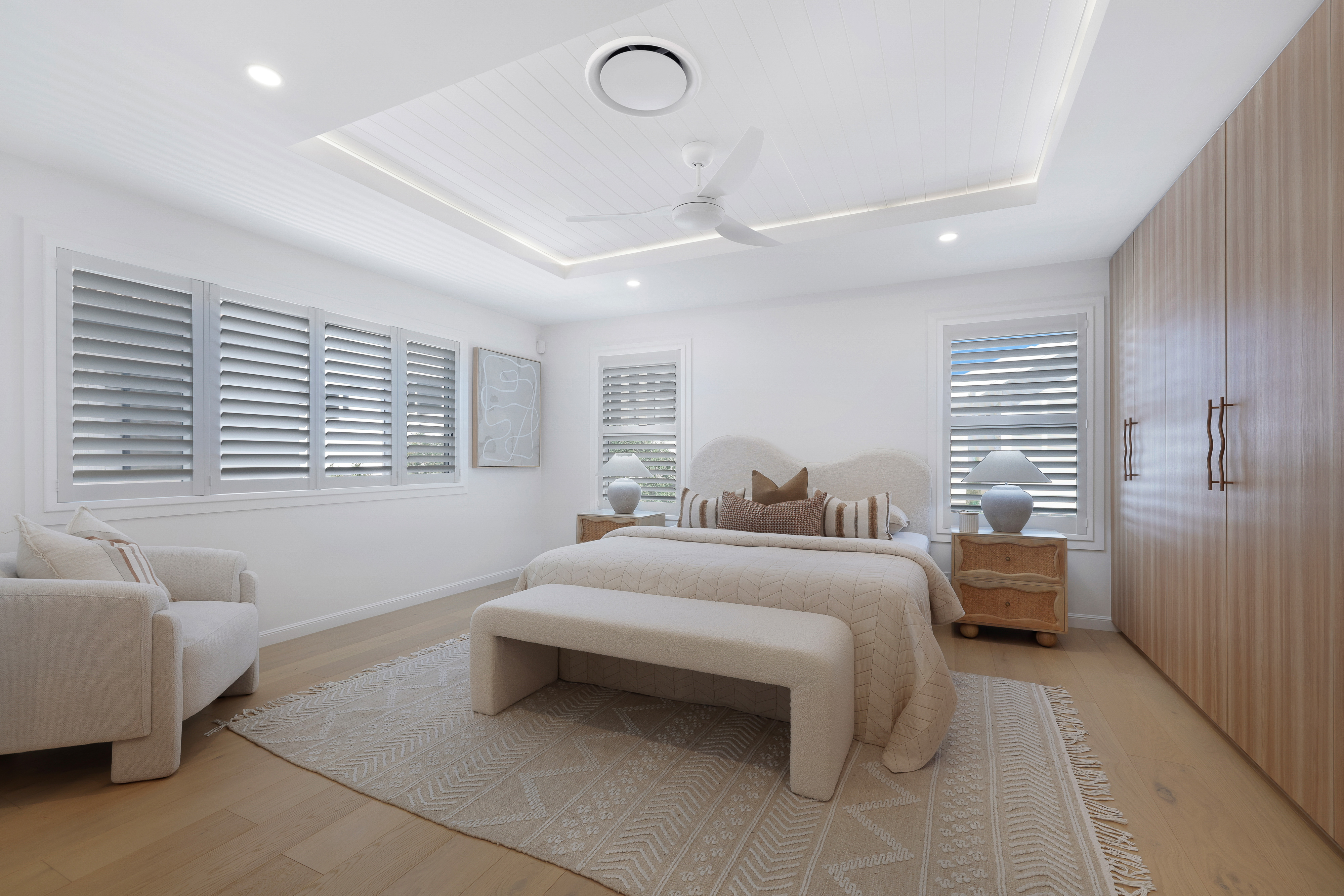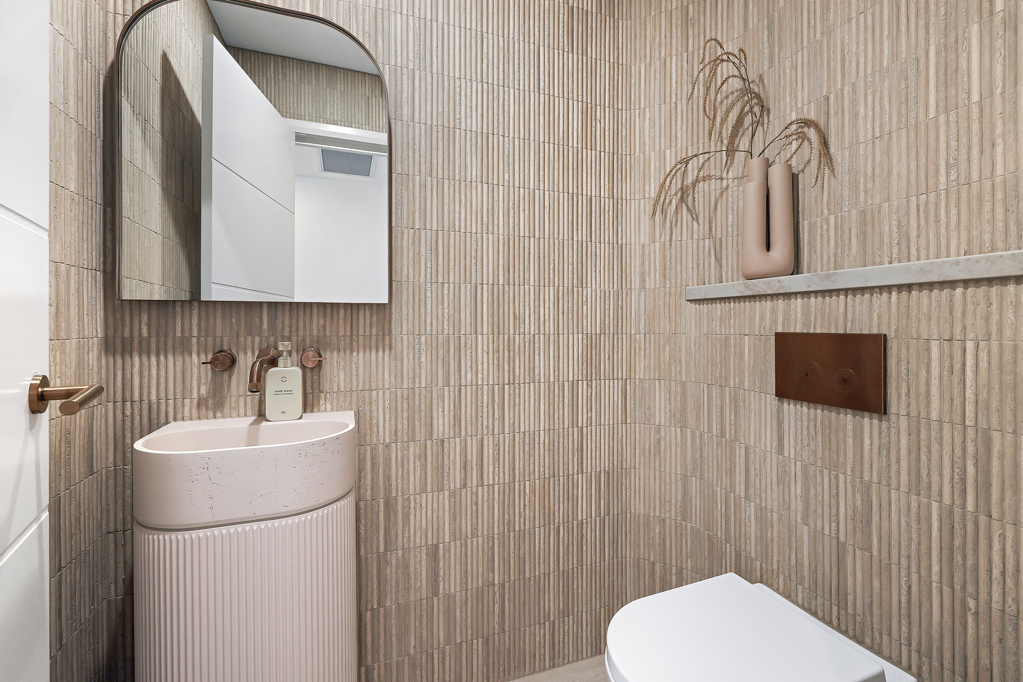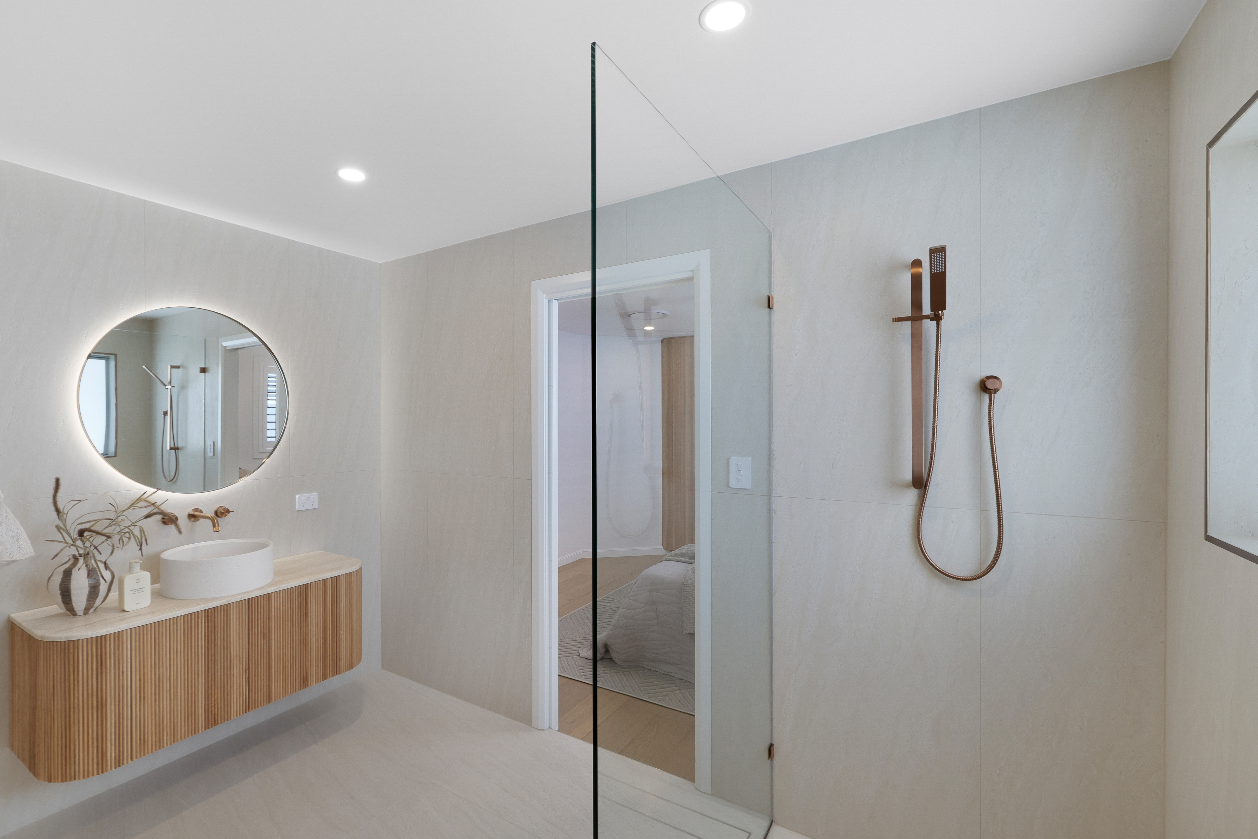- Show-Stopping Master Suite – Occupying half the upper level, with a custom walk-in robe, freestanding bath, dual rain showers, and brushed copper tapware.
