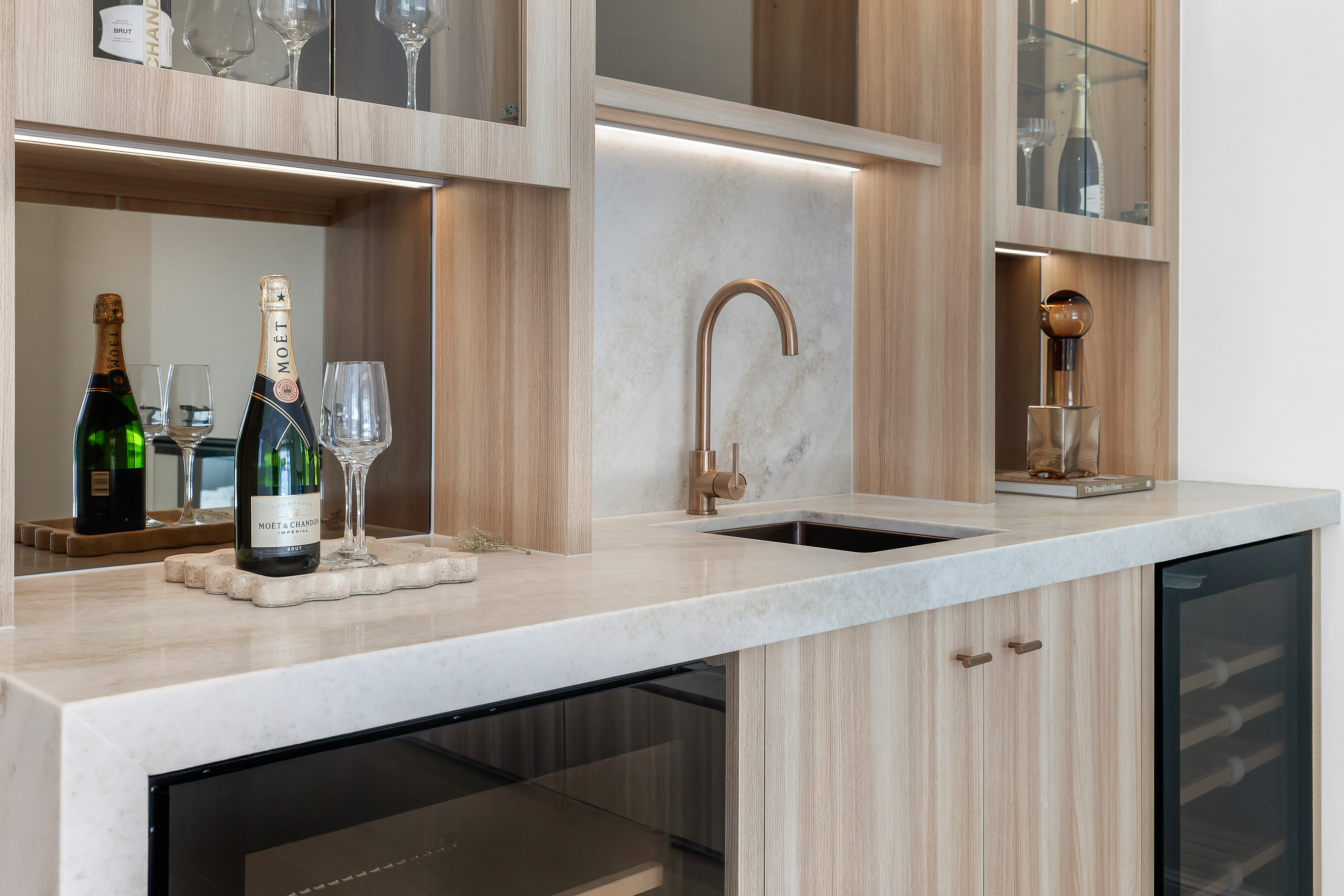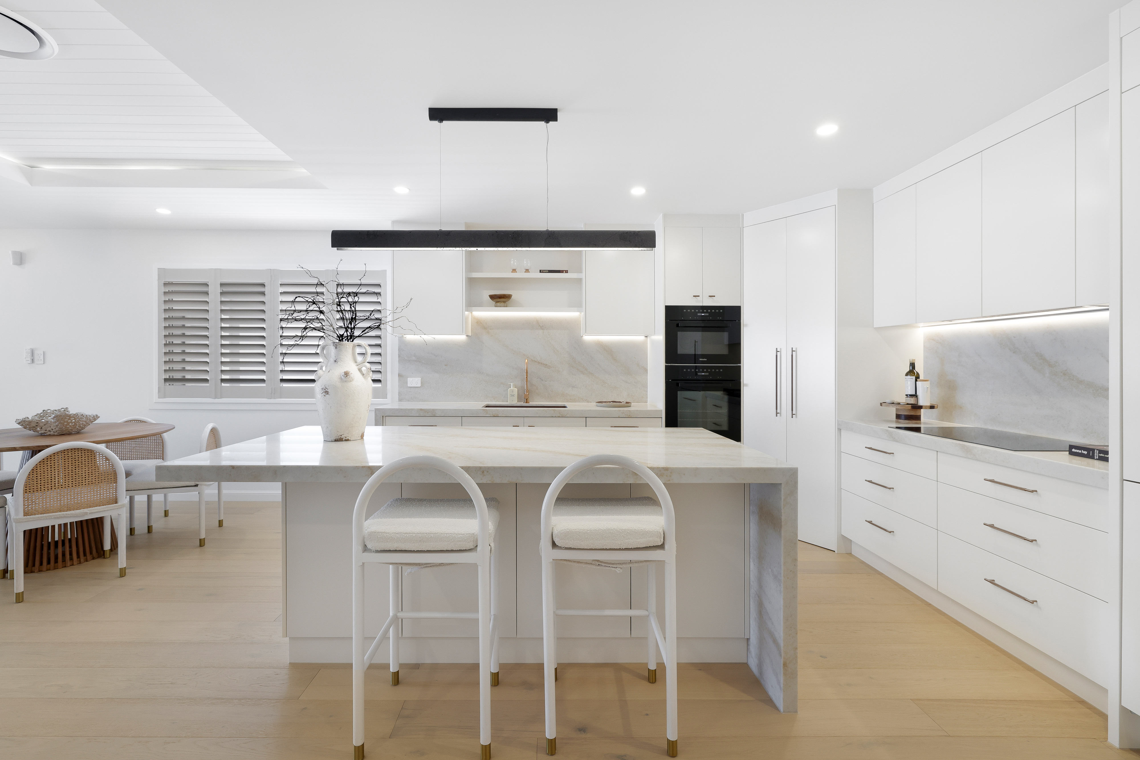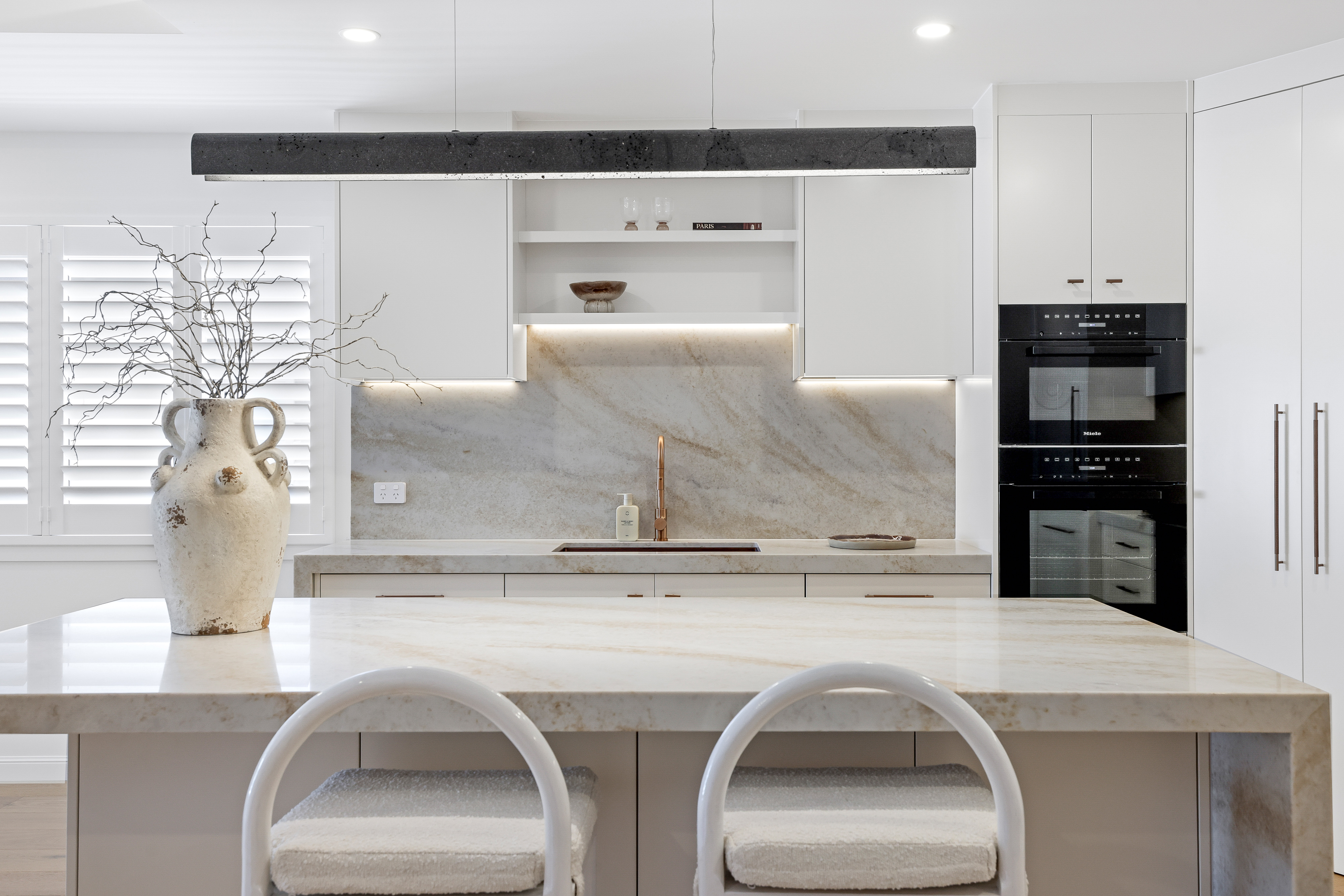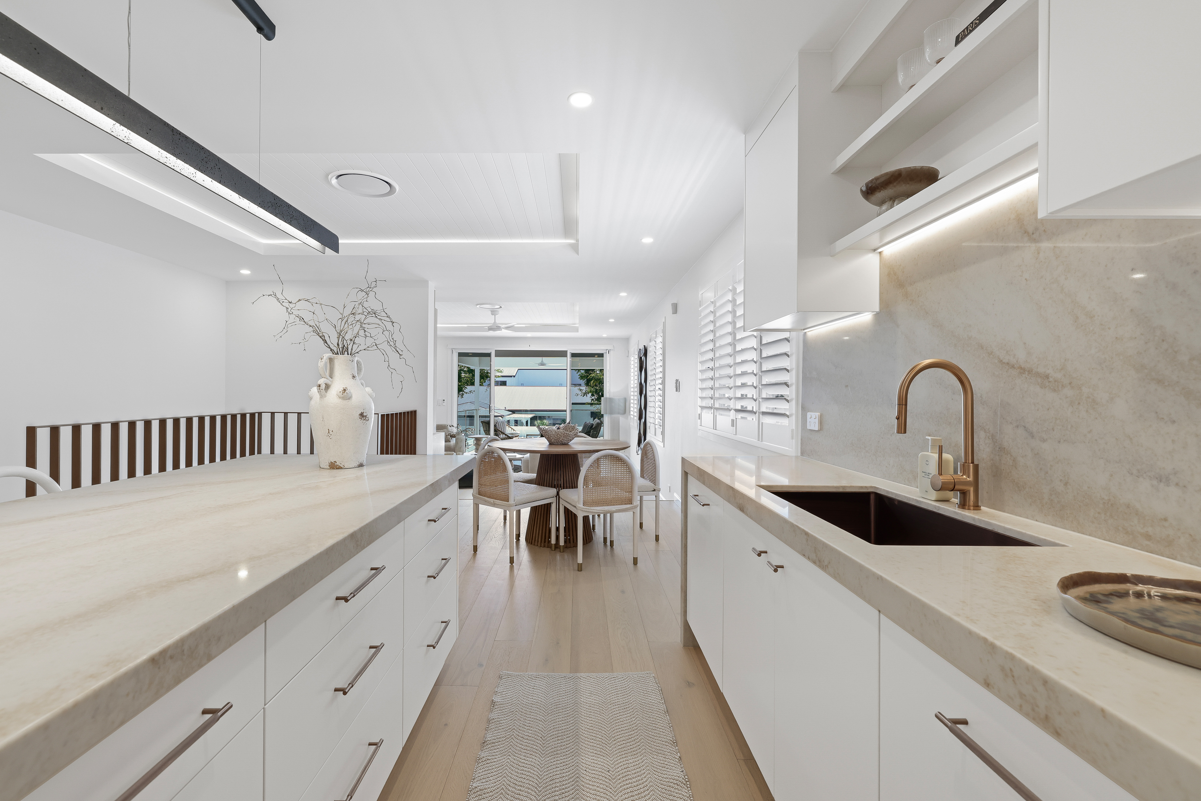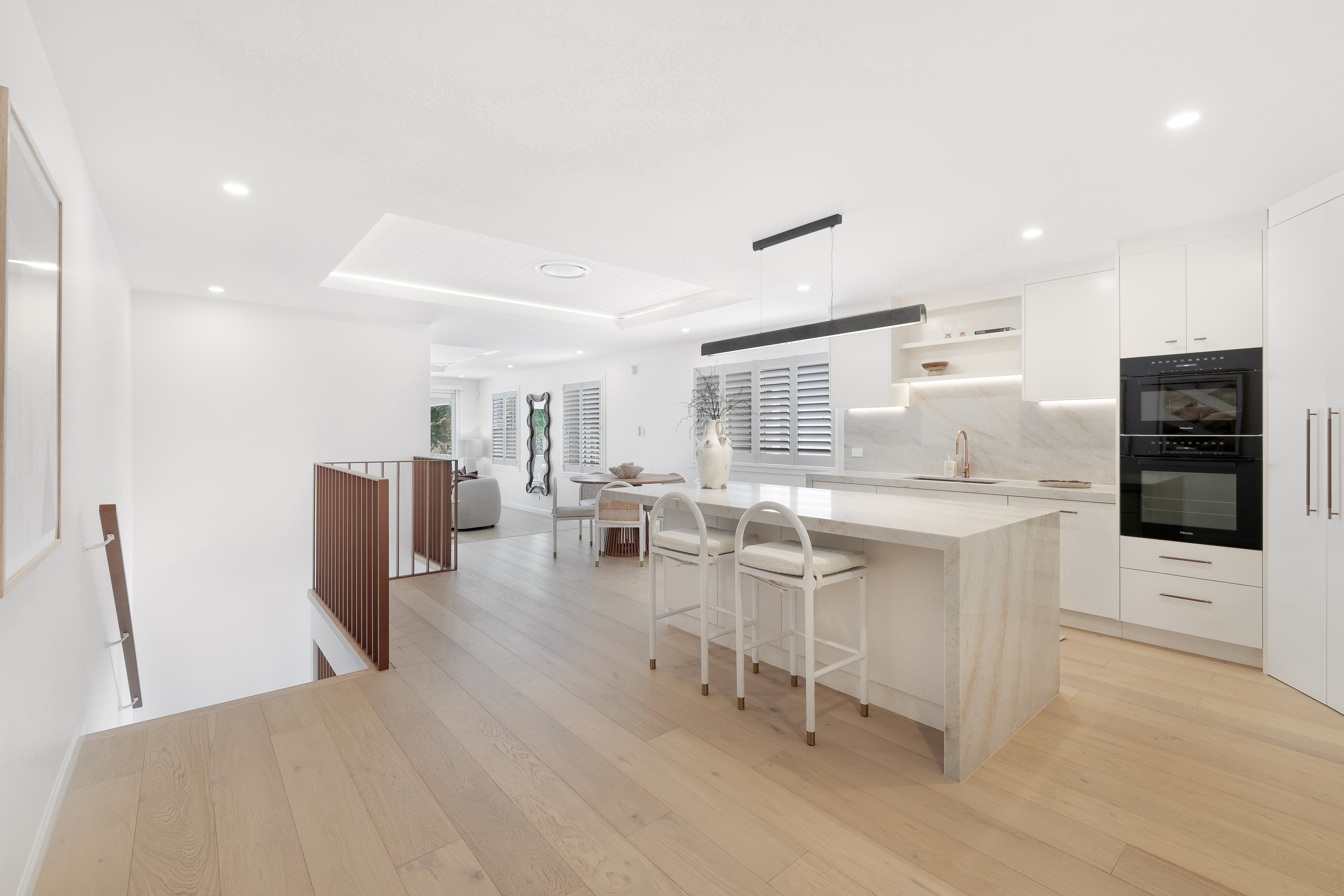 - Designer Kitchen – Sleek stone benchtops, timber-grain cabinetry, integrated fridge/freezer & dishwasher, designer tapware.