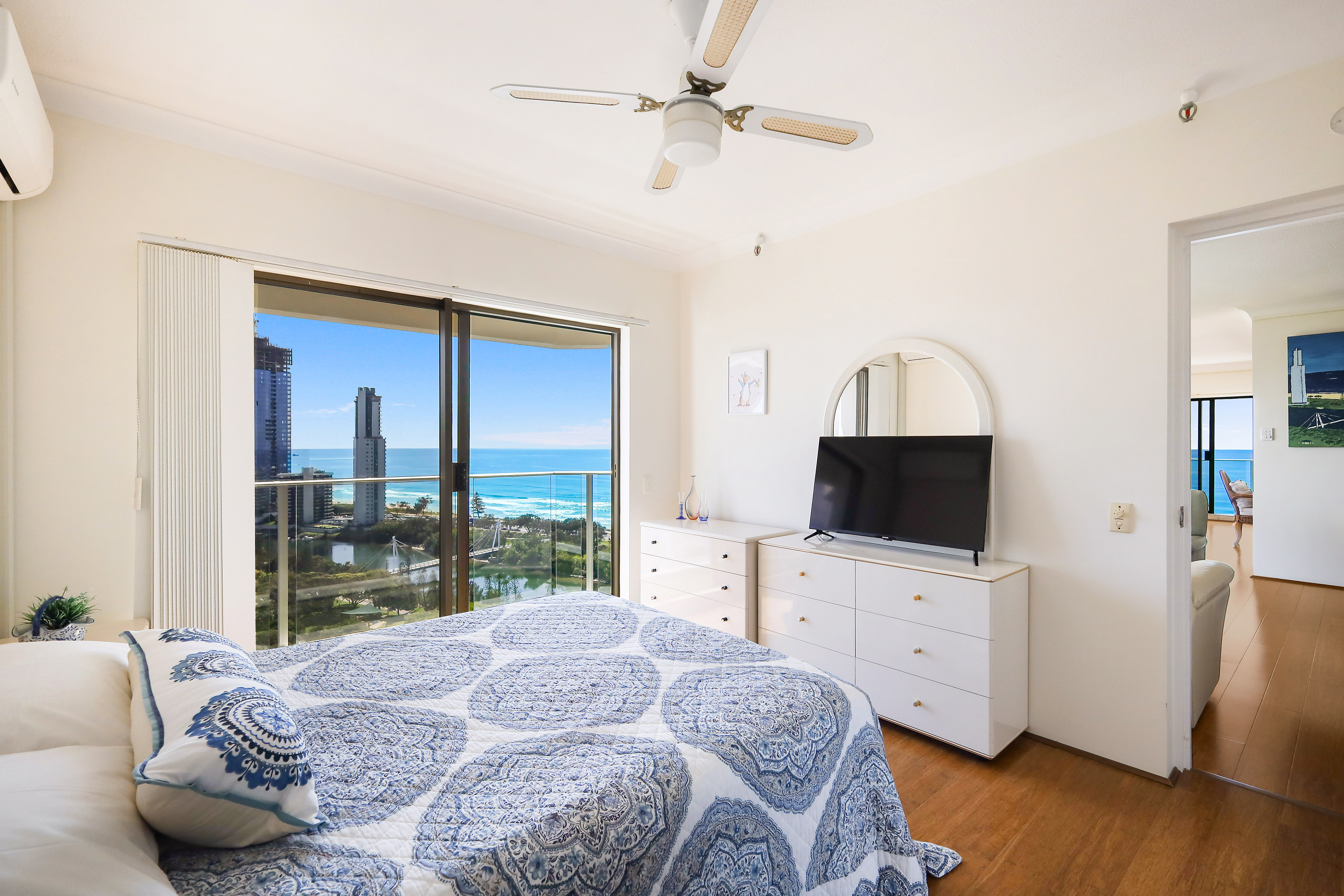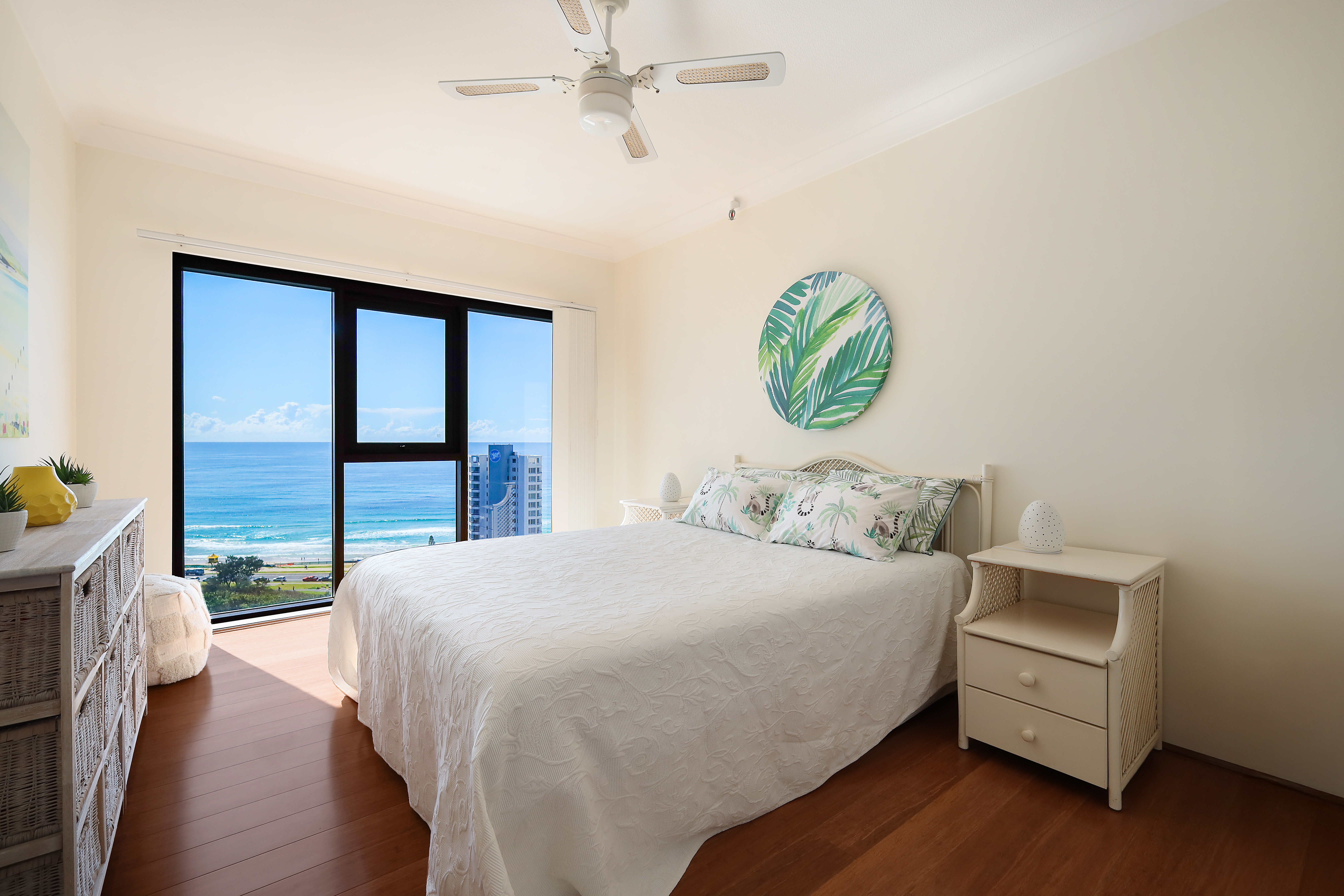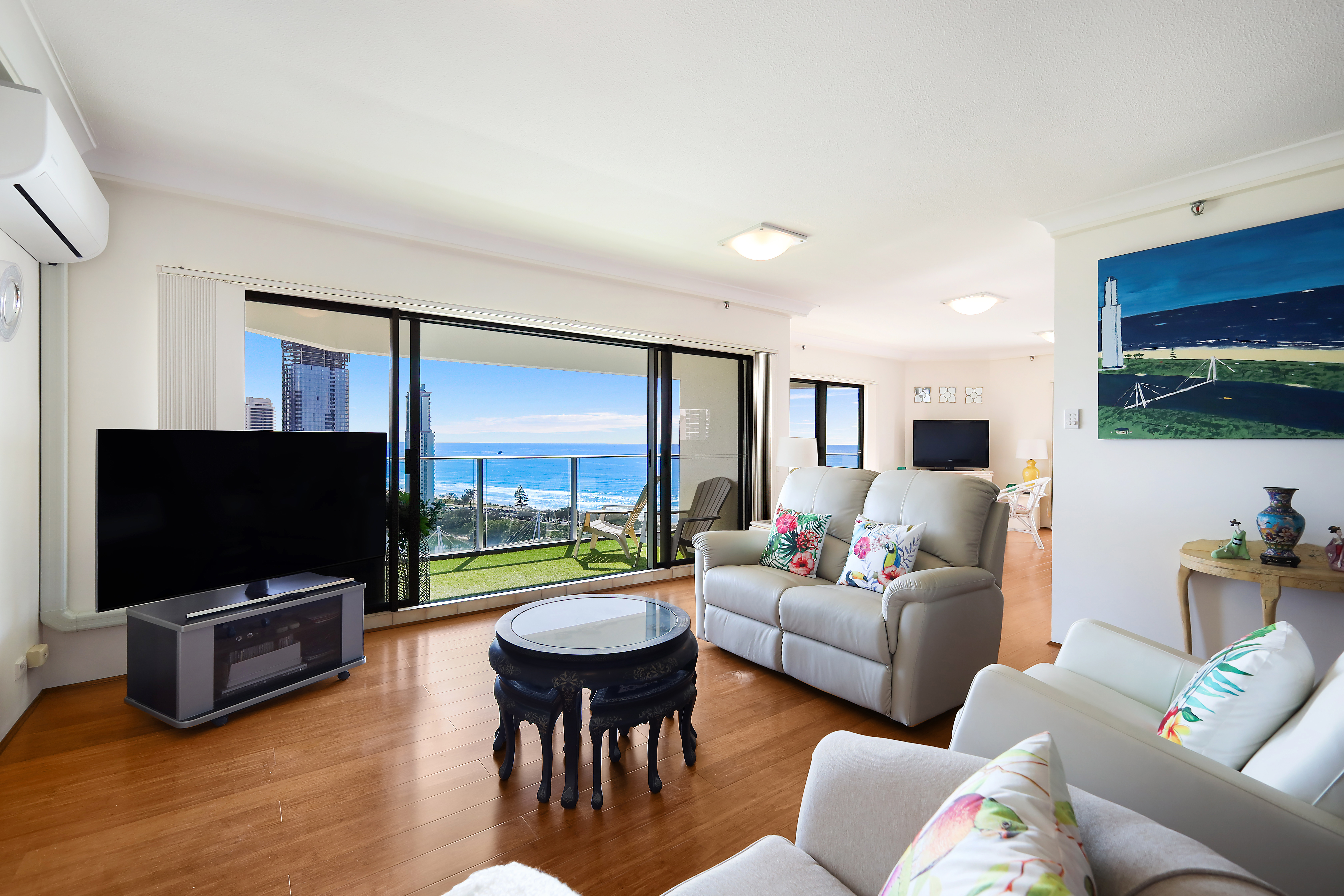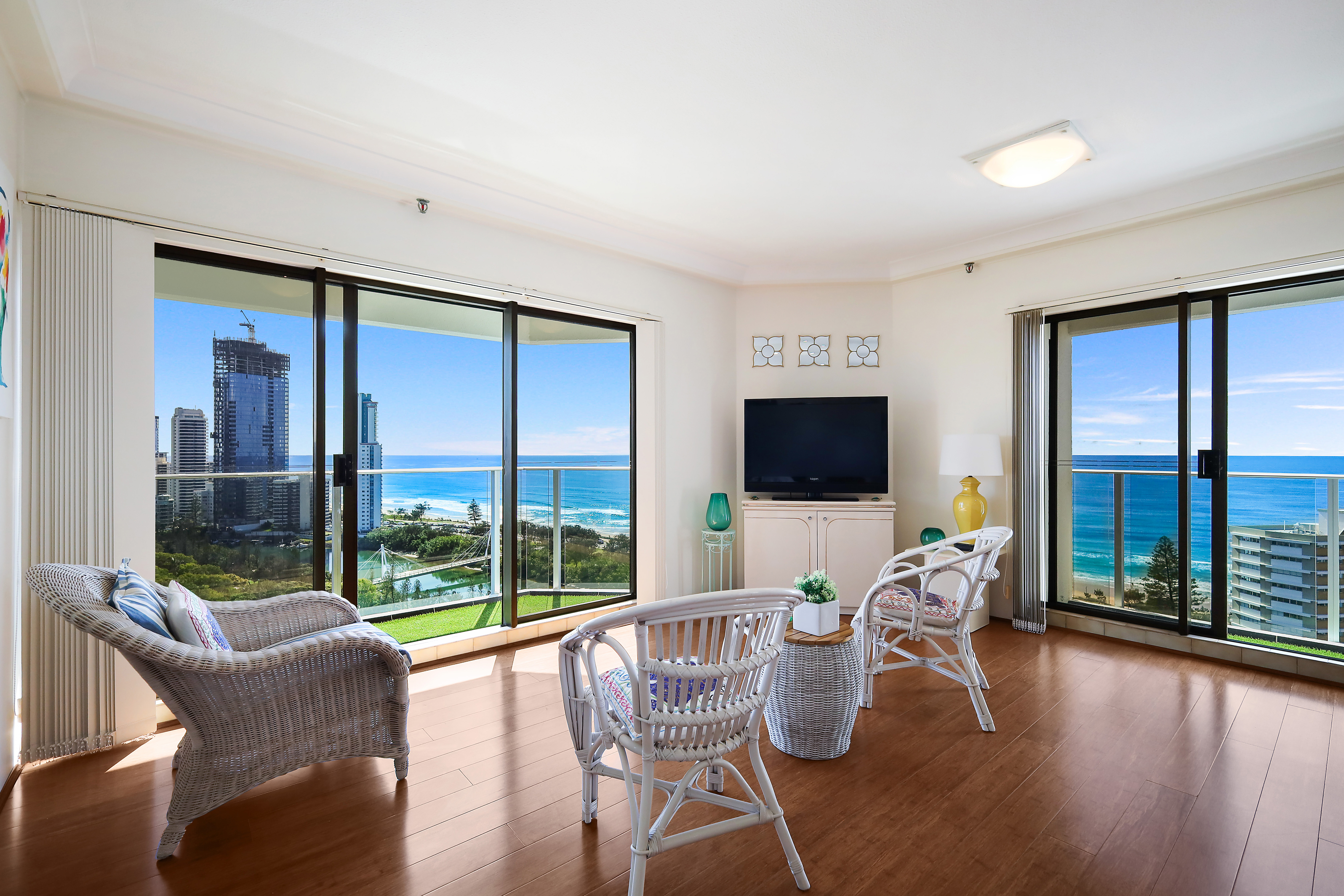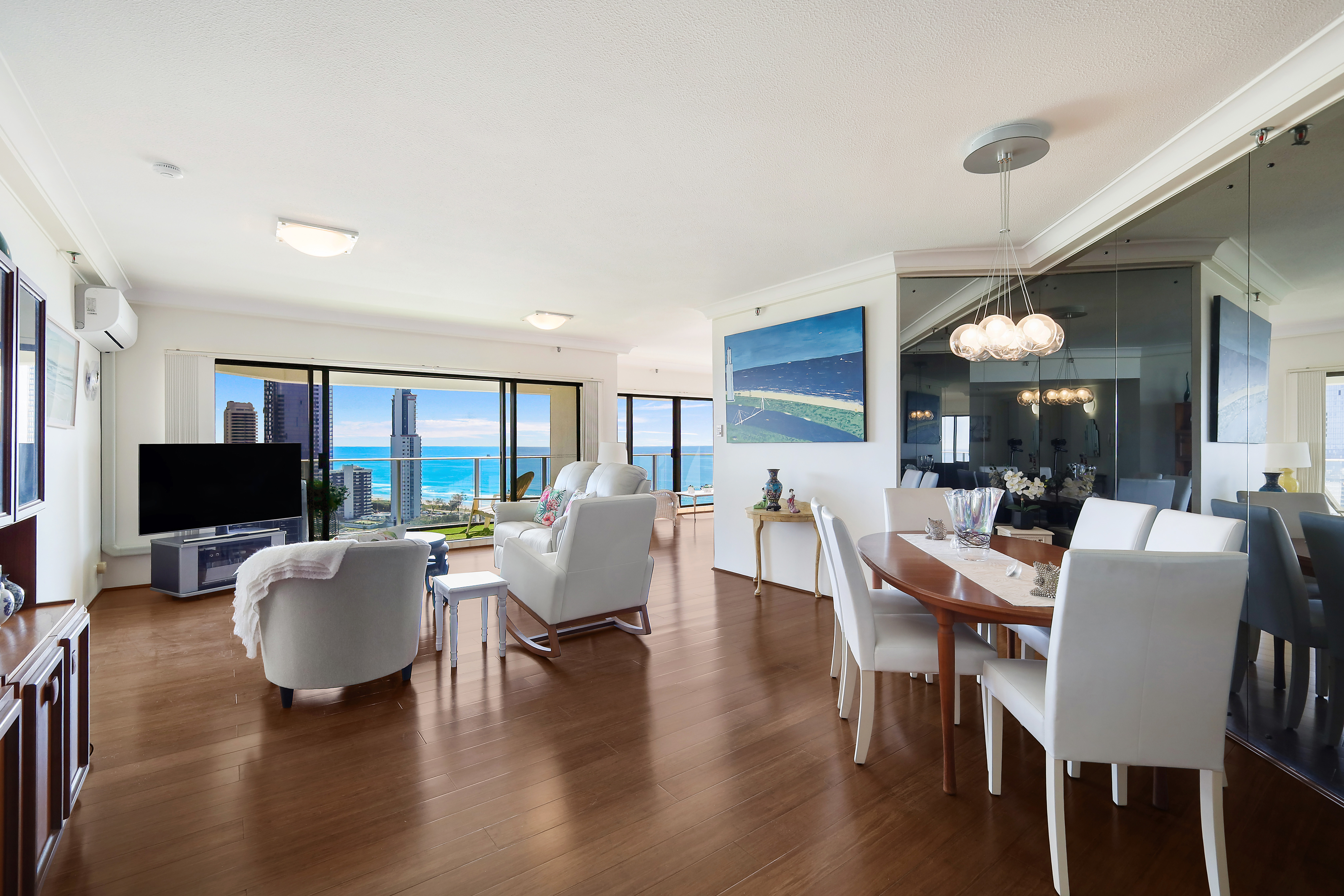 Perfectly positioned on a high floor with desirable north east aspect and fabulous beach, river, broadwater, hinterland and Main Beach skyline views that are spectacular both day and night. These rarely ever available north/east corner units are highly sought after and always sell quickly.